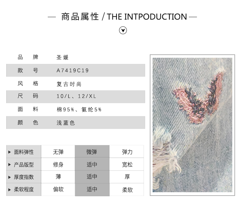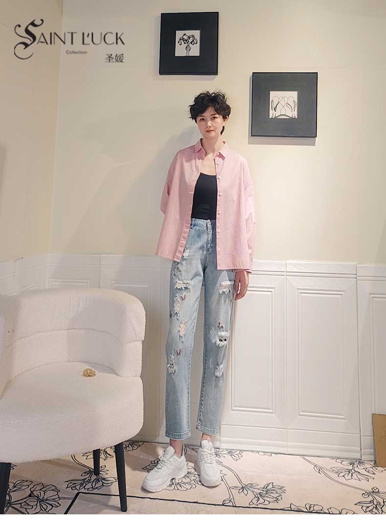SAINT L’UCK/圣媛女装刺绣牛仔裤A7419C19