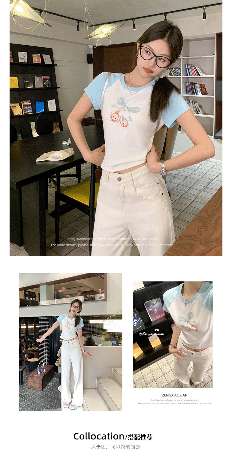 <曾小咸推荐> 韩系印花白色圆领短袖t恤【预售7-15天发货】