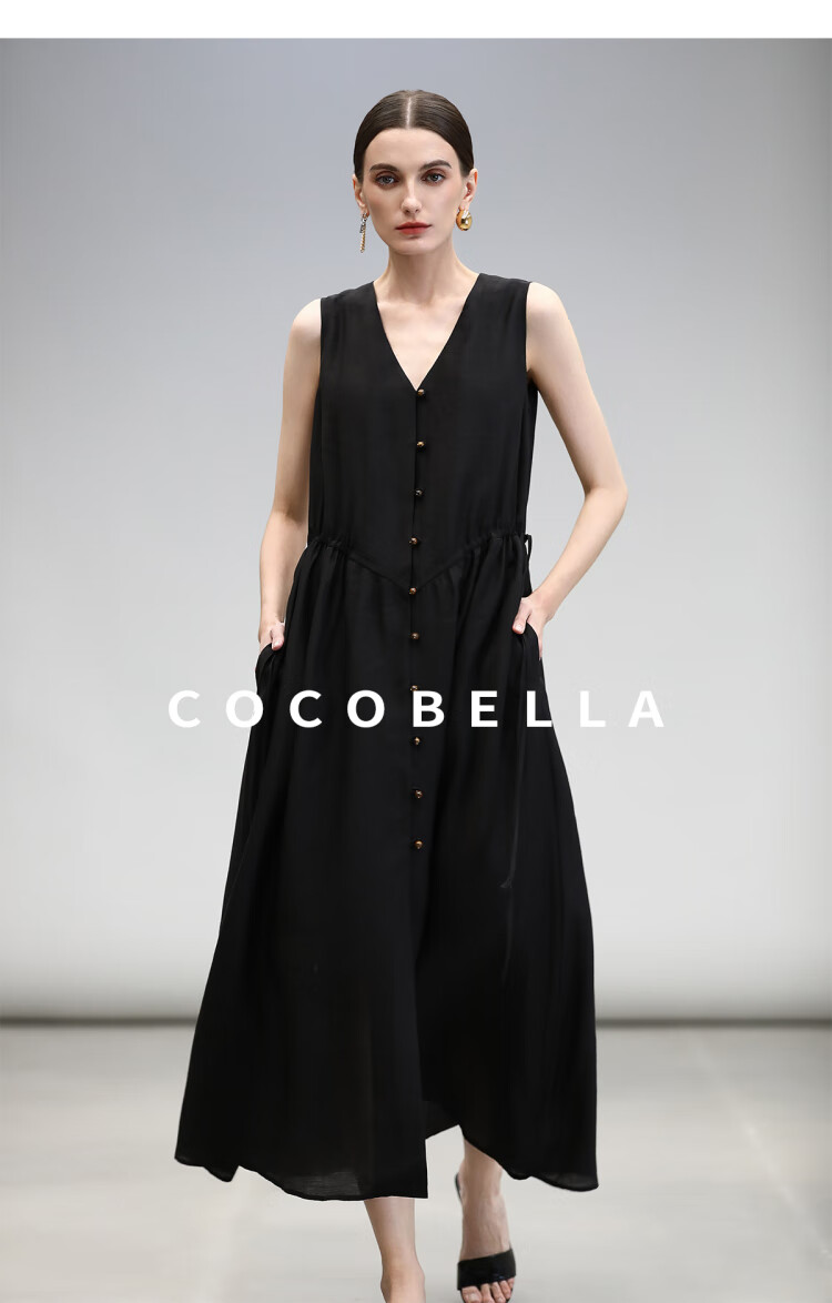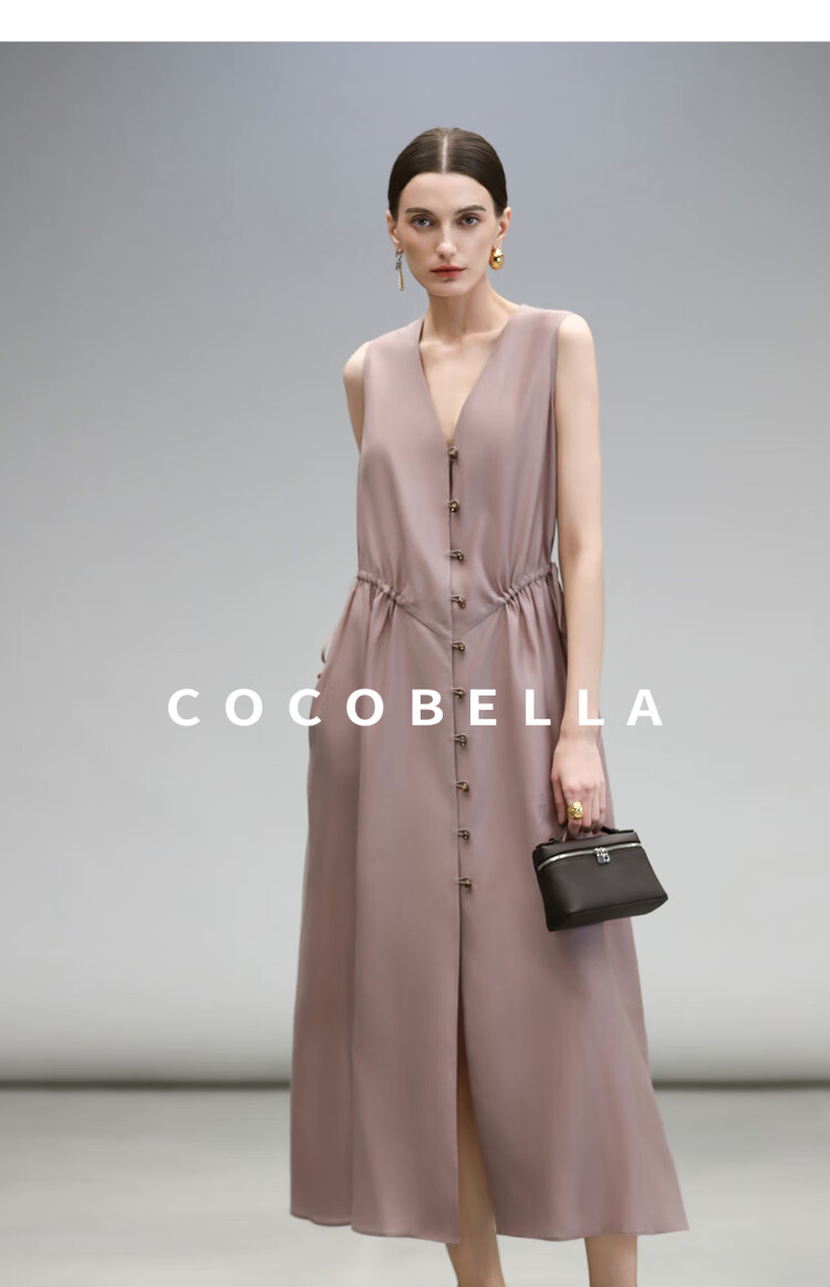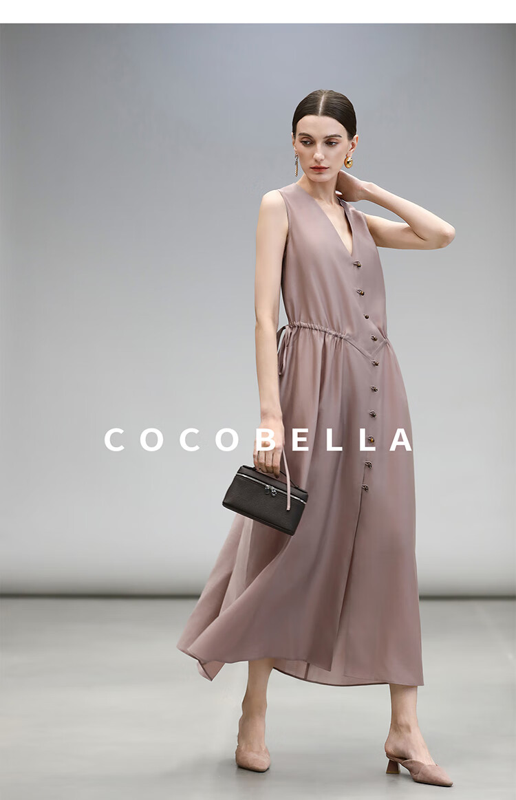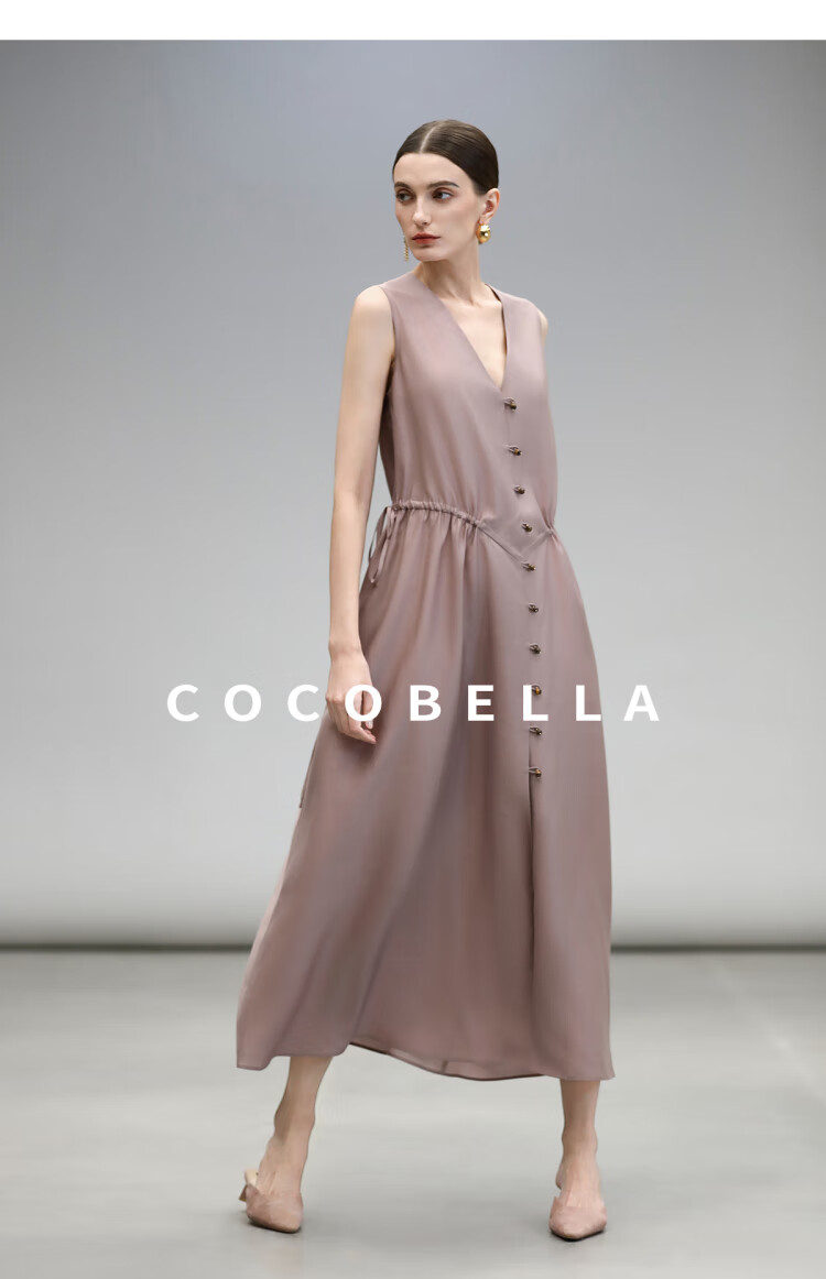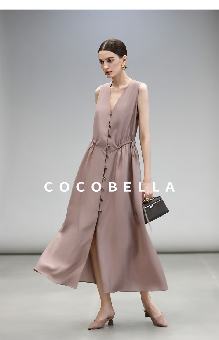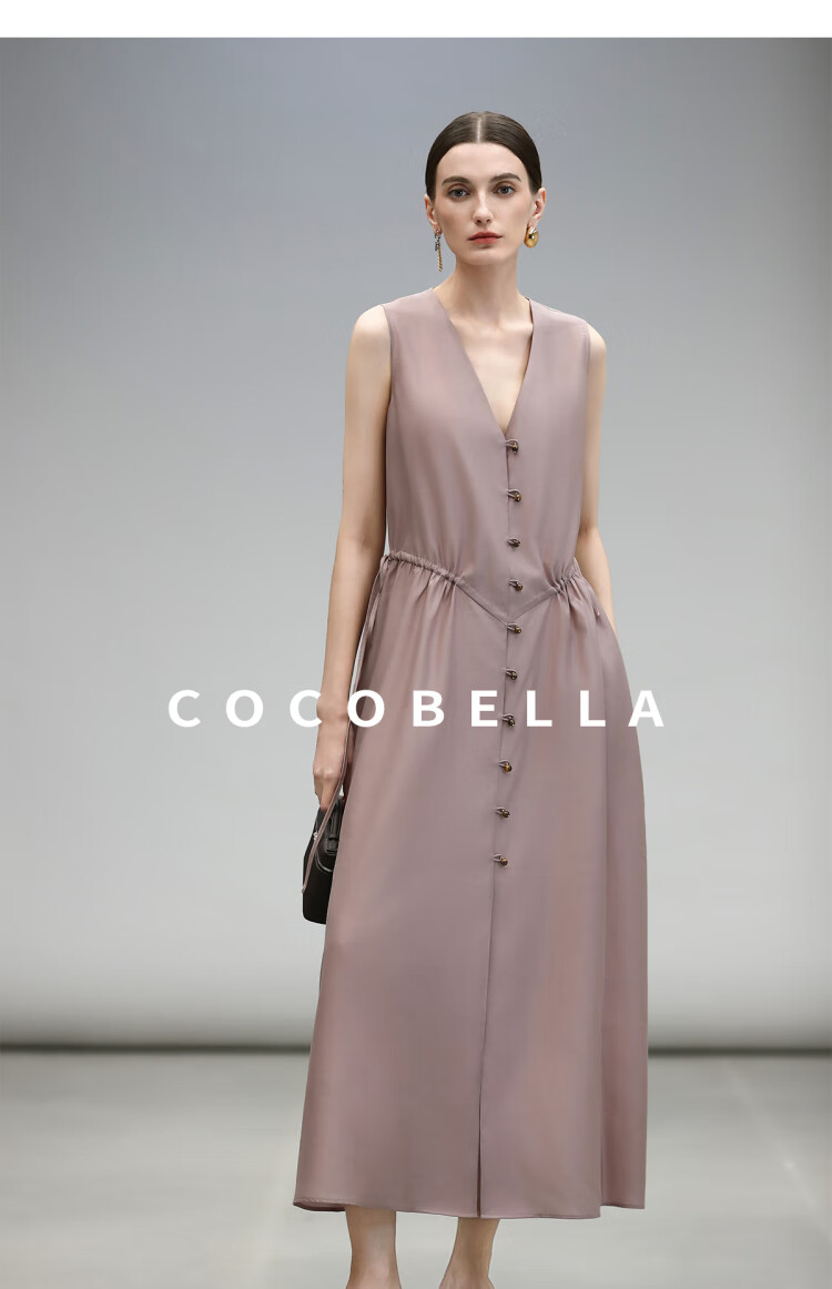 COCOBELLA玫瑰粉莱赛尔V领无袖连衣裙盛夏通勤背心裙FR7008-4