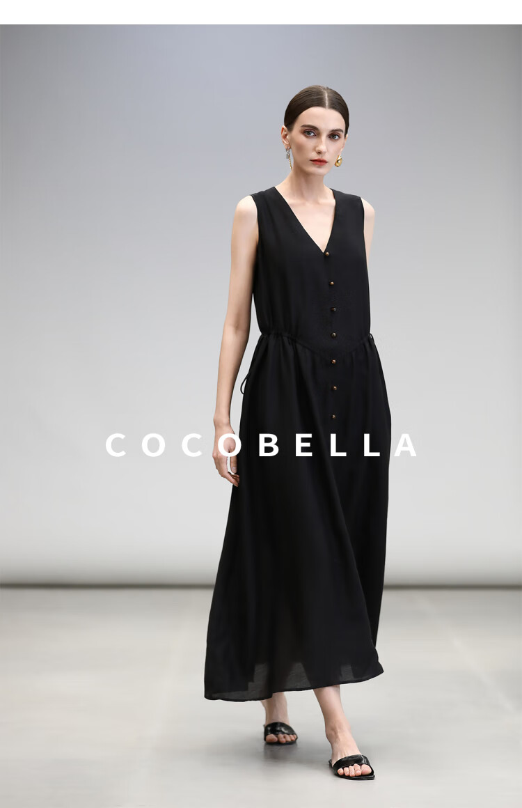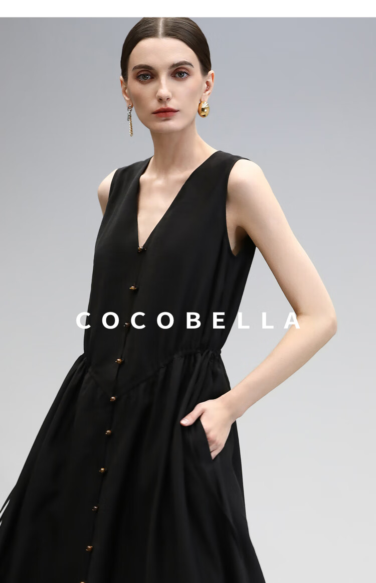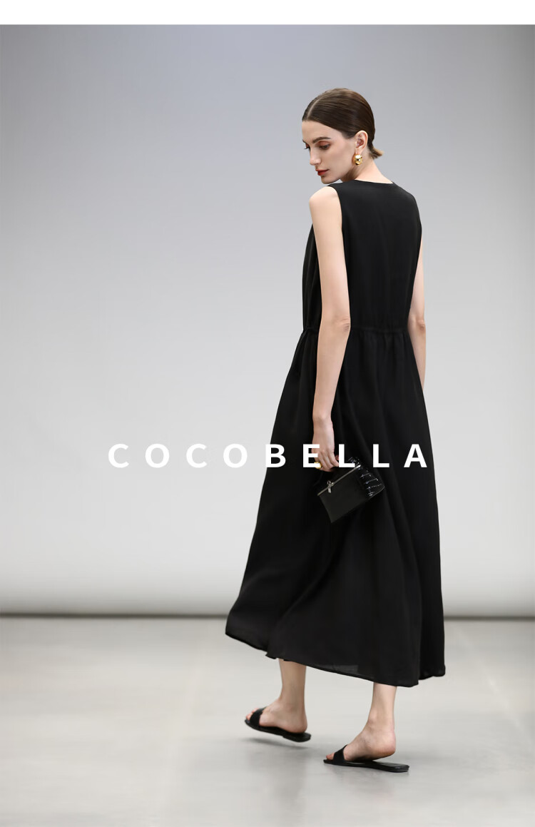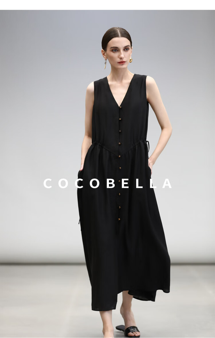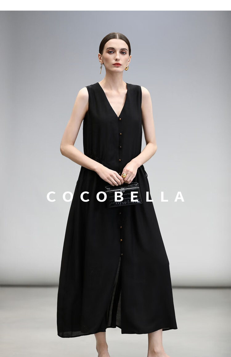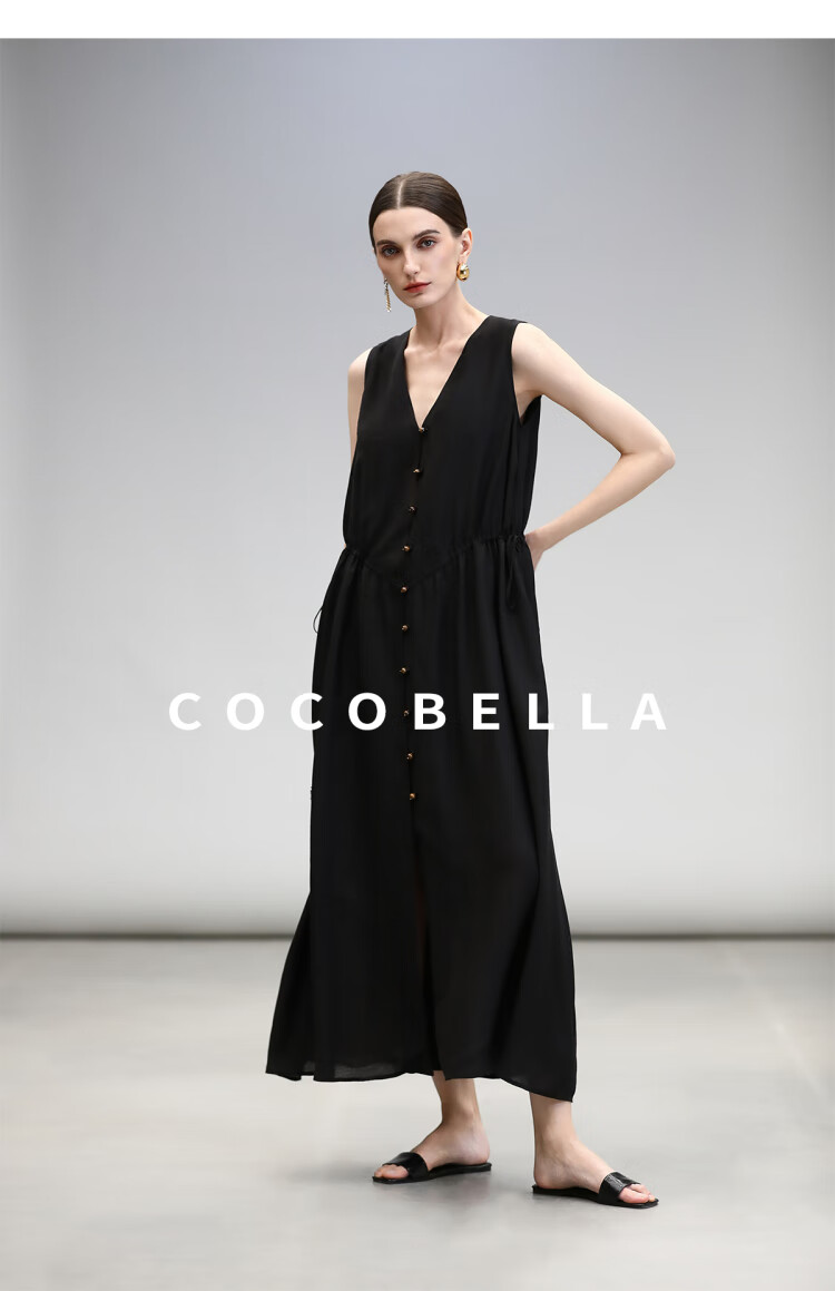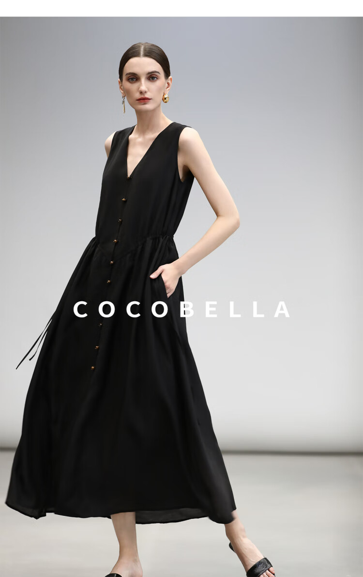 COCOBELLA玫瑰粉莱赛尔V领无袖连衣裙盛夏通勤背心裙FR7008-4