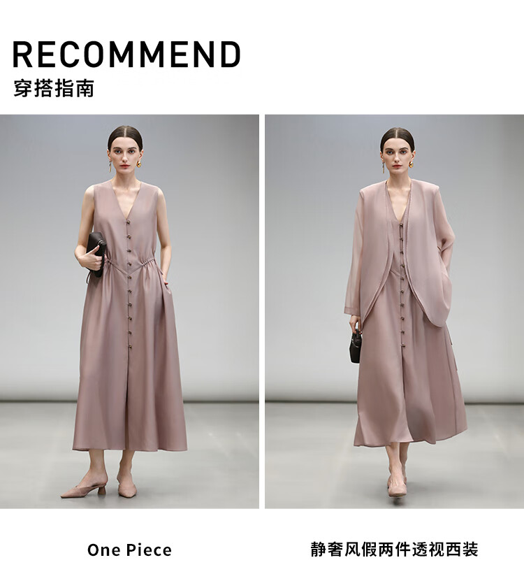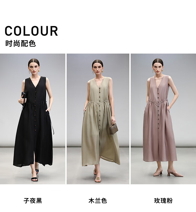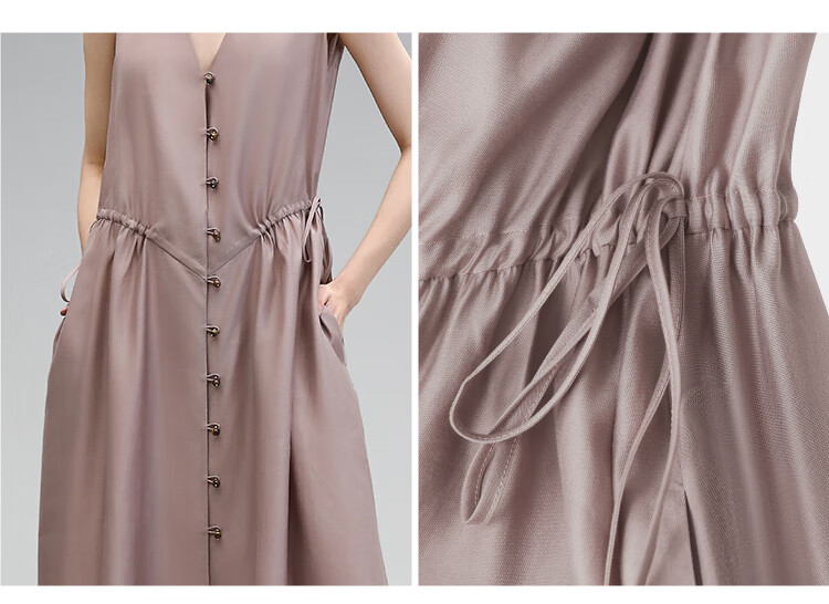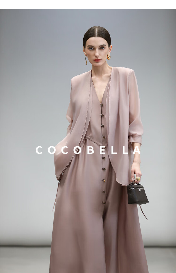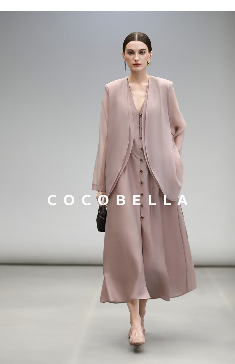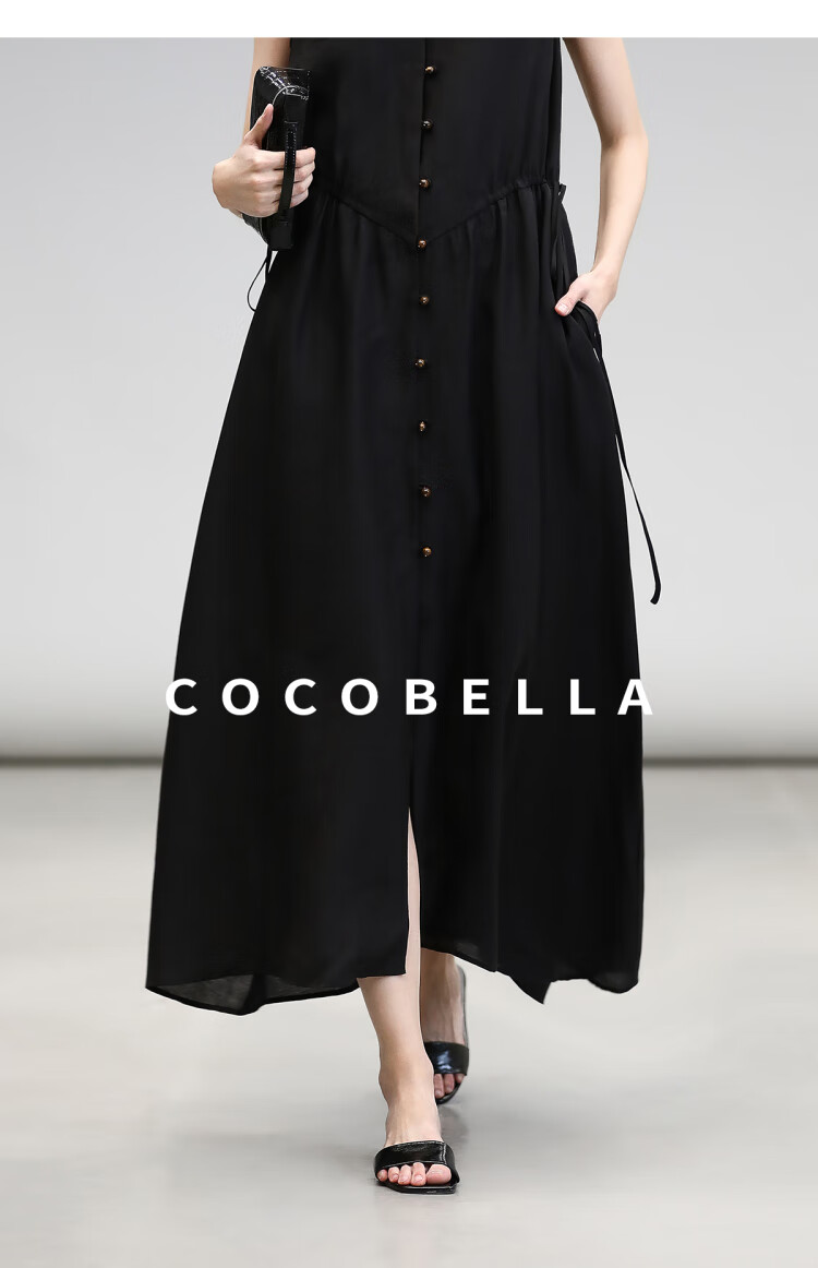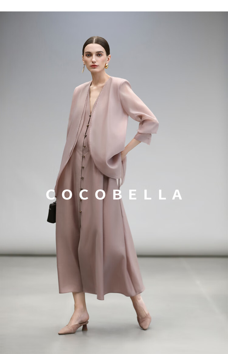 COCOBELLA玫瑰粉莱赛尔V领无袖连衣裙盛夏通勤背心裙FR7008-4