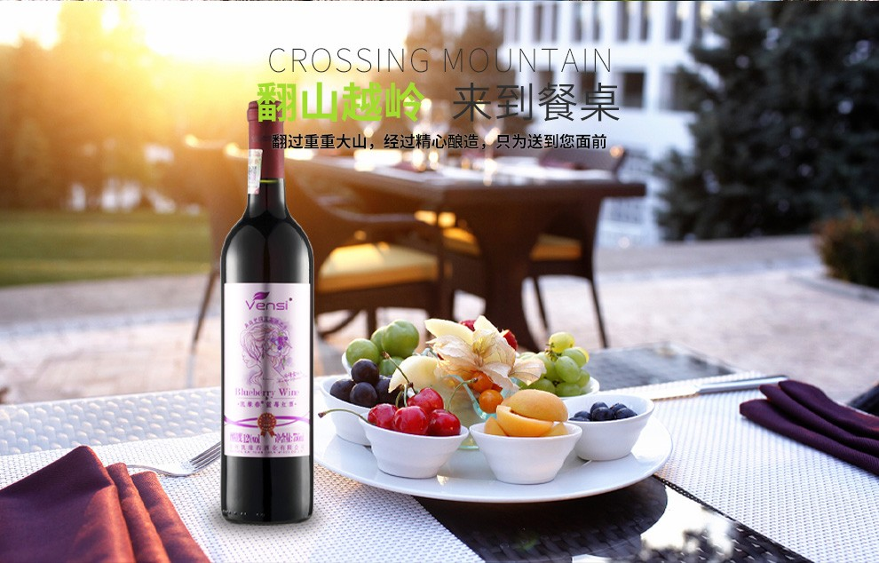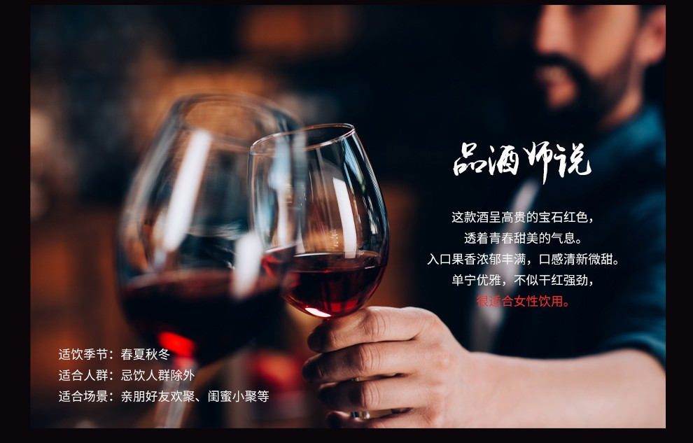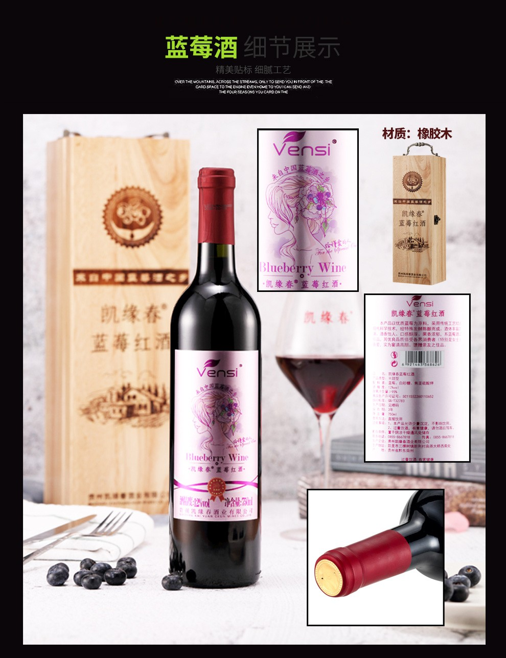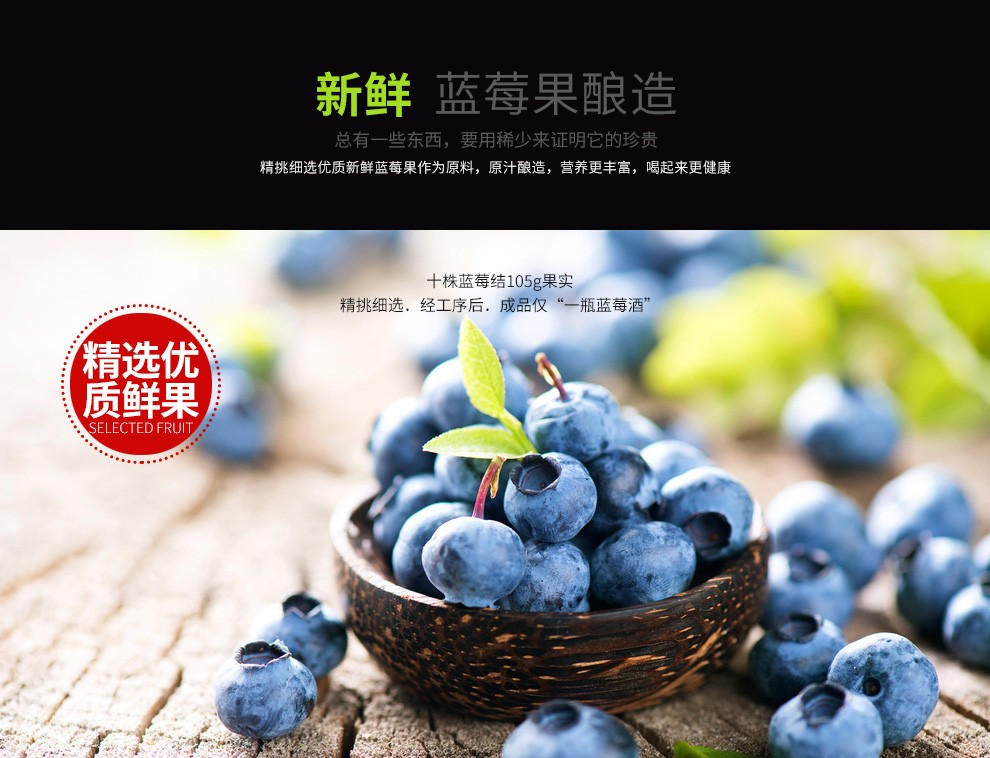 【直发】凯缘春蓝莓红酒粉标恒低温蓝莓原果发酵12度半甜型果酒750ml/瓶(带木箱礼盒)