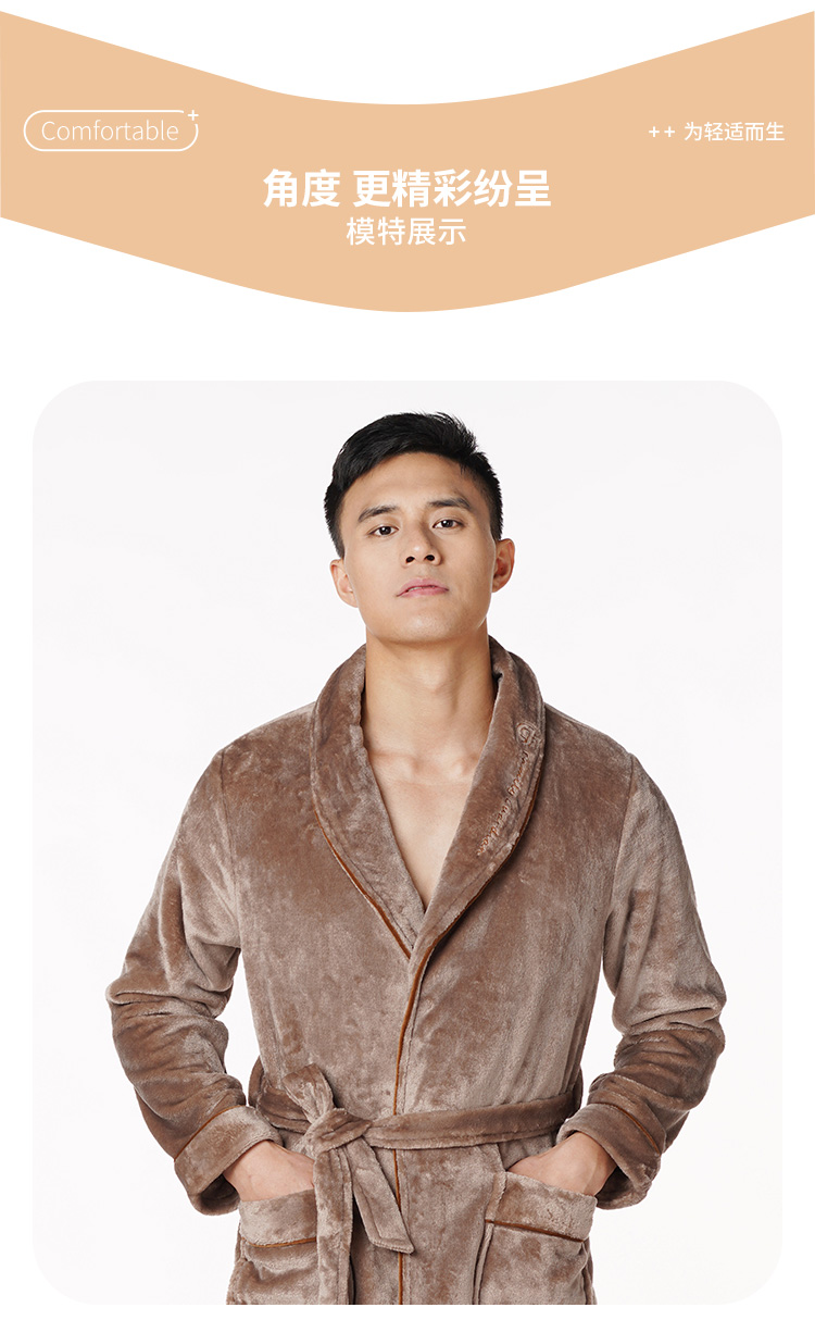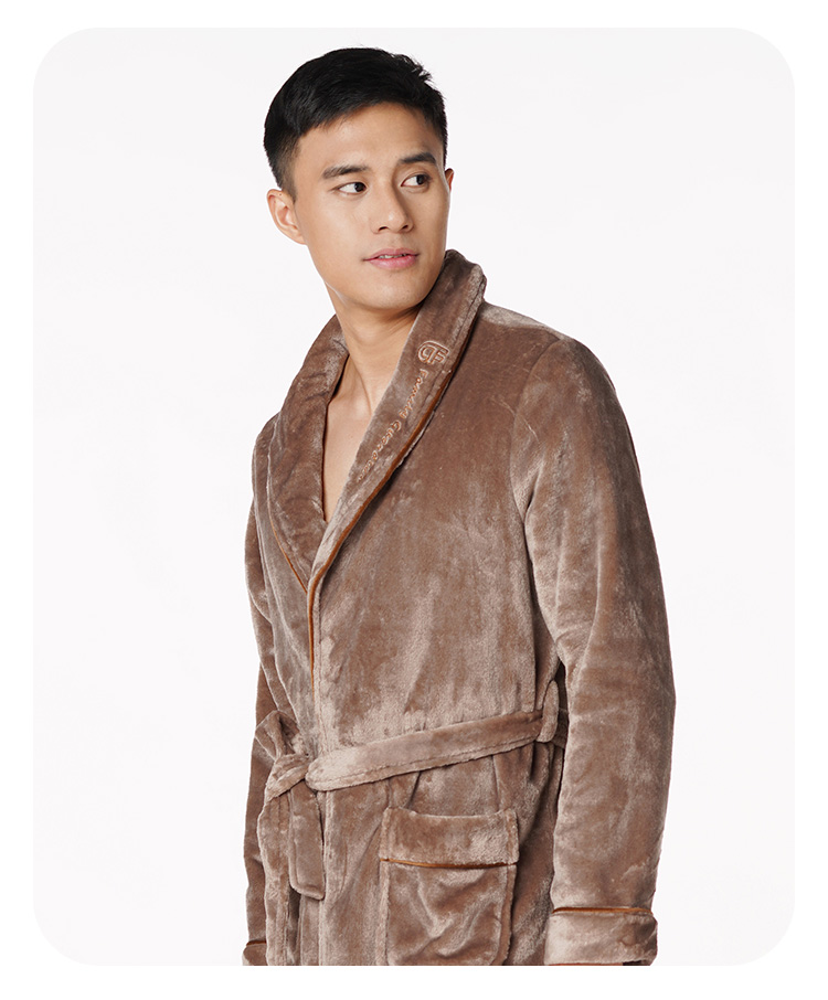 都市丽人都市锋尚轻松浴室男士法兰绒单件袍法兰绒厚家居服单件袍睡衣FH27H8