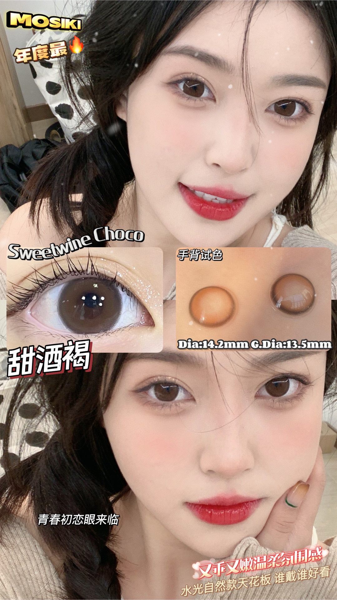 【年抛】甜酒褐 Mosiki | 巧克力水光初恋眼 | 中直径14.2, 着色13.5 | 【同品牌多副更划算,选款色板在详情页】 | 没有美瞳比甜酒褐更懂氛围感~