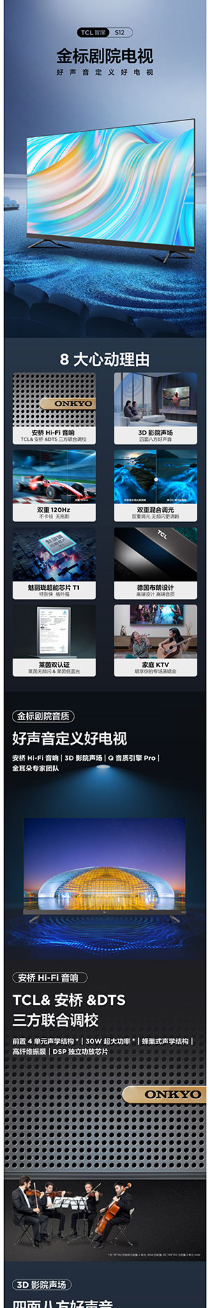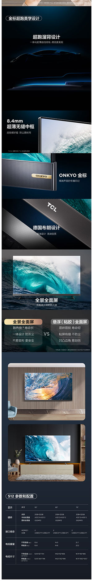 TCL电视 55S12 55吋 金标剧院电视 4k高清全面屏 全场景AI声控 液晶智能平板电视