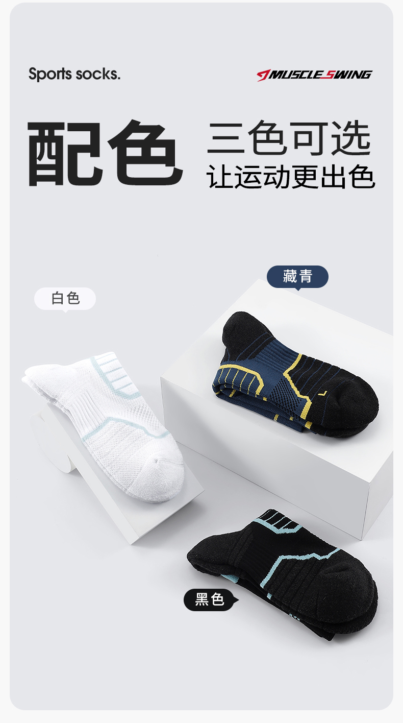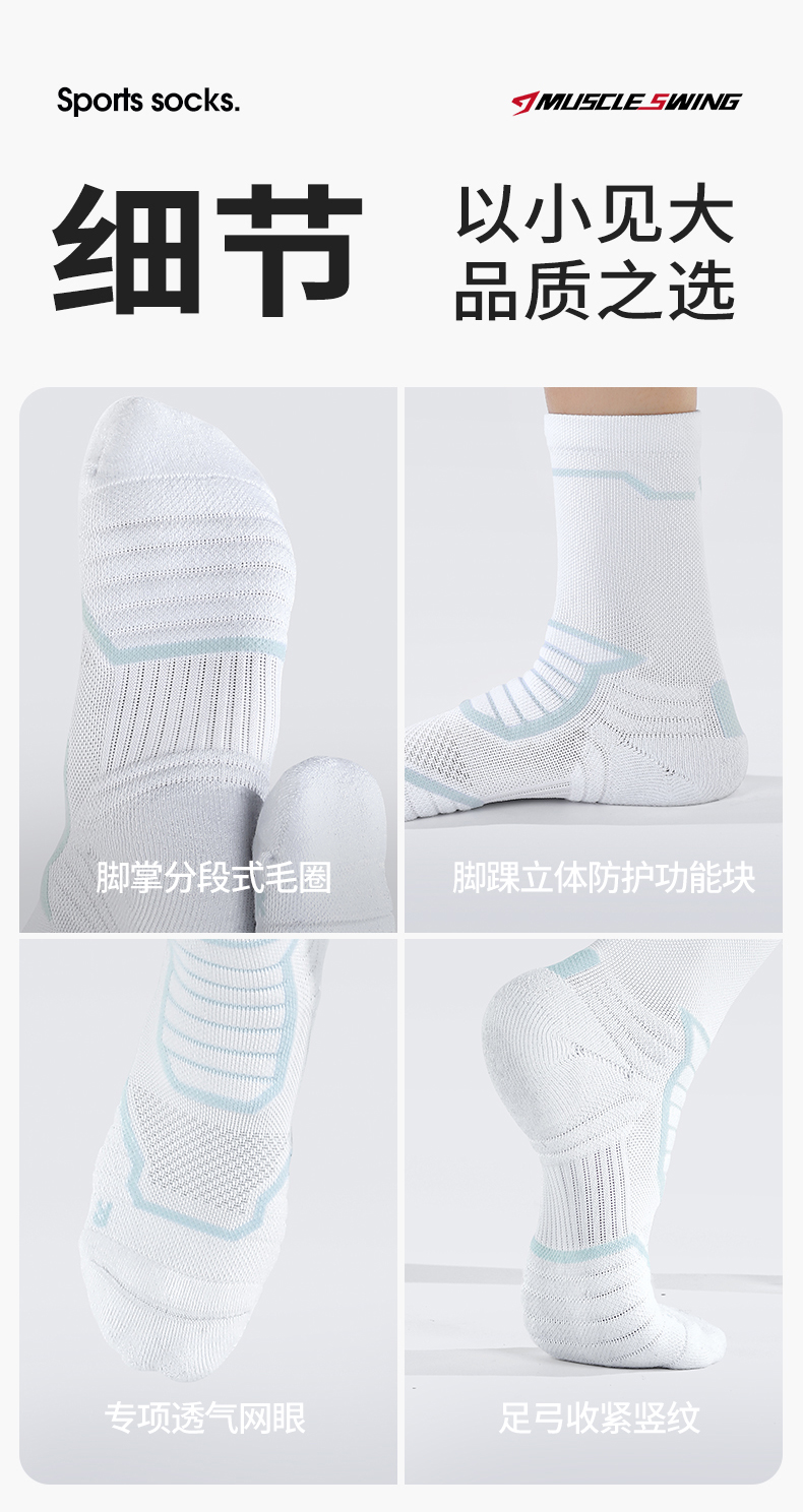 627肌动中筒毛巾底运动袜男专业跑步袜女户外徒步马拉松袜白色篮球袜