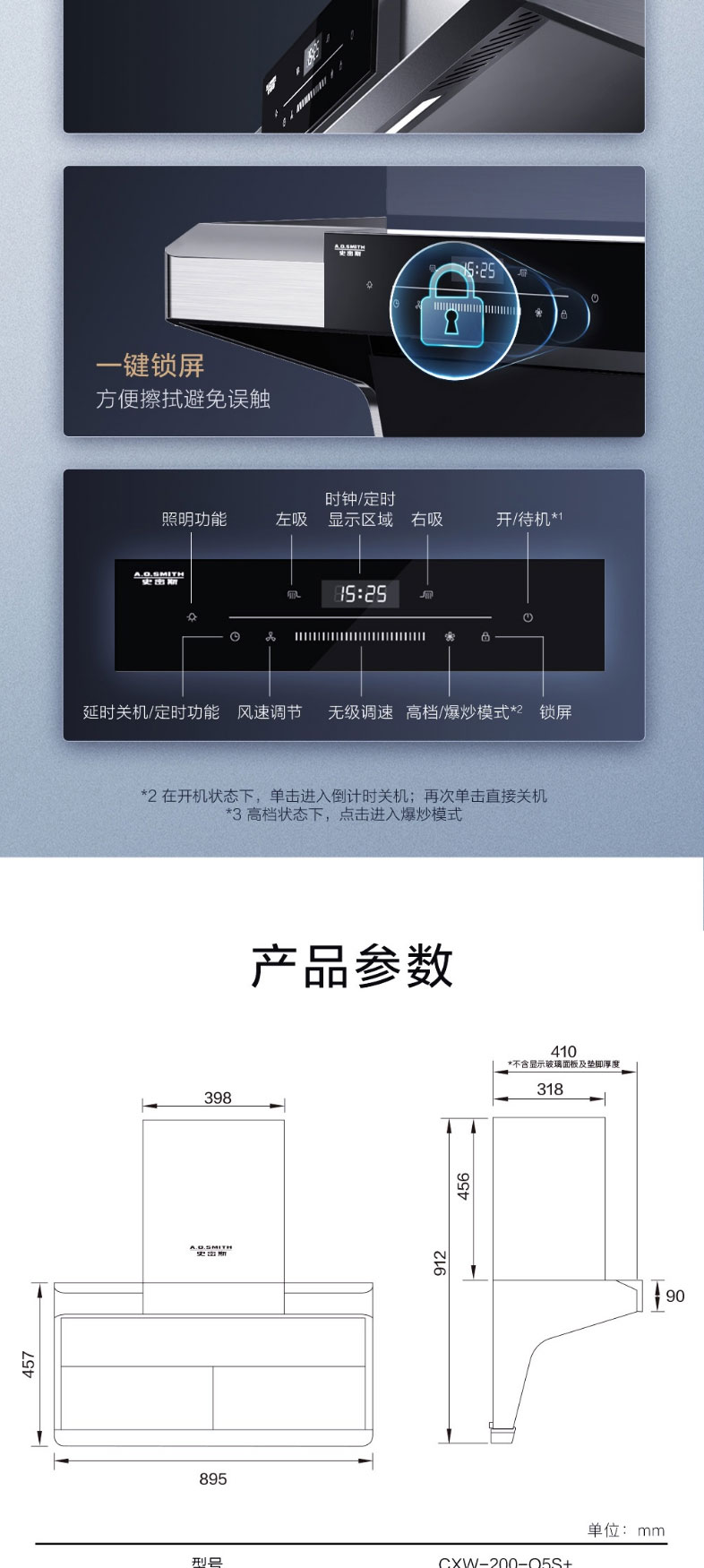 A.O.史密斯易清洁顶侧双吸油烟机CXW-200-Q5S+