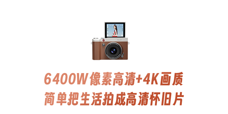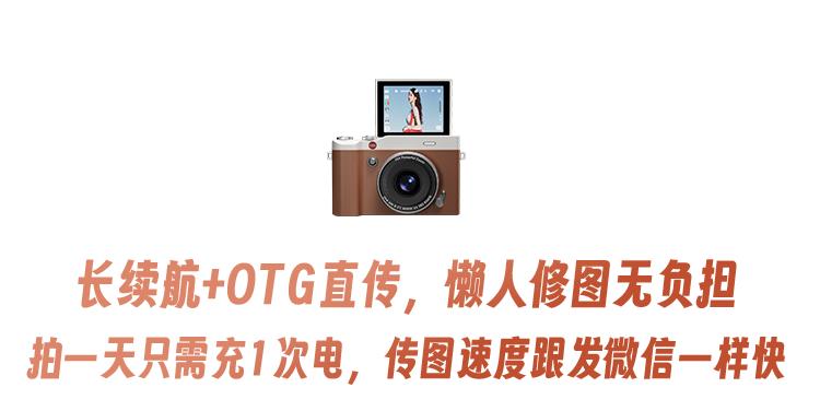机身仅巴掌大小,180°翻转屏,自拍不求人;按键简洁,上手就会用。带它出游,比一瓶防晒霜还要轻!