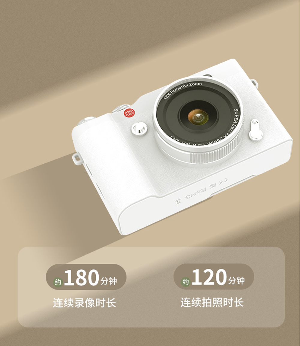 可连续拍120分钟照片(约800张),或连续录180分钟视频——