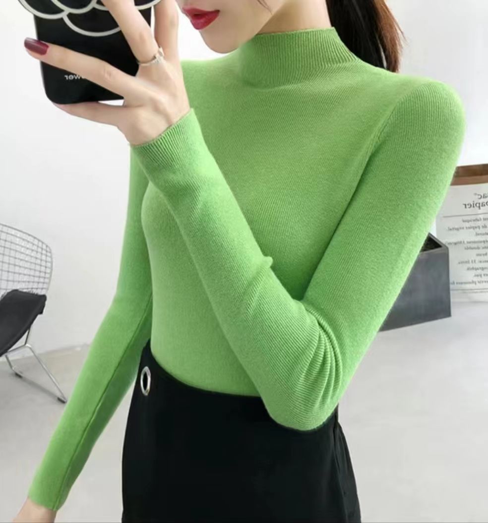 【买一送一】香芋紫半高领紧身高领针织衫打底衫羊毛秋冬洋气内搭堆堆领毛衣百搭打底上衣