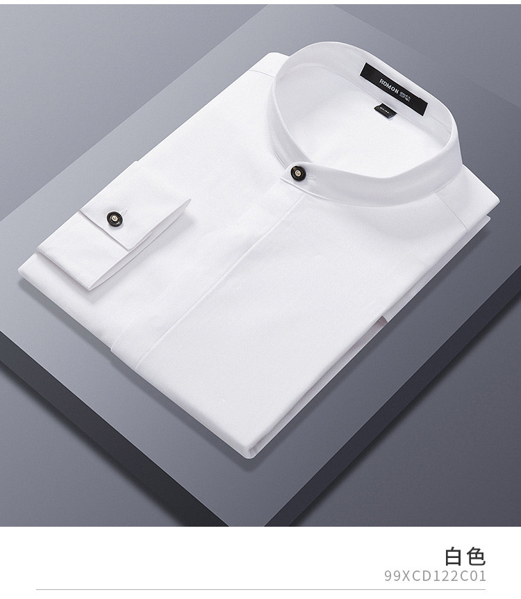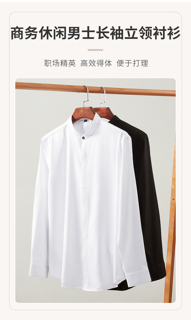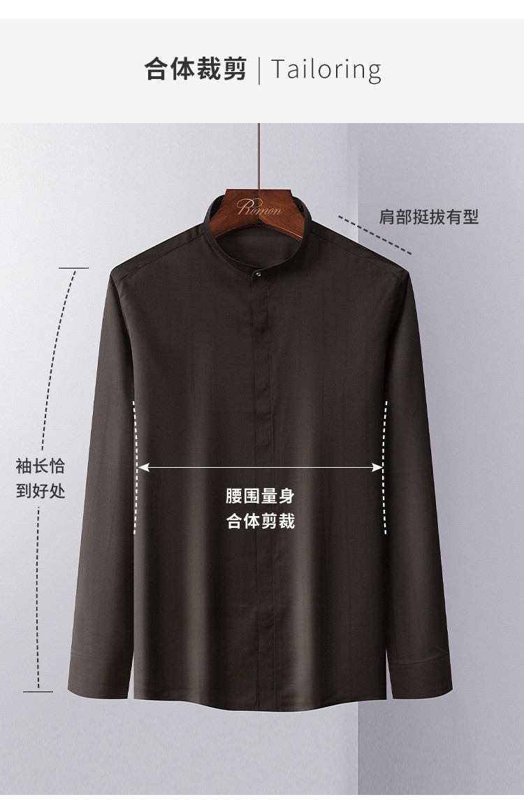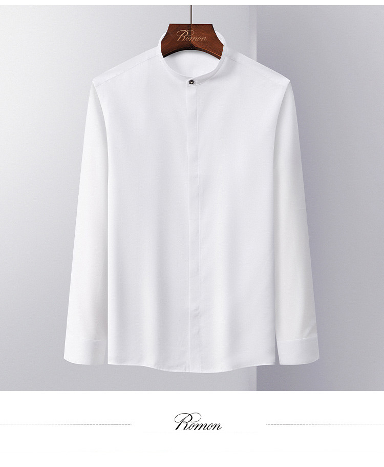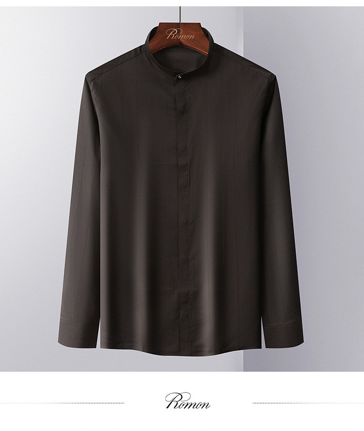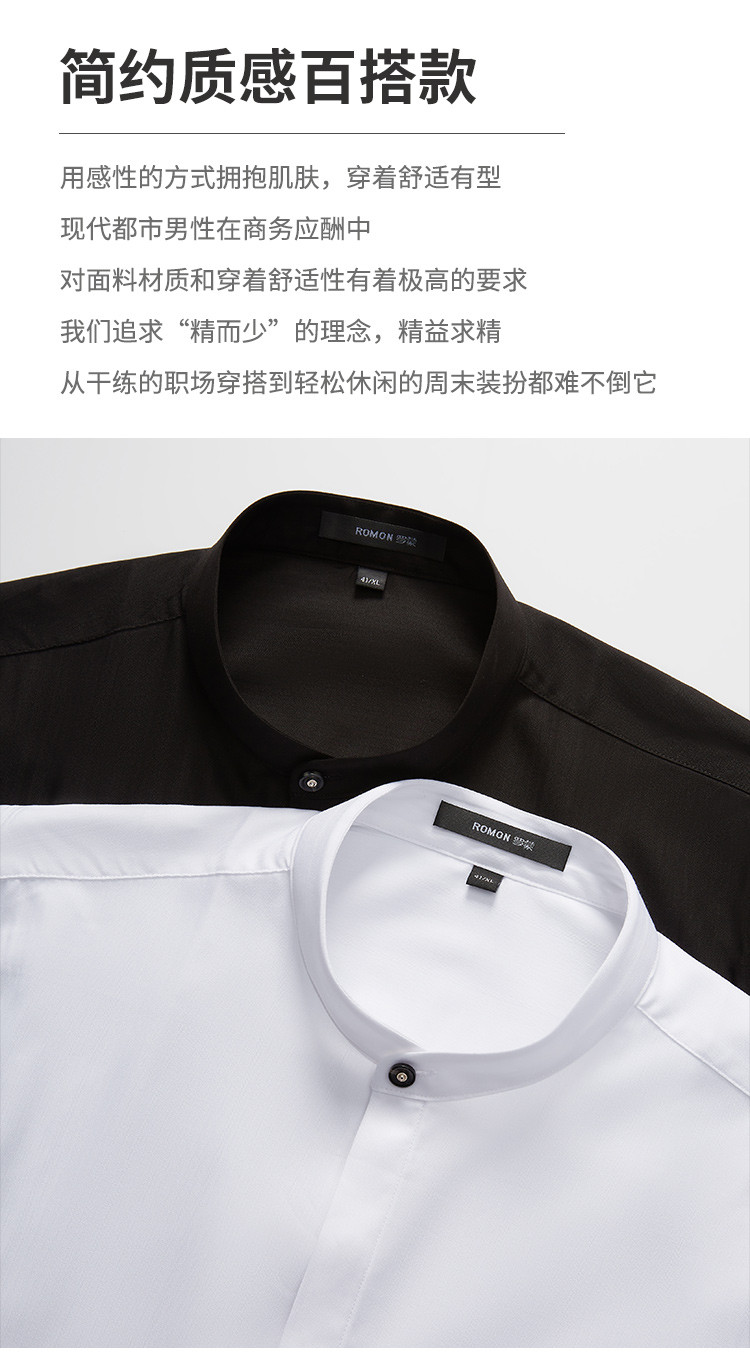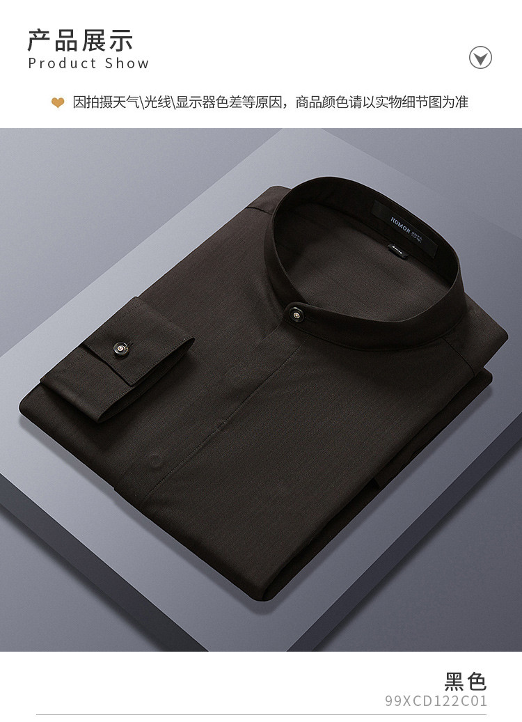 【简约立领】罗蒙春夏长袖衬衫男士商务休闲立领衬衣爸爸装中年男衬衣