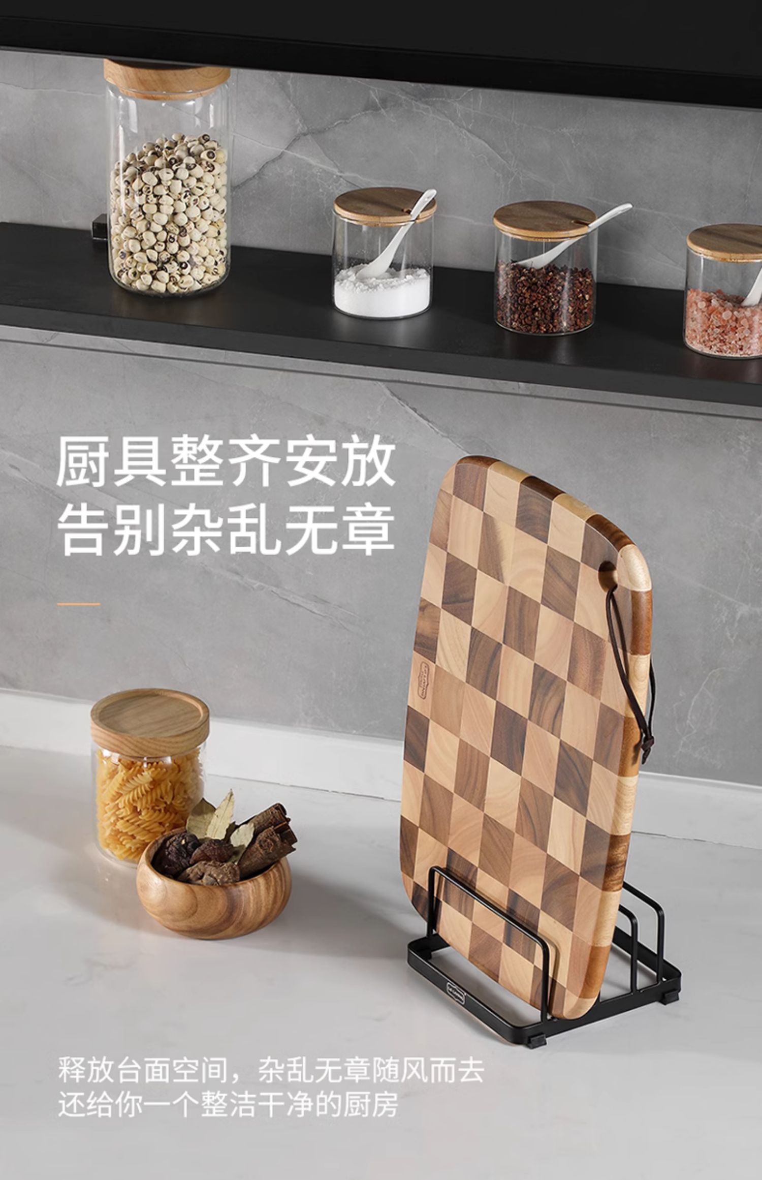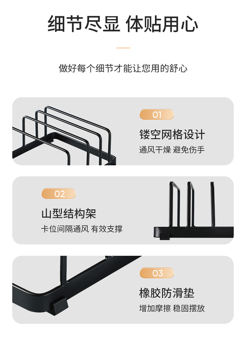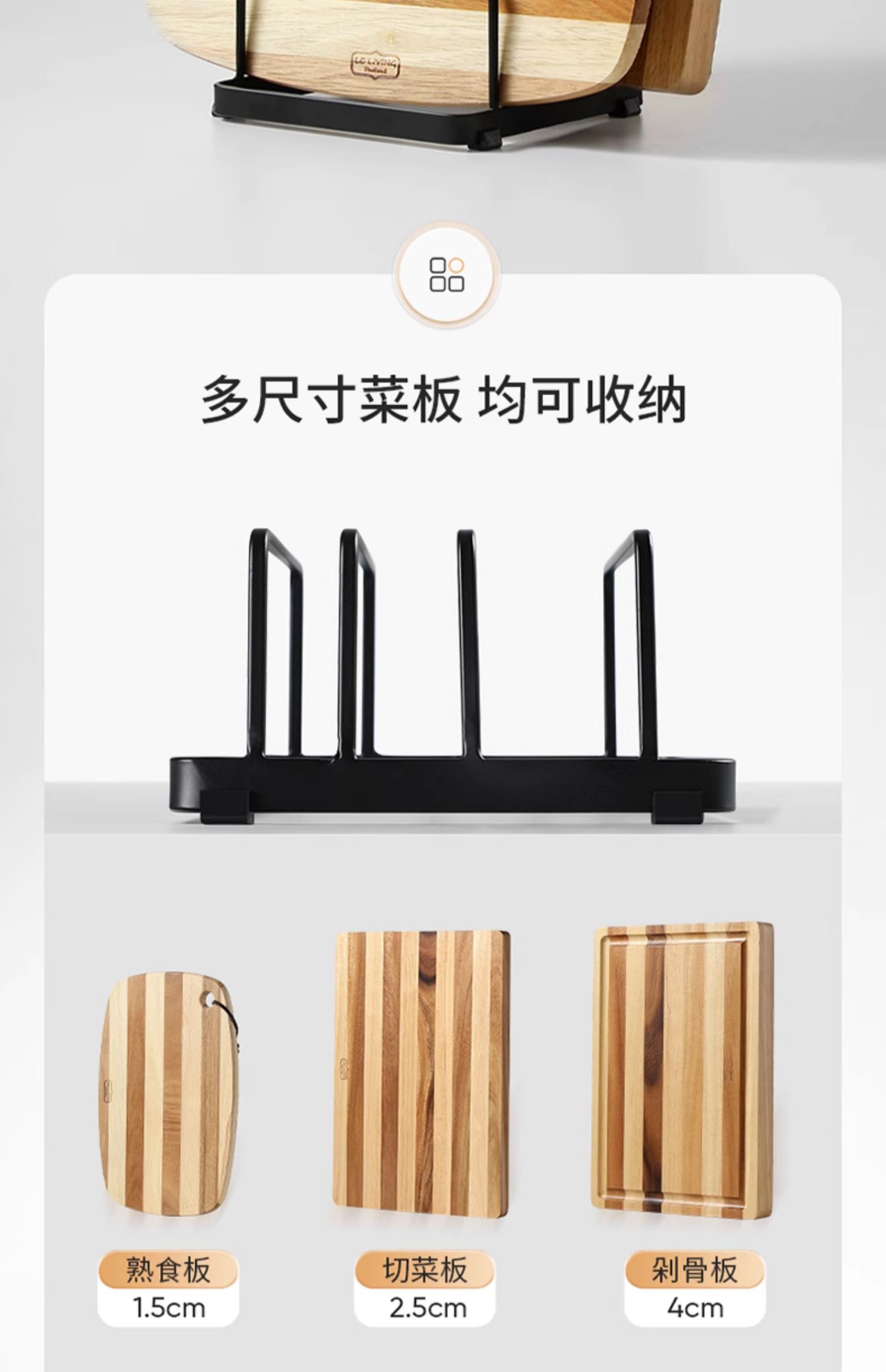 LCLIVING三分格金属菜板架砧板收纳架黑色