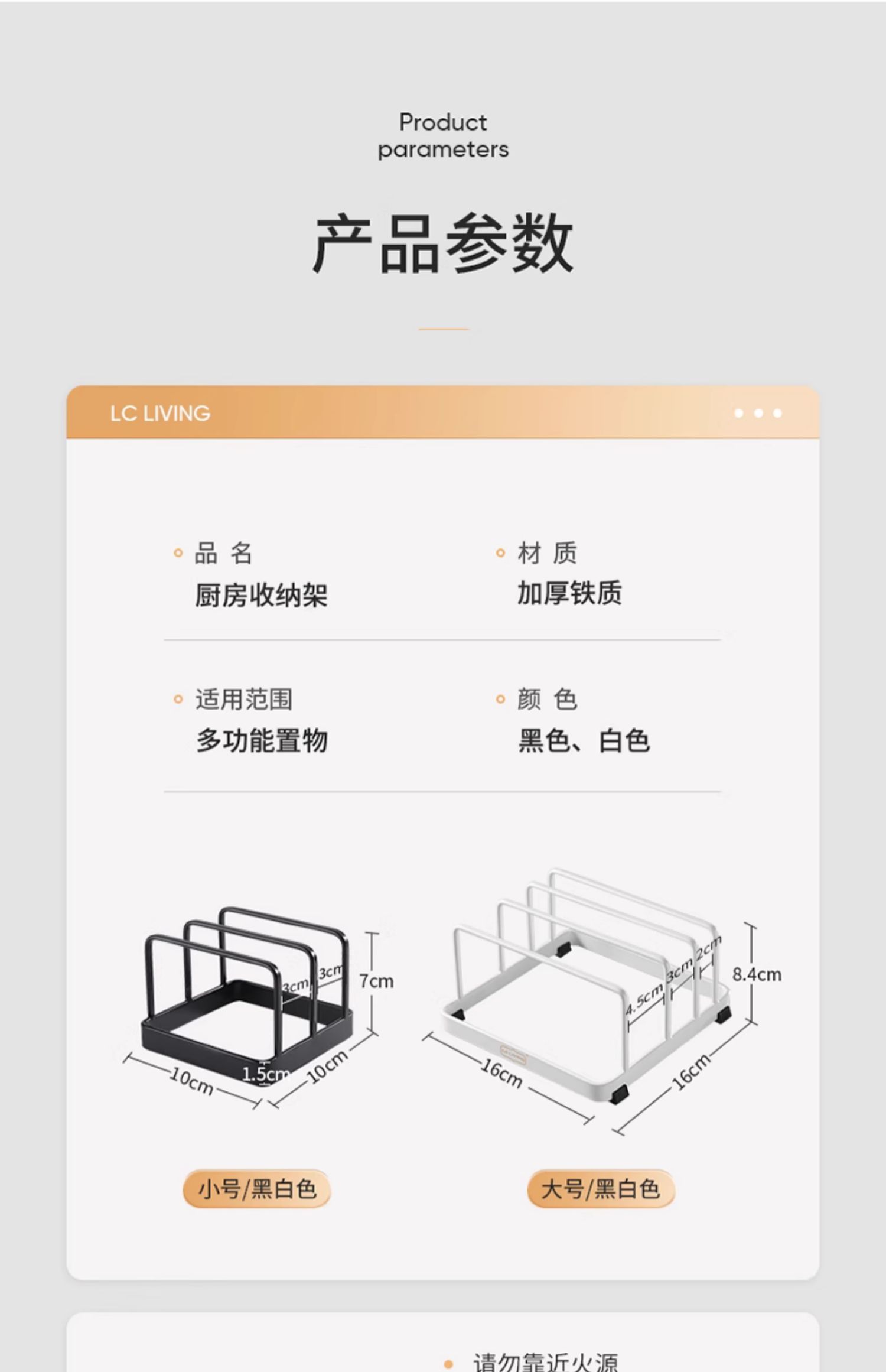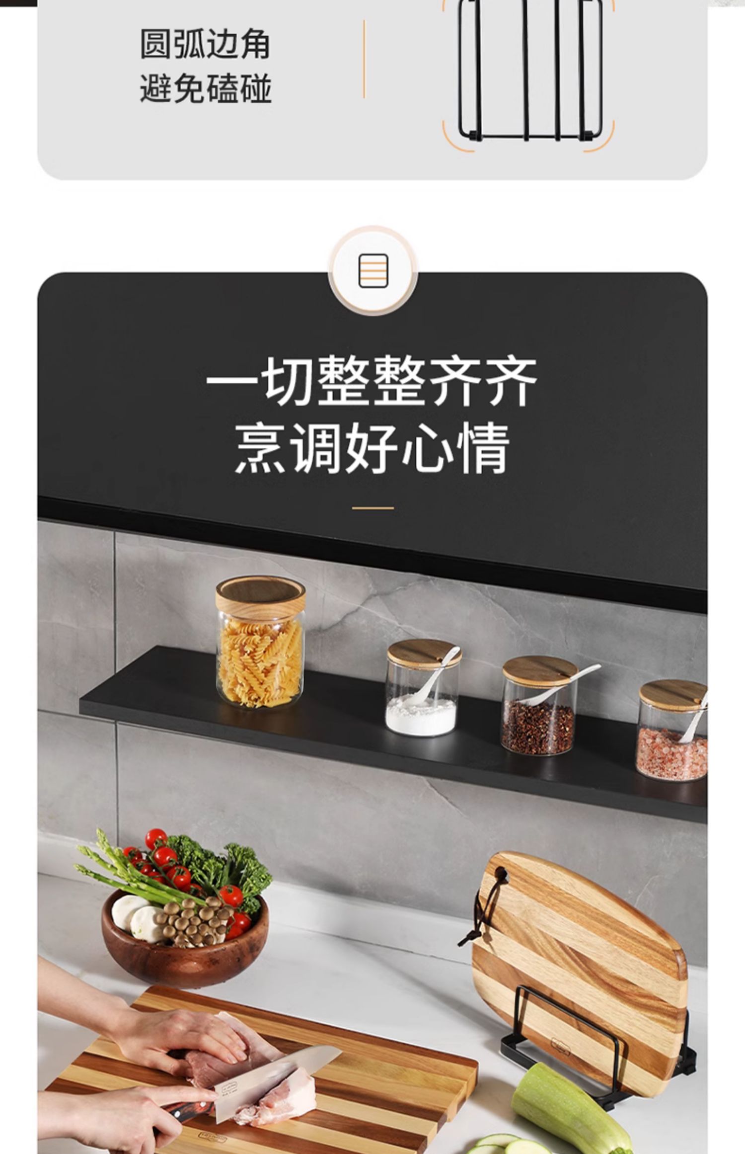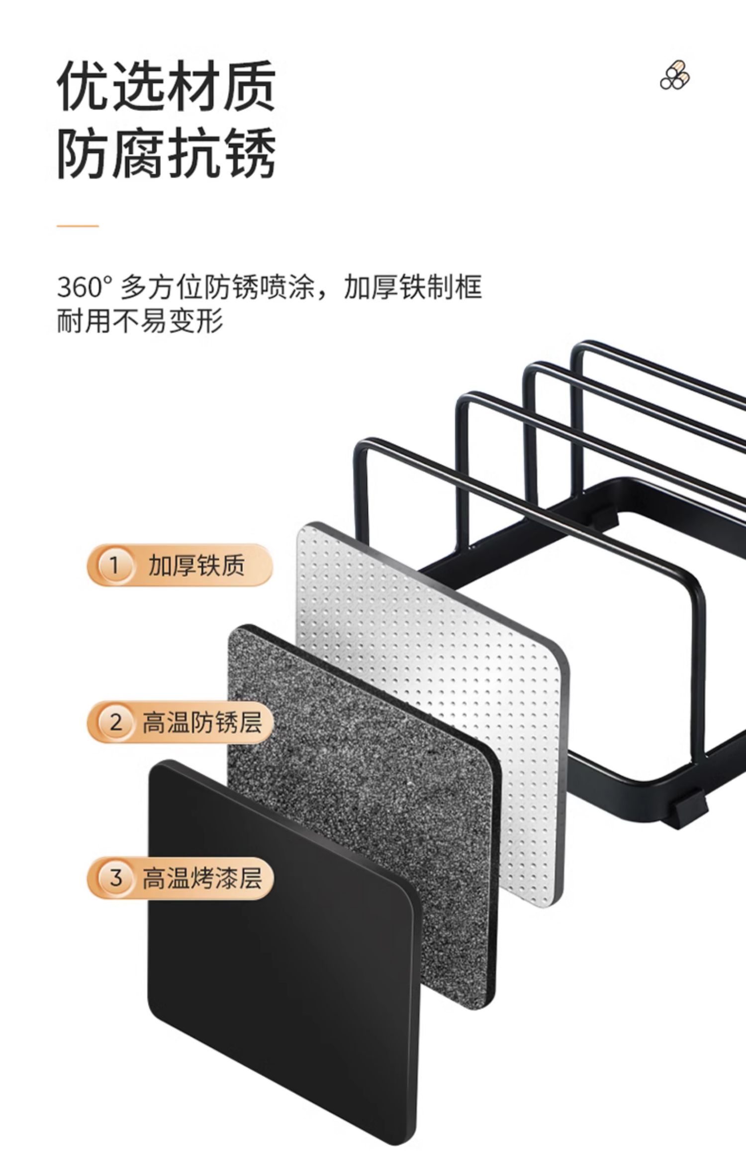 LCLIVING三分格金属菜板架砧板收纳架黑色