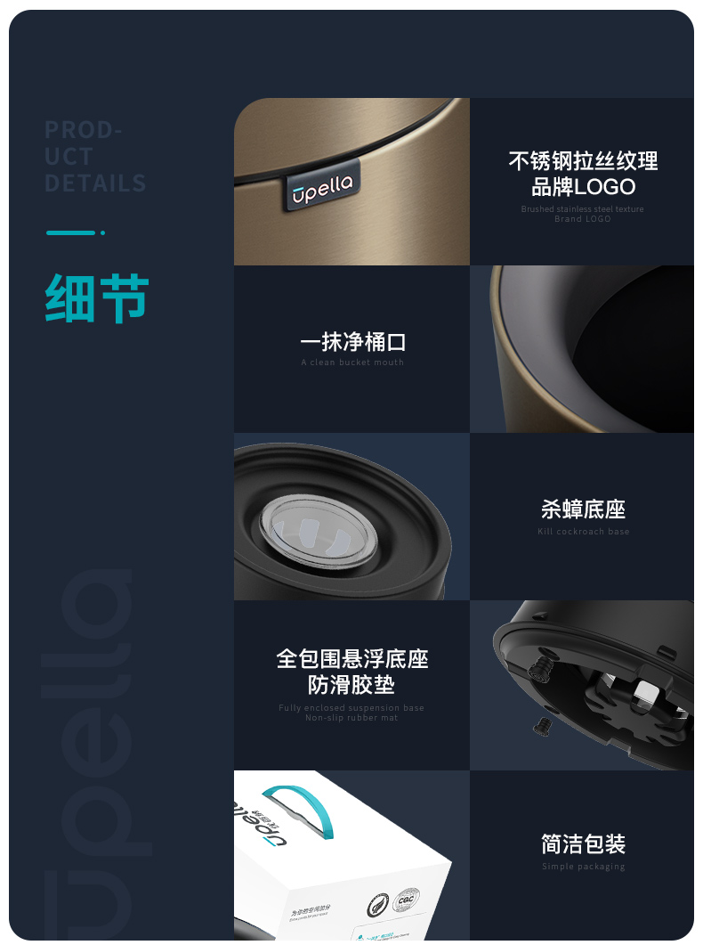 优百纳欧式创意家用不锈钢恒星垃圾桶