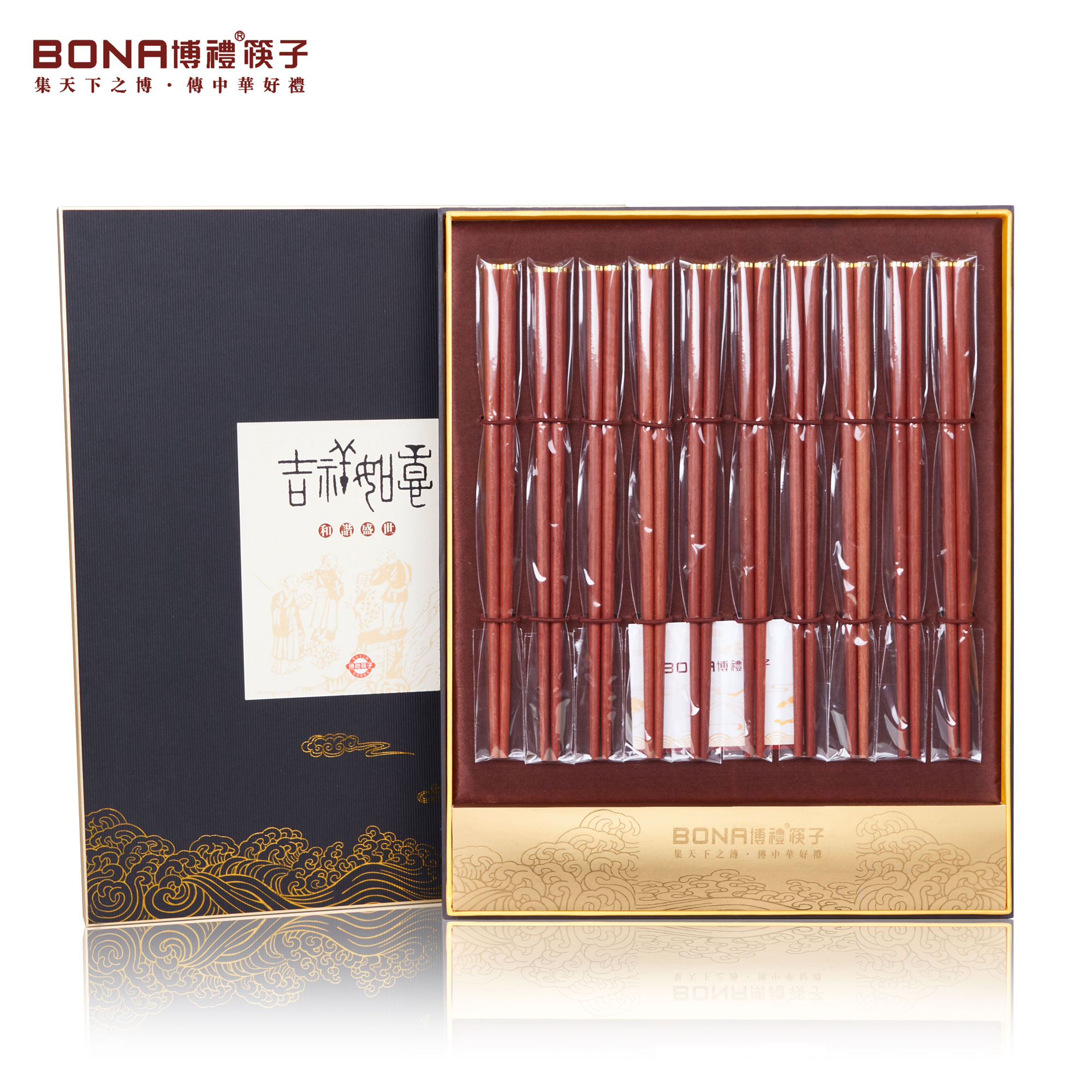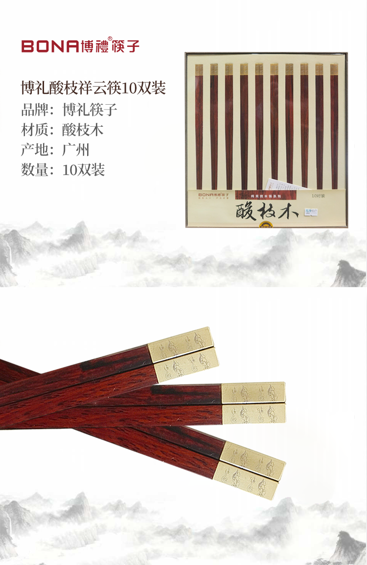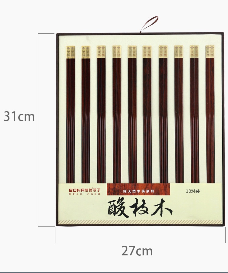 博礼筷子 进口材质红檀木/酸枝木筷子10双装红檀木毛笔头筷十双装-YHD