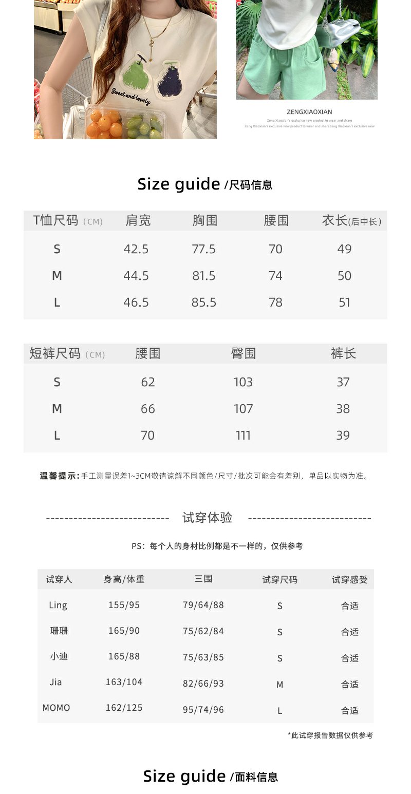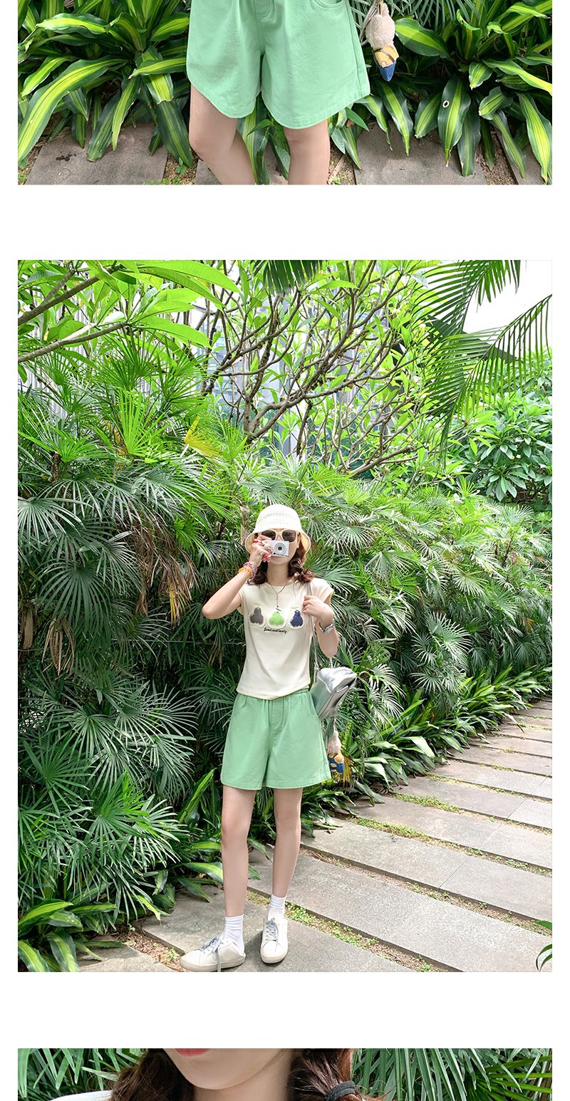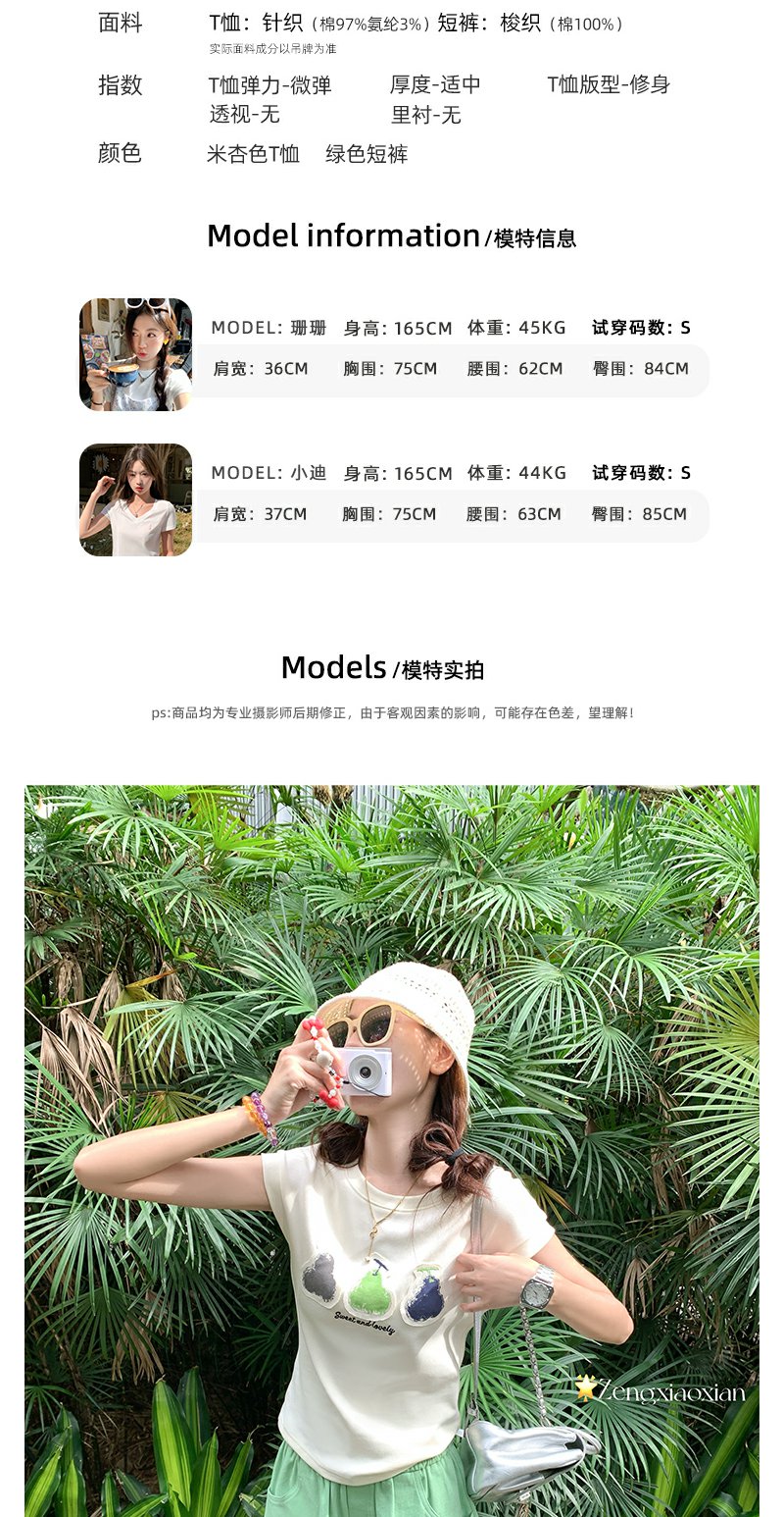 <曾小咸推荐>韩系简约风三色梨修身短袖T恤短裤