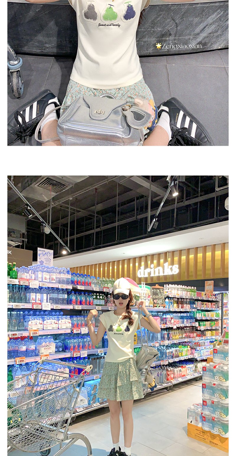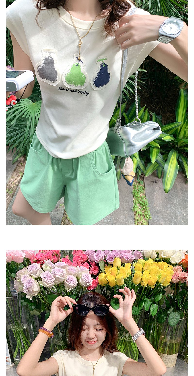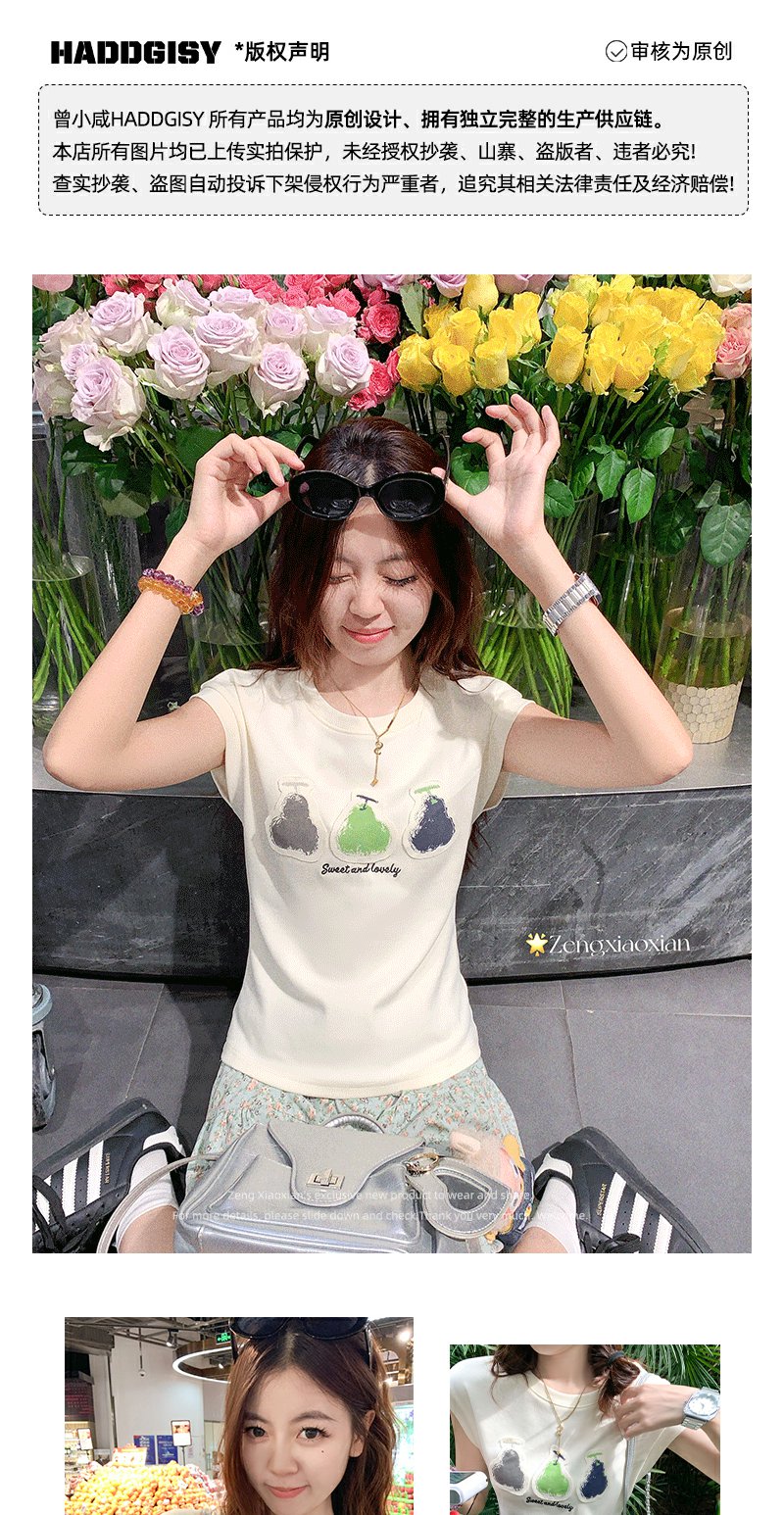 <曾小咸推荐>韩系简约风三色梨修身短袖T恤短裤