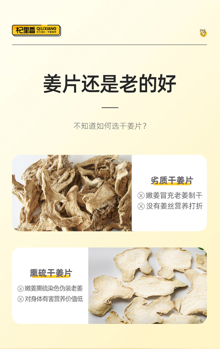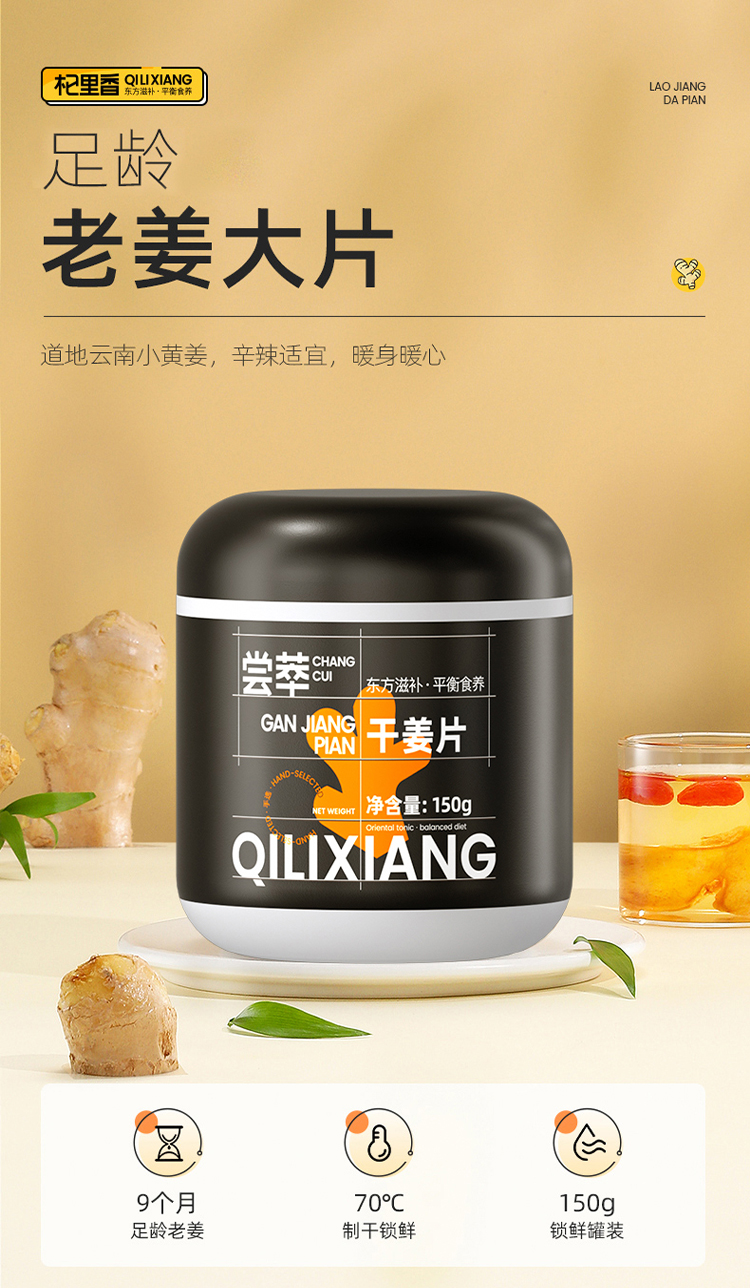 【杞里香云南小黄姜茶干姜片150g】泡茶水喝食用姜多,泡茶、炖汤、打粉皆宜防己倪师推荐甘草干姜云南小黄姜茶老姜驱寒生姜干