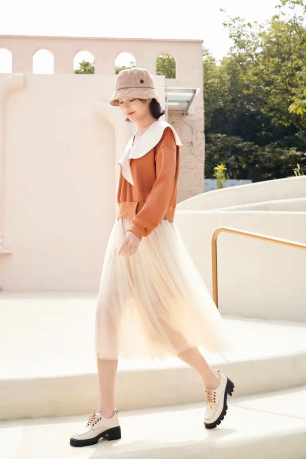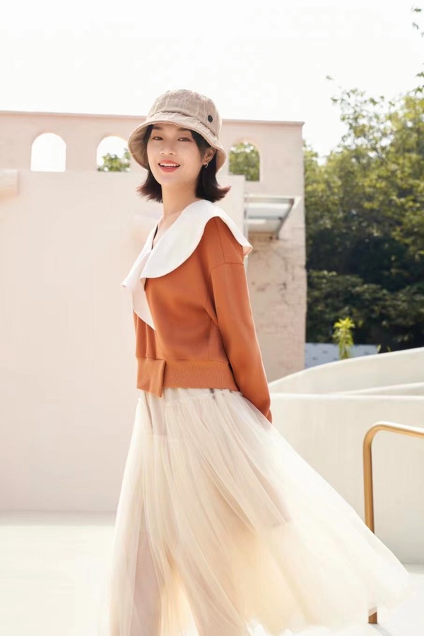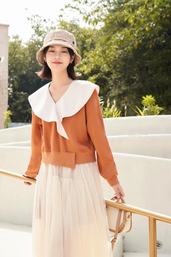 Stay2Weeks 设计款荷叶领撞色卫衣上衣 17804