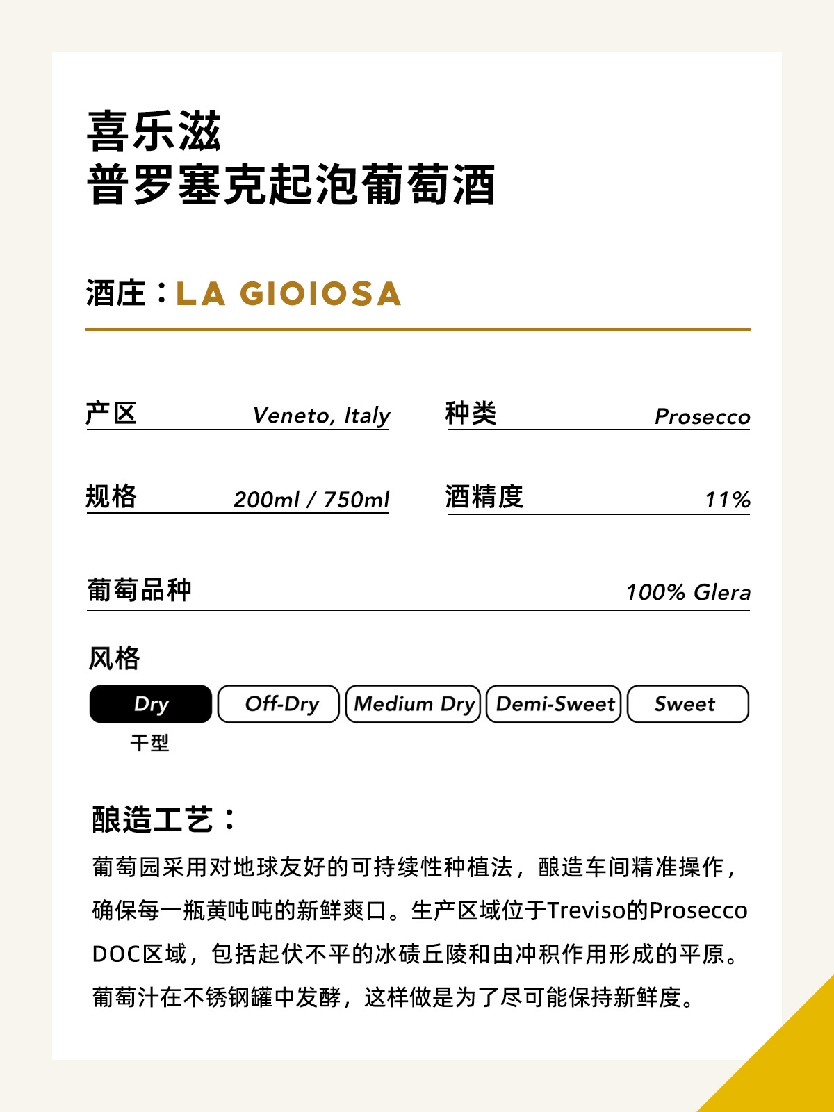 喜乐滋普罗塞克起泡葡萄酒 1.5L