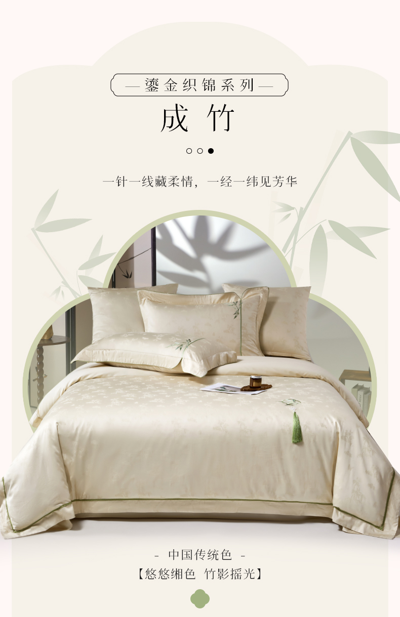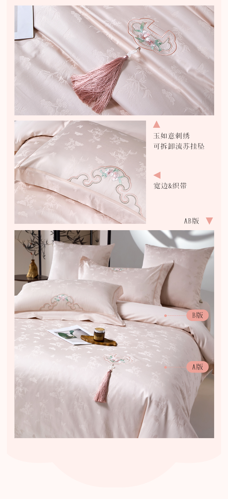 多喜爱 全棉提花四件套 成竹/如玉hl【高密全棉】【提花工艺】【国风刺绣】流苏挂饰 轻奢礼盒