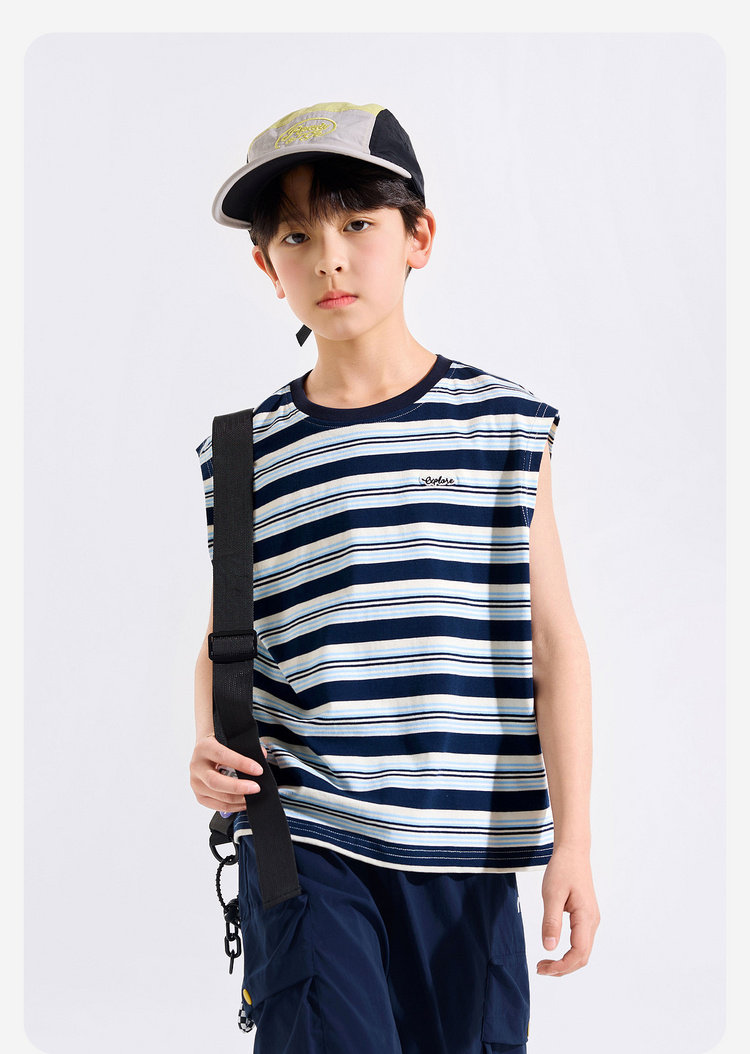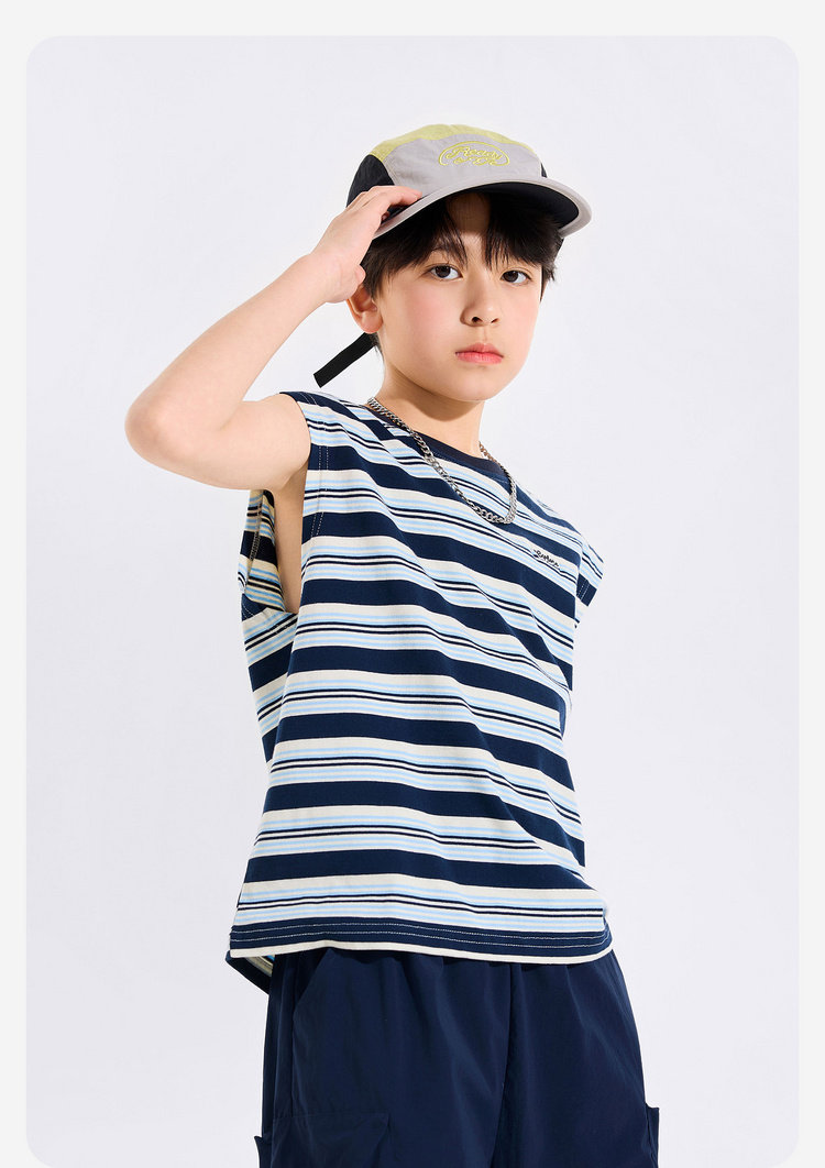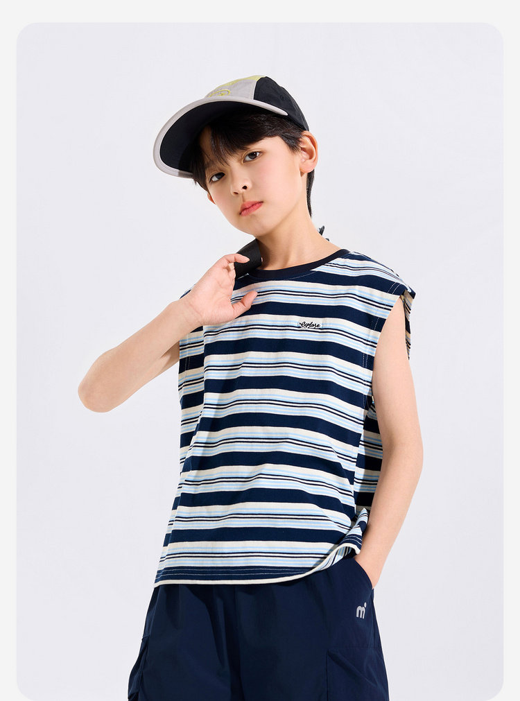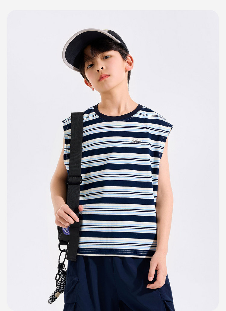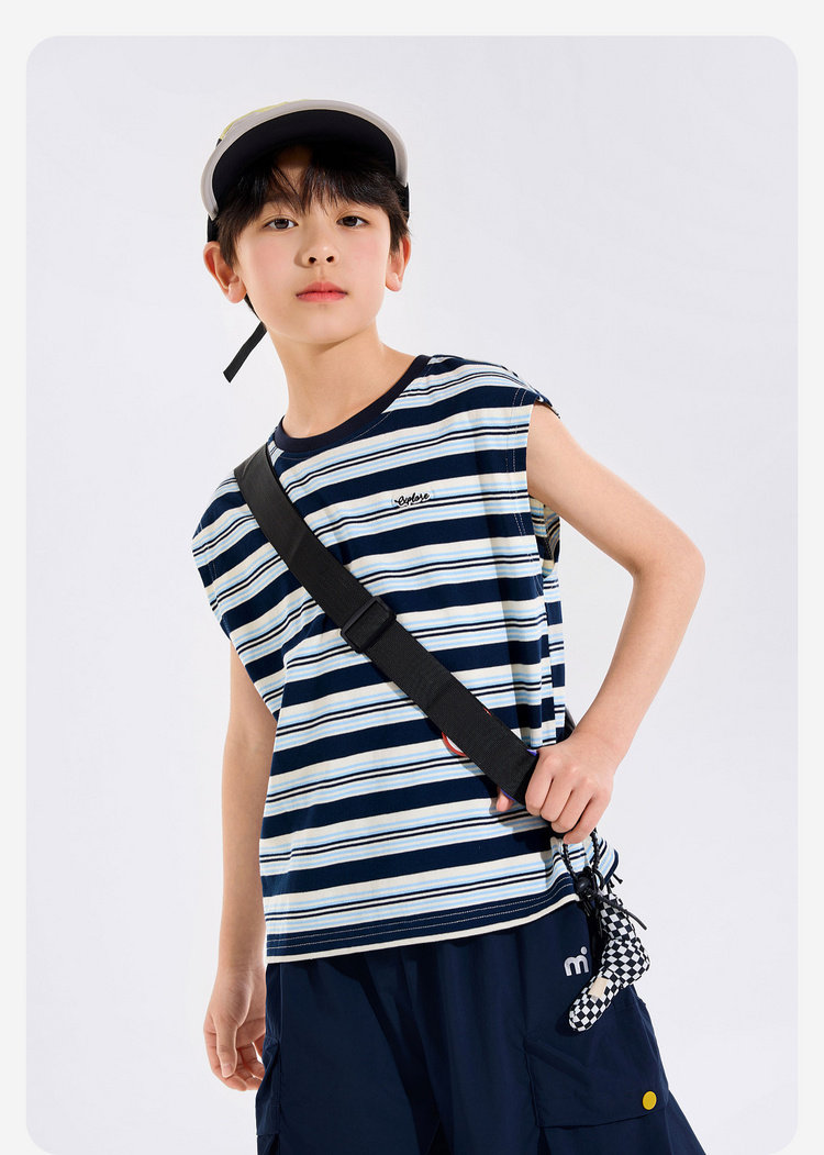 【全棉】男童纯棉背心儿童夏季无袖上衣大童条纹衣服薄款新童装Z6BTX388