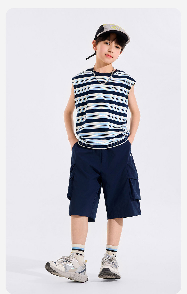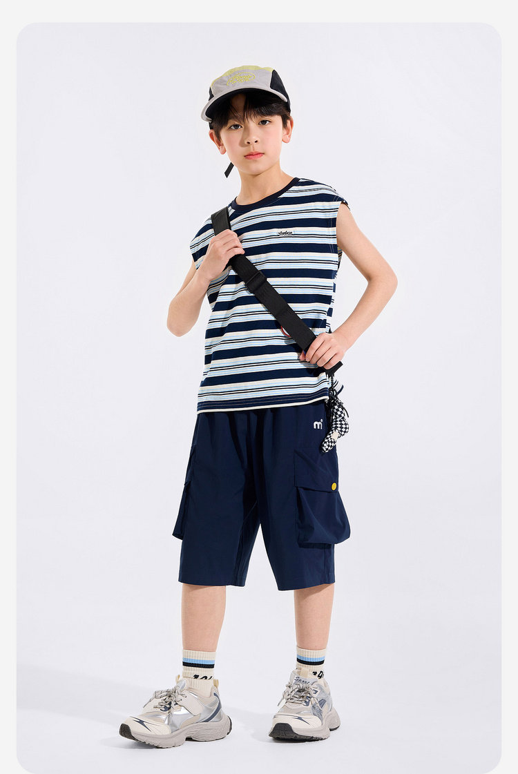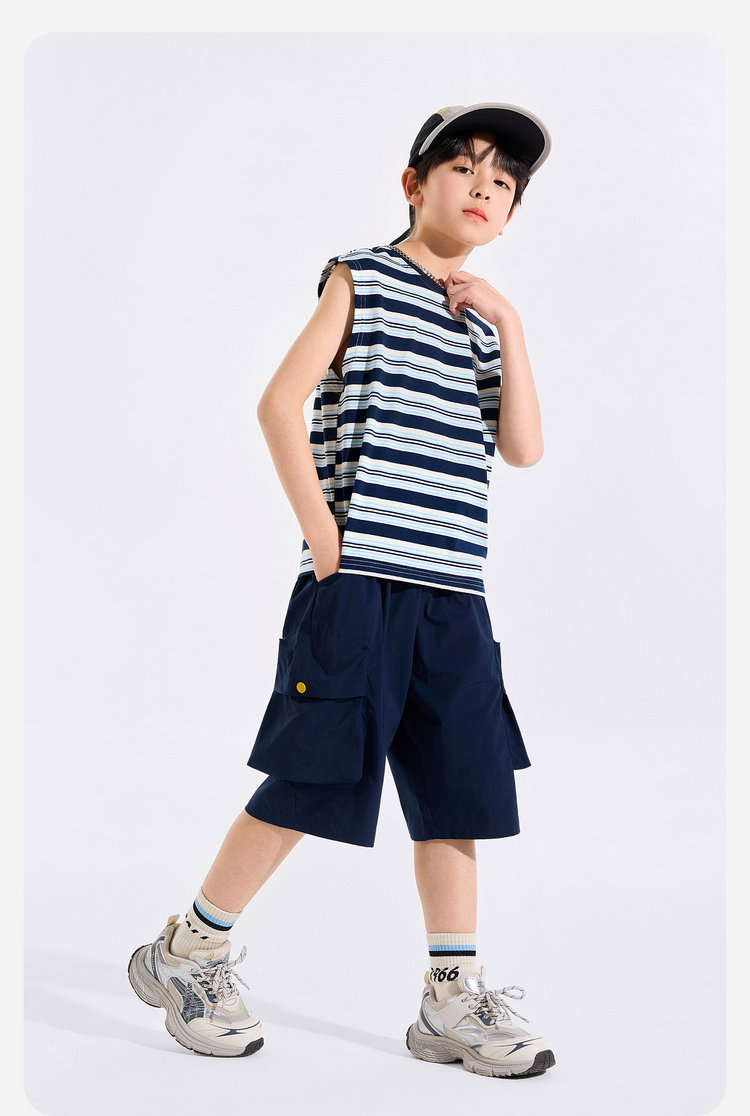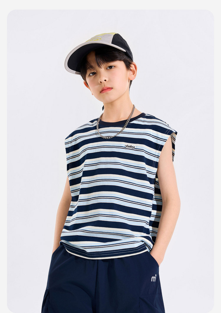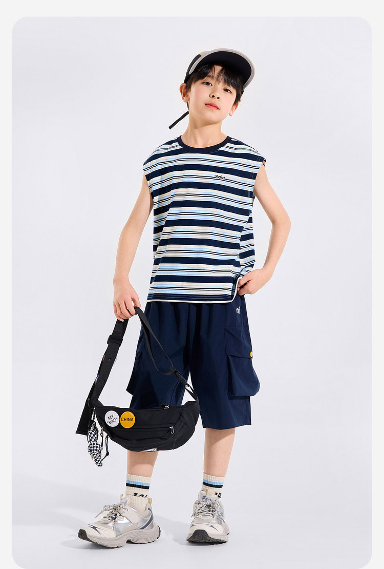 【全棉】男童纯棉背心儿童夏季无袖上衣大童条纹衣服薄款新童装Z6BTX388