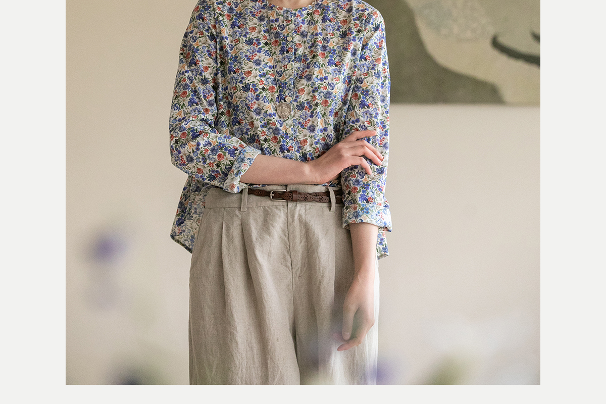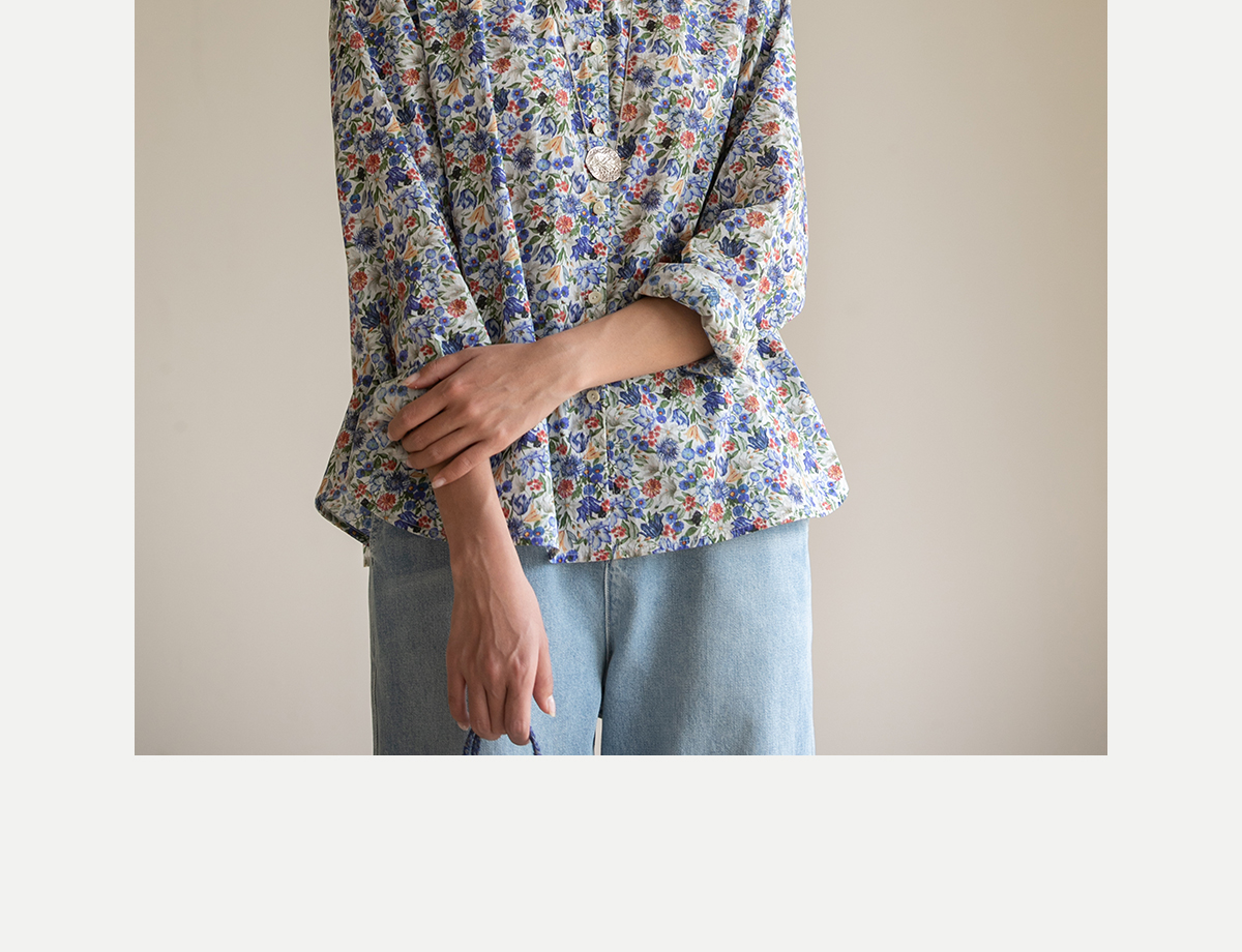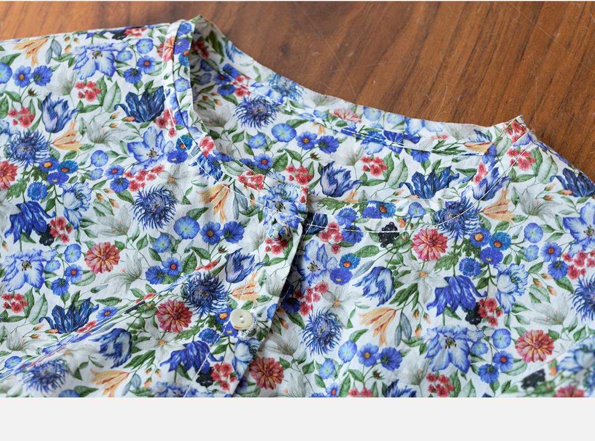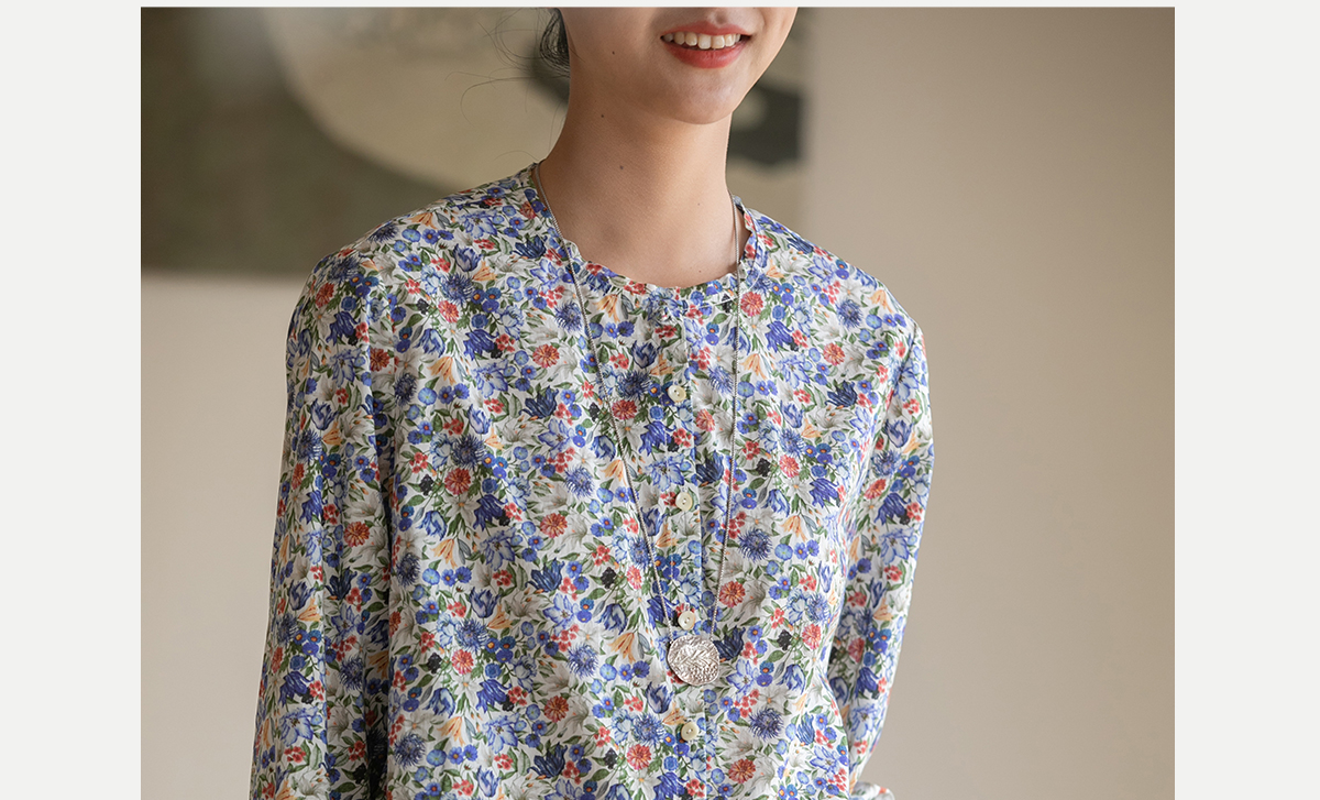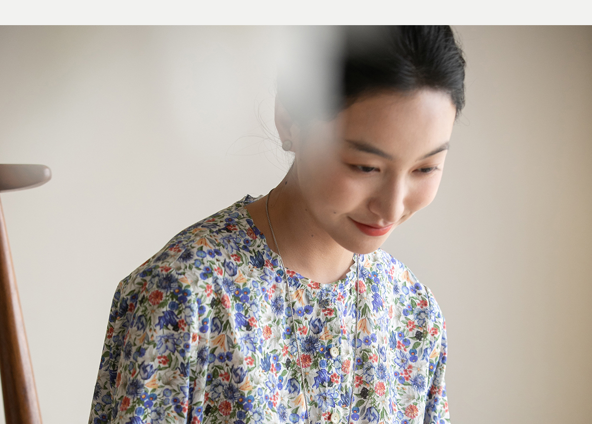 牧衣游原创重磅80支新疆棉印花布开襟衬衫休闲文艺碎花衬衣 霜枝
