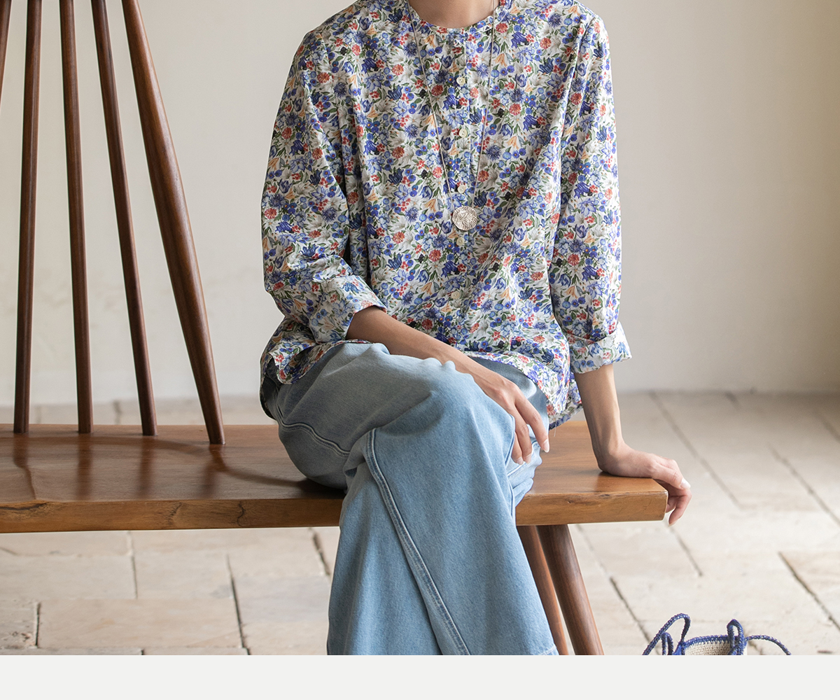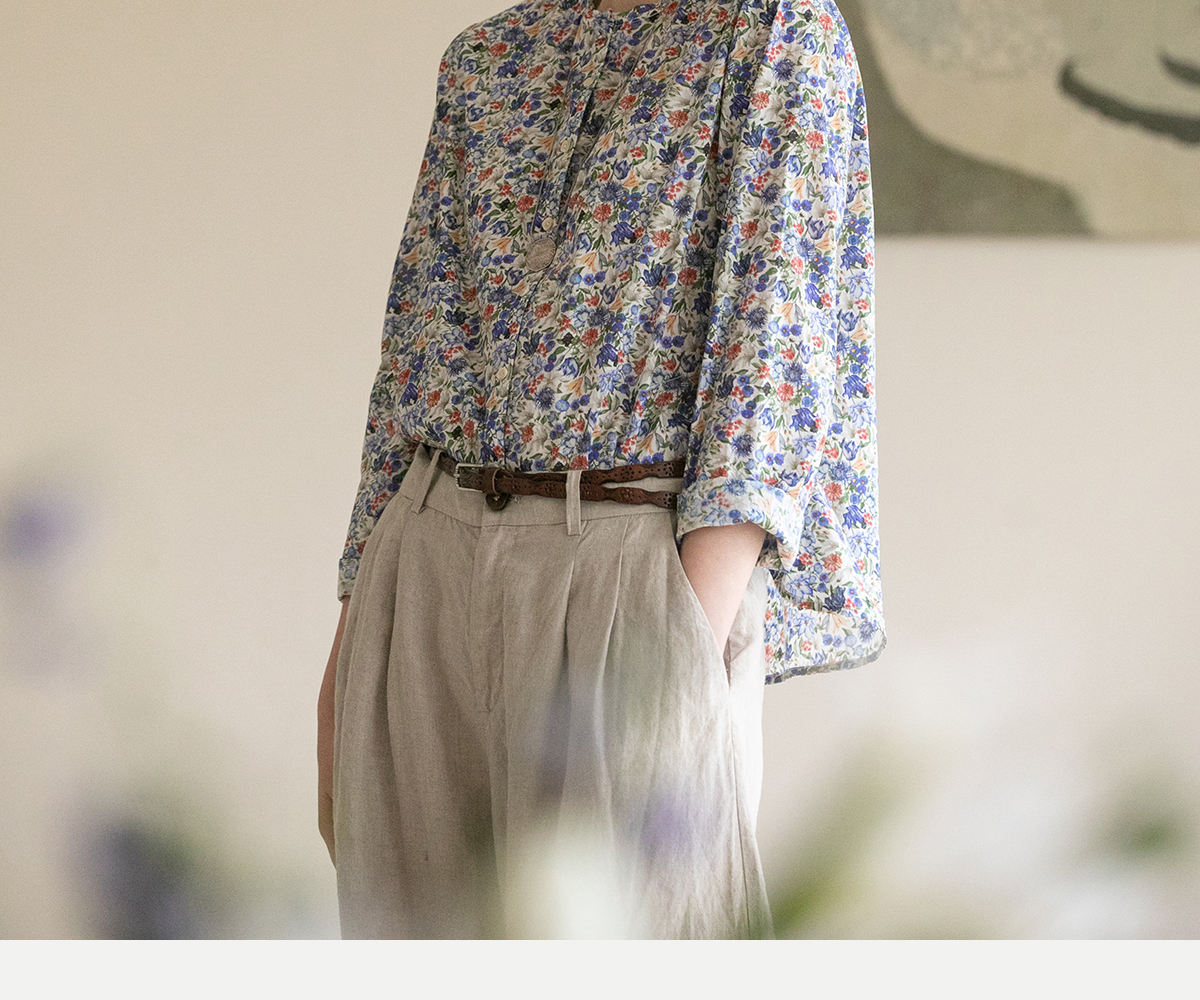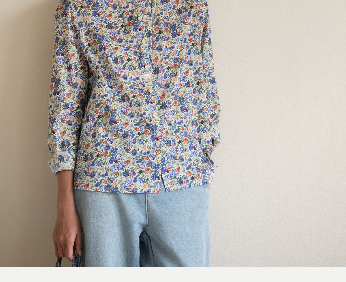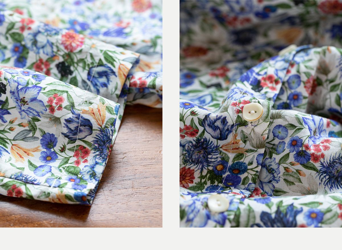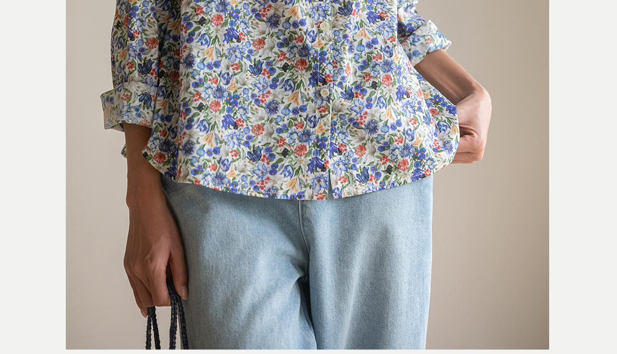 牧衣游原创重磅80支新疆棉印花布开襟衬衫休闲文艺碎花衬衣 霜枝
