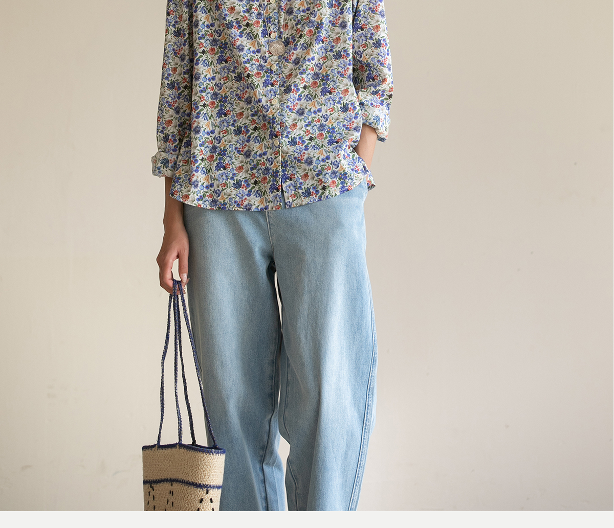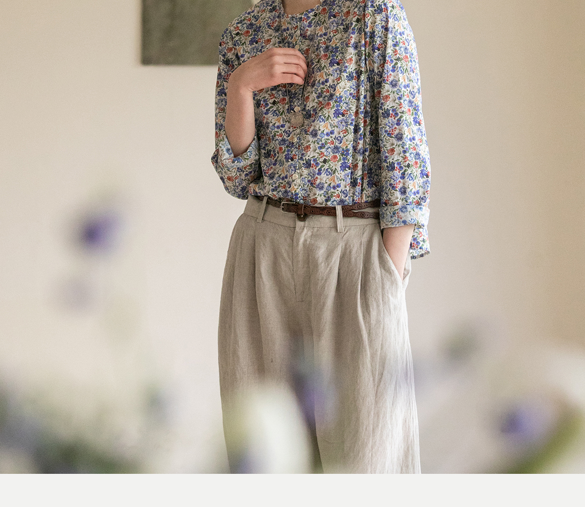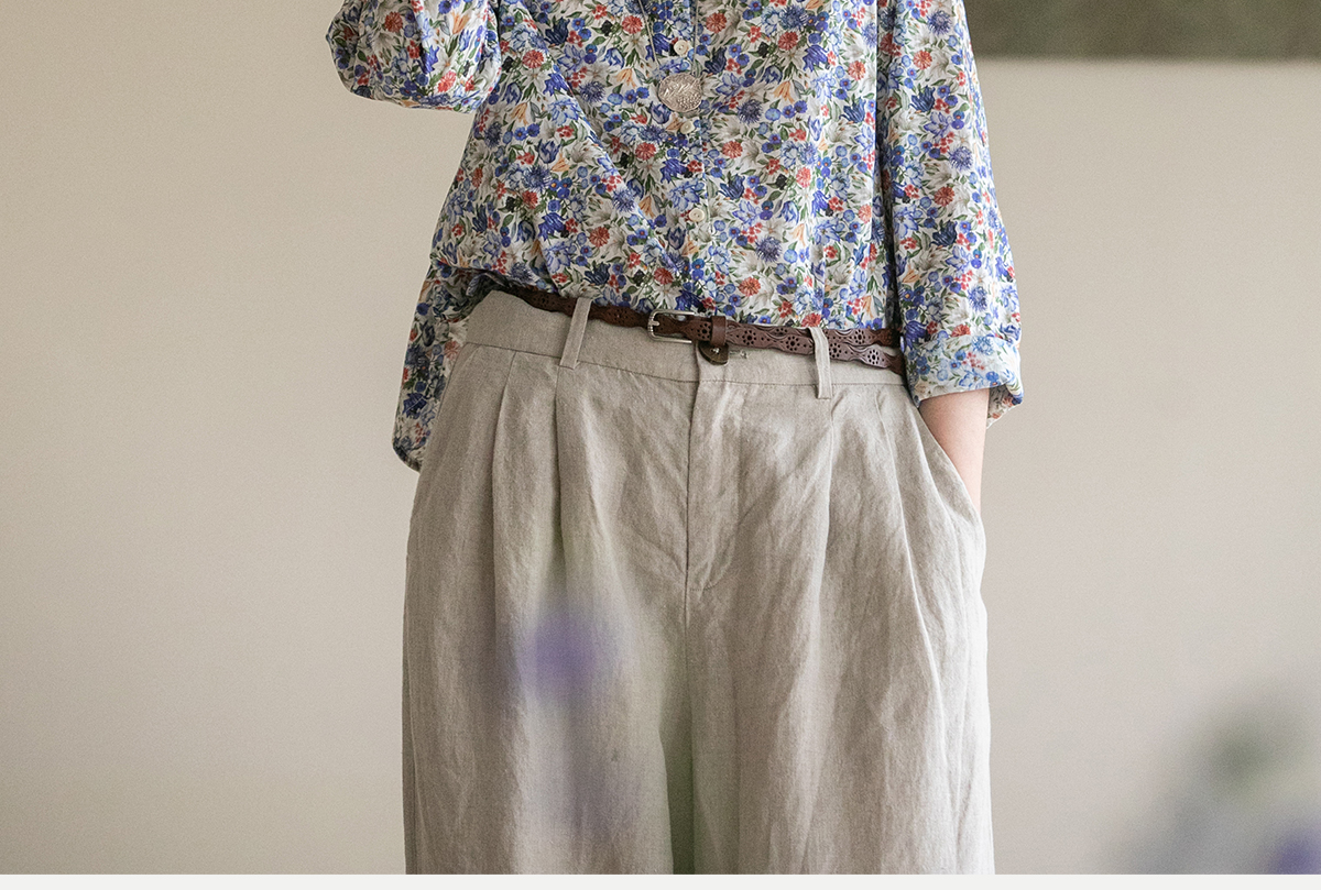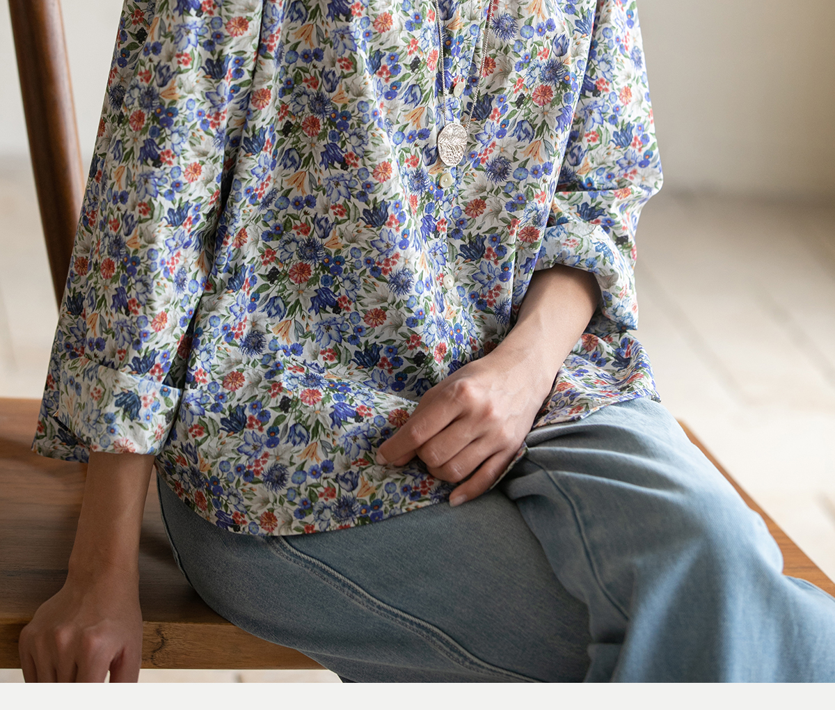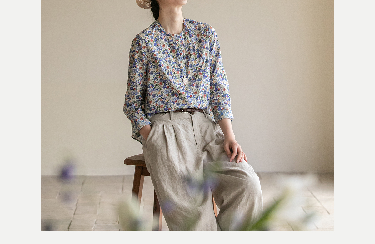 牧衣游原创重磅80支新疆棉印花布开襟衬衫休闲文艺碎花衬衣 霜枝