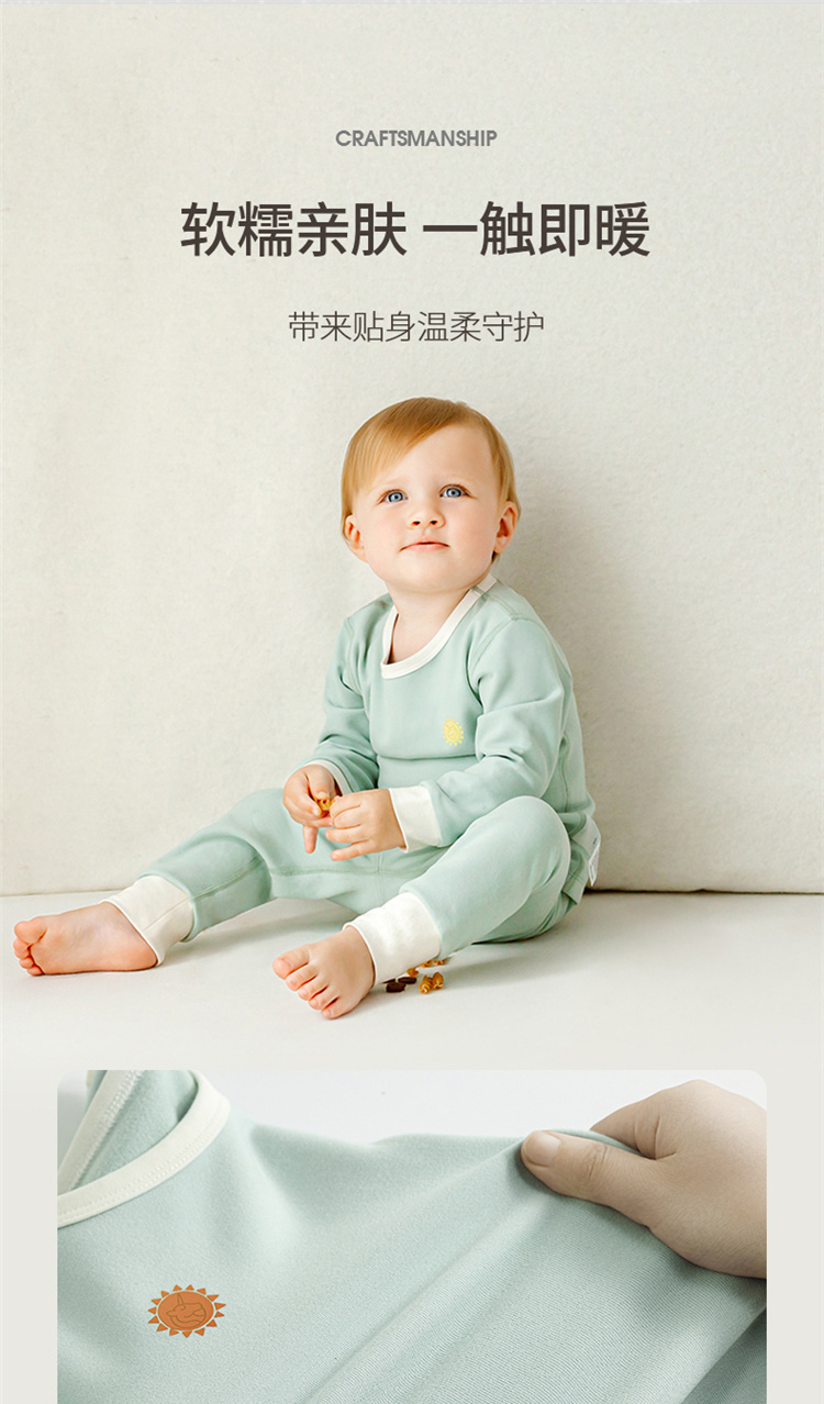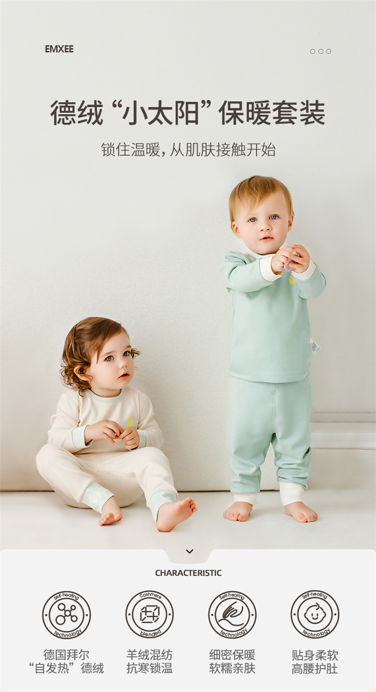 EMXEE官方嫚熙宝宝衣服秋冬装德绒羊毛恒温新生婴儿连体衣保暖衣-H