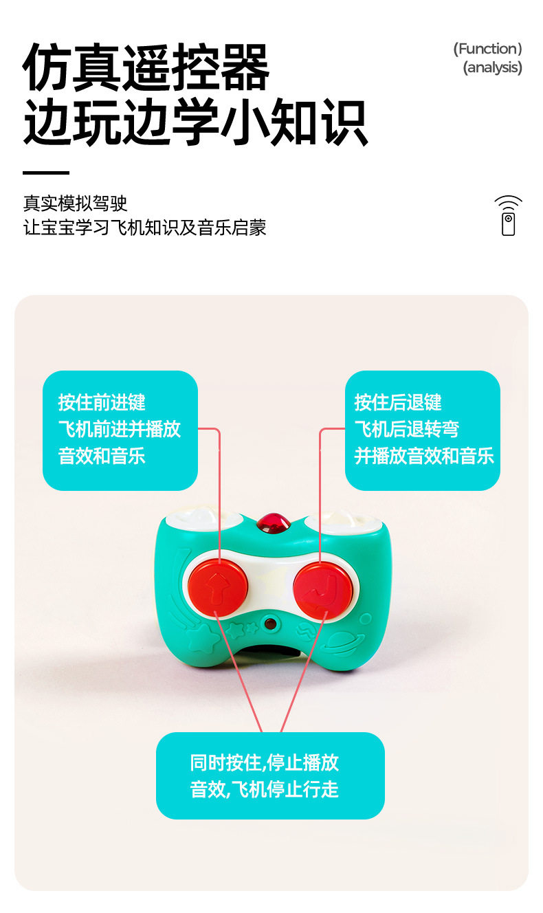 汇乐玩具早教遥控仿真电动模型飞机男孩手柄控制模拟音效角色扮演