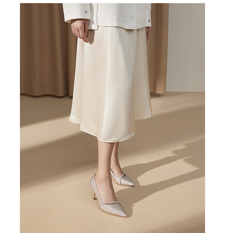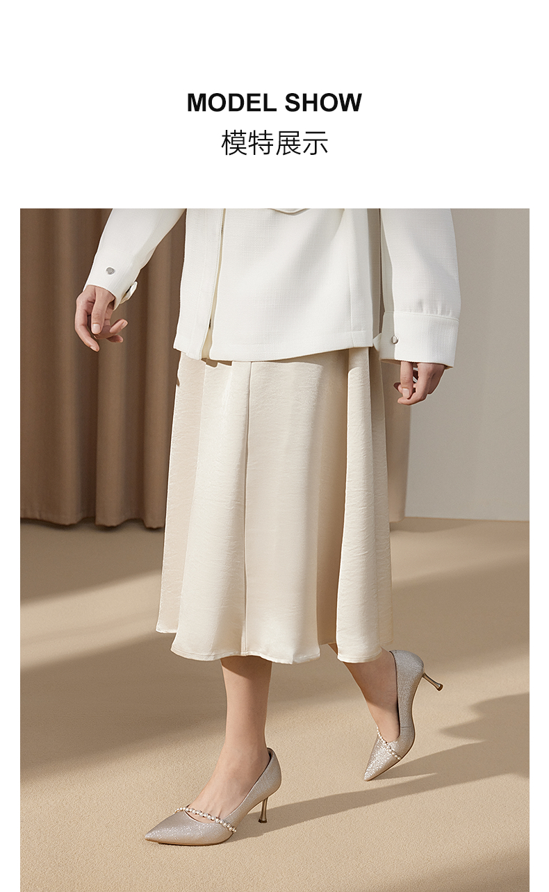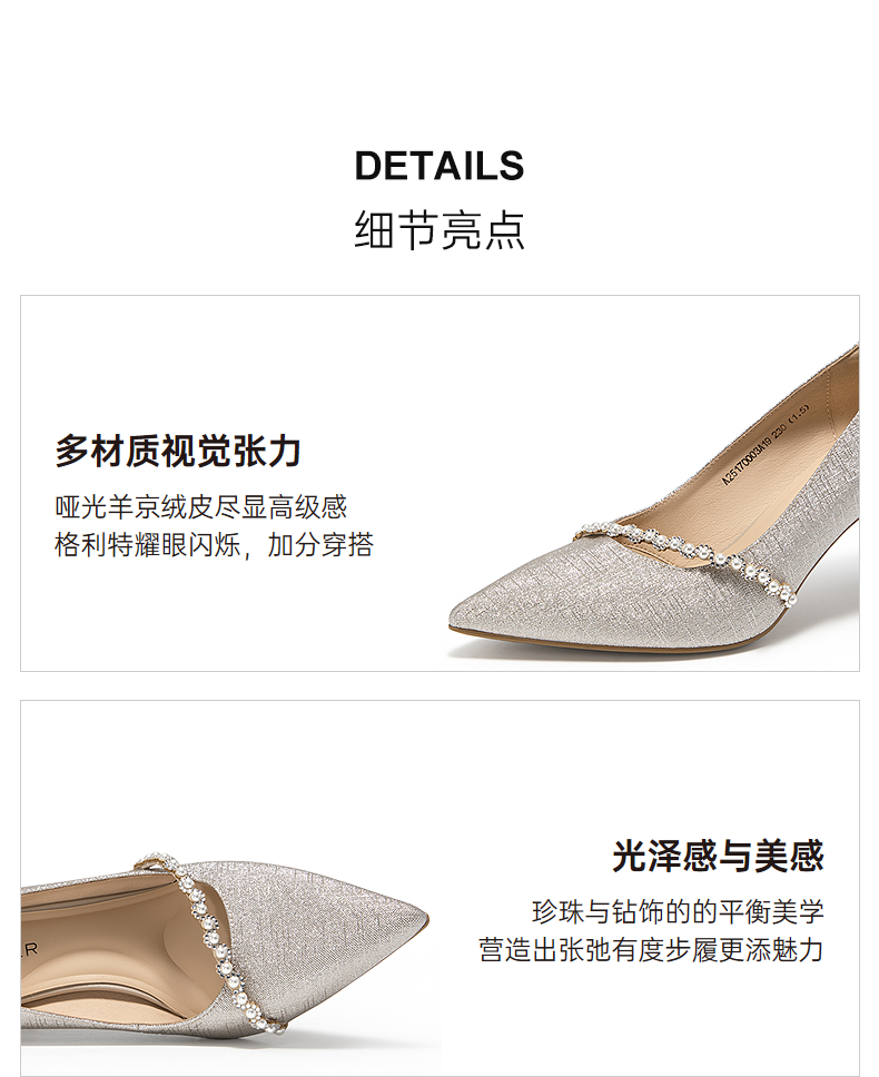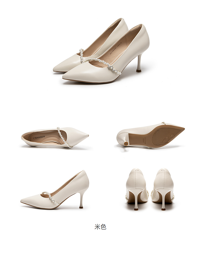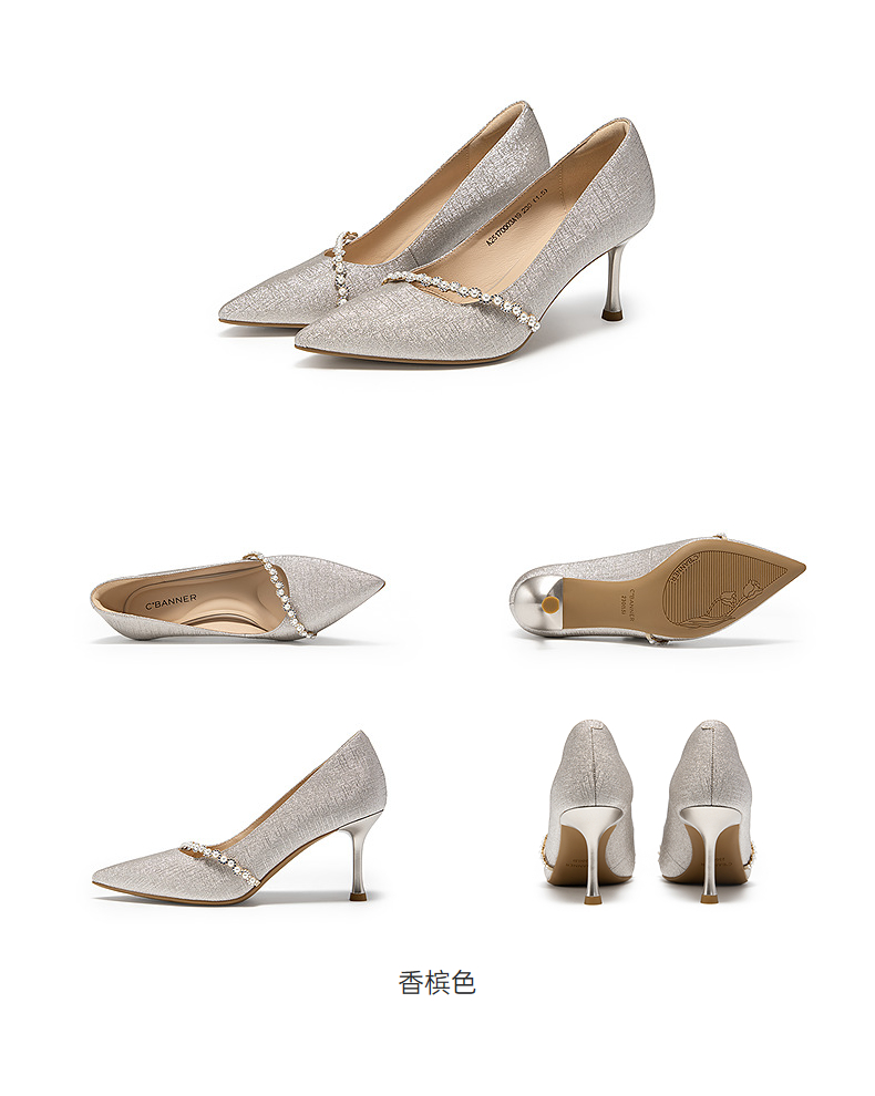 千百度羊皮钻饰婚鞋新娘细高跟鞋女婚纱宴会法式单鞋A25170003