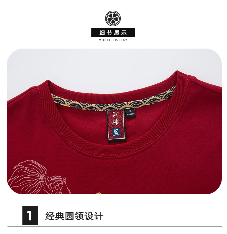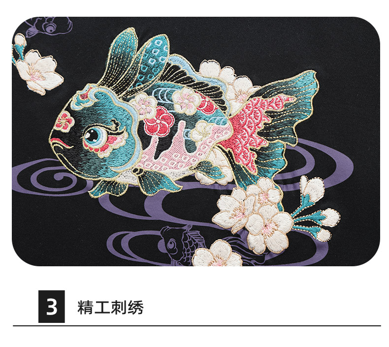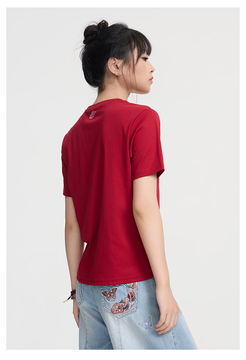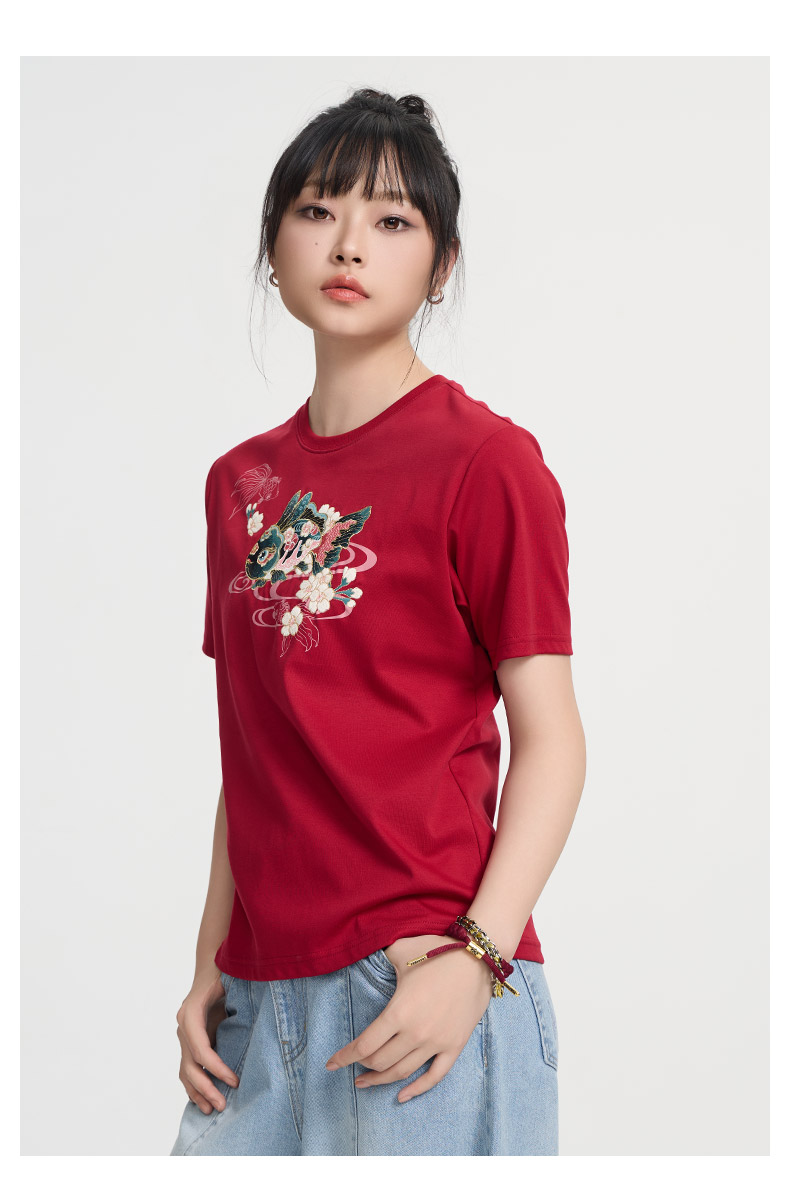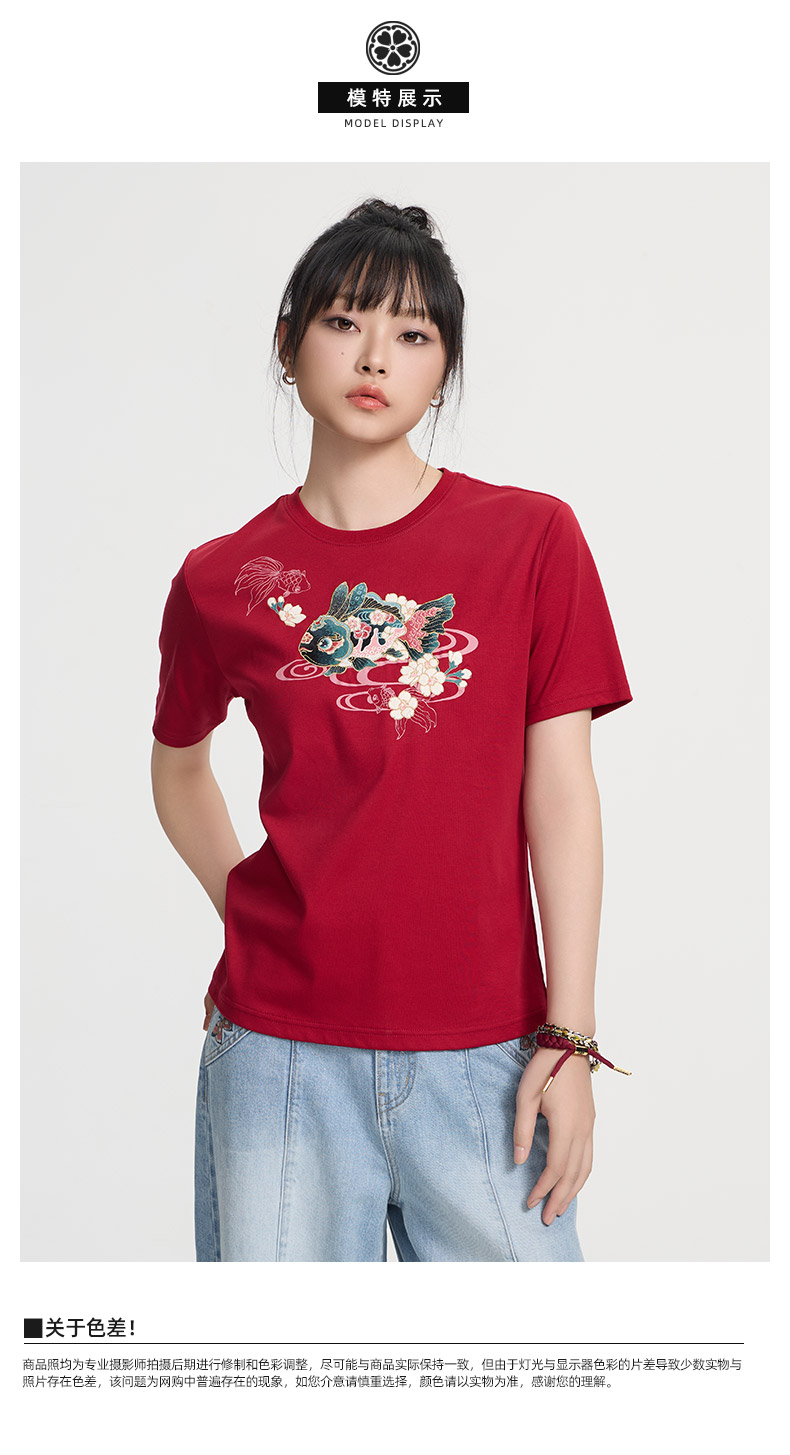 ONIARAI/鬼洗25春夏新品泥棒蓝女款兔兔鱼绣花短袖T恤 N840272