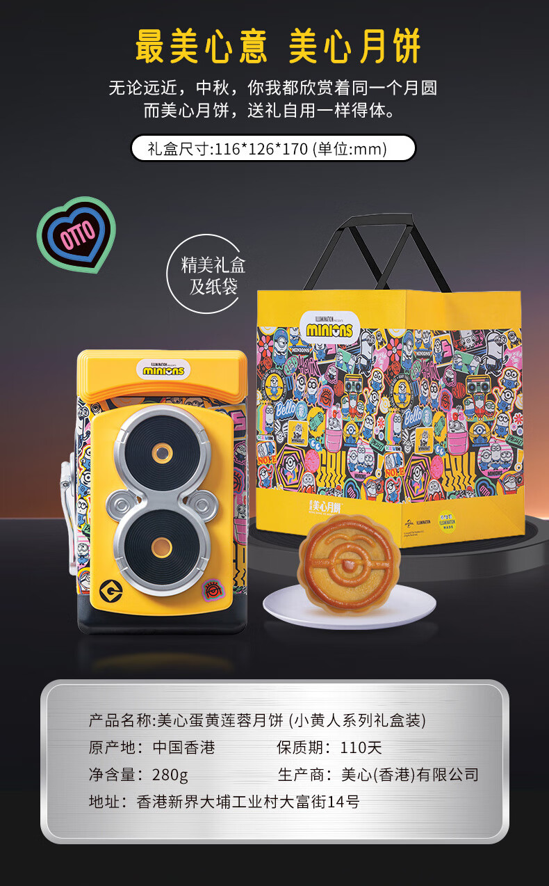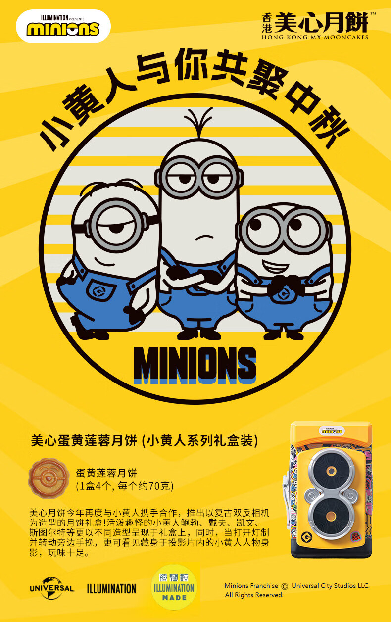 美心蛋黄莲蓉月饼小黄人Minions联名礼盒2024中秋礼物【现货】 小黄人蛋黄莲蓉月饼 280g 4个装