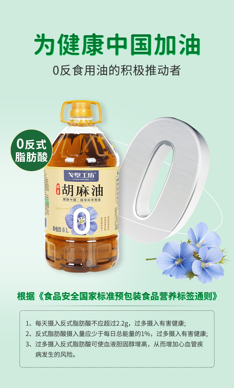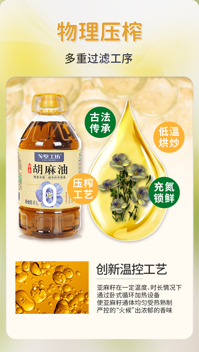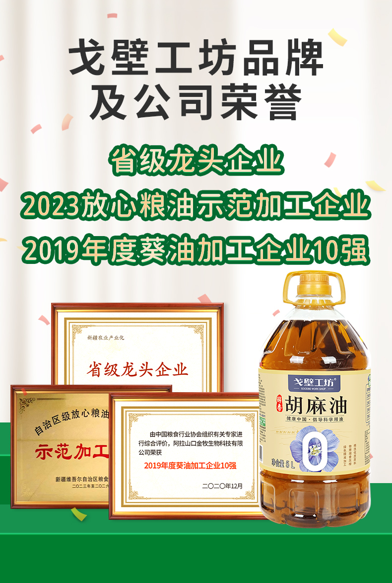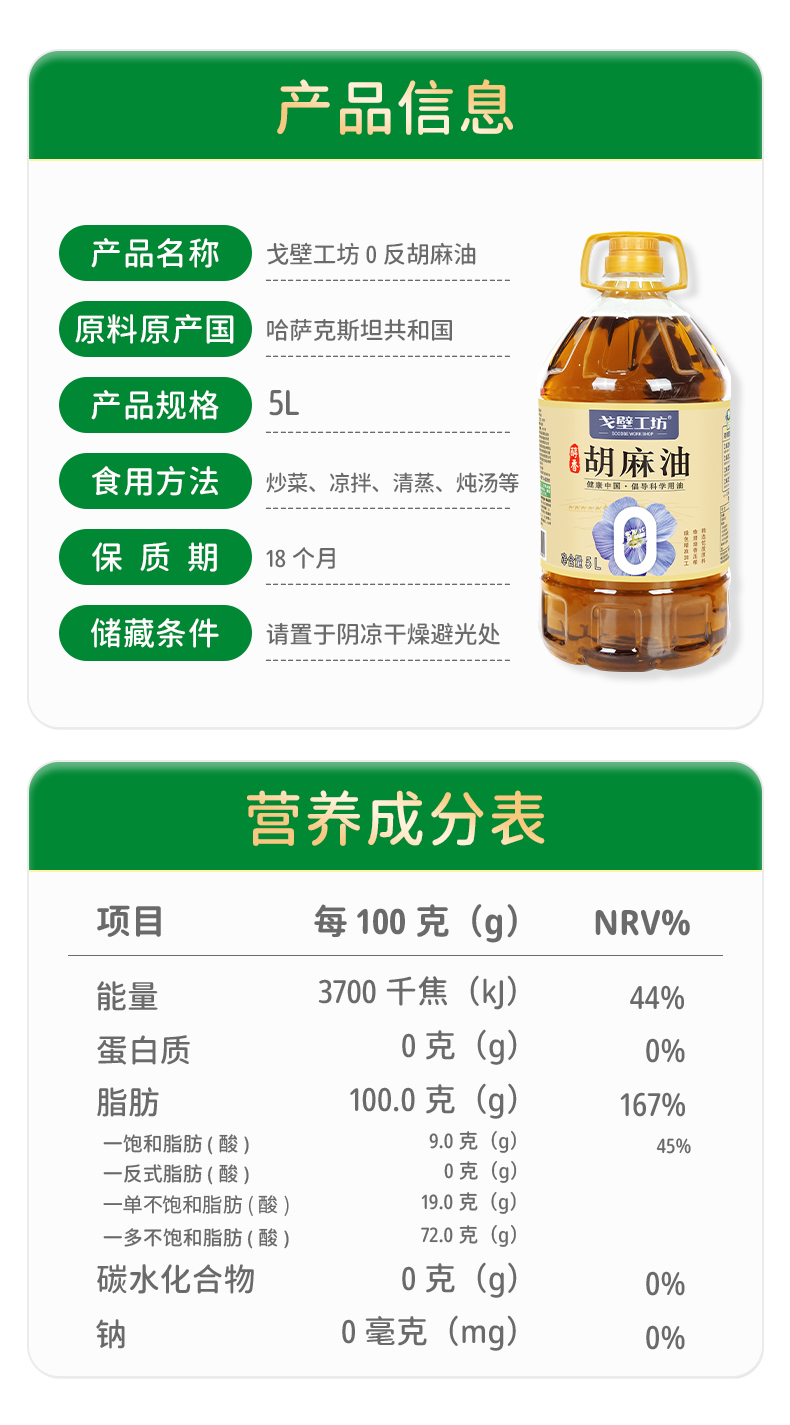 【自营】戈壁工坊0反式胡麻油企标二级5L