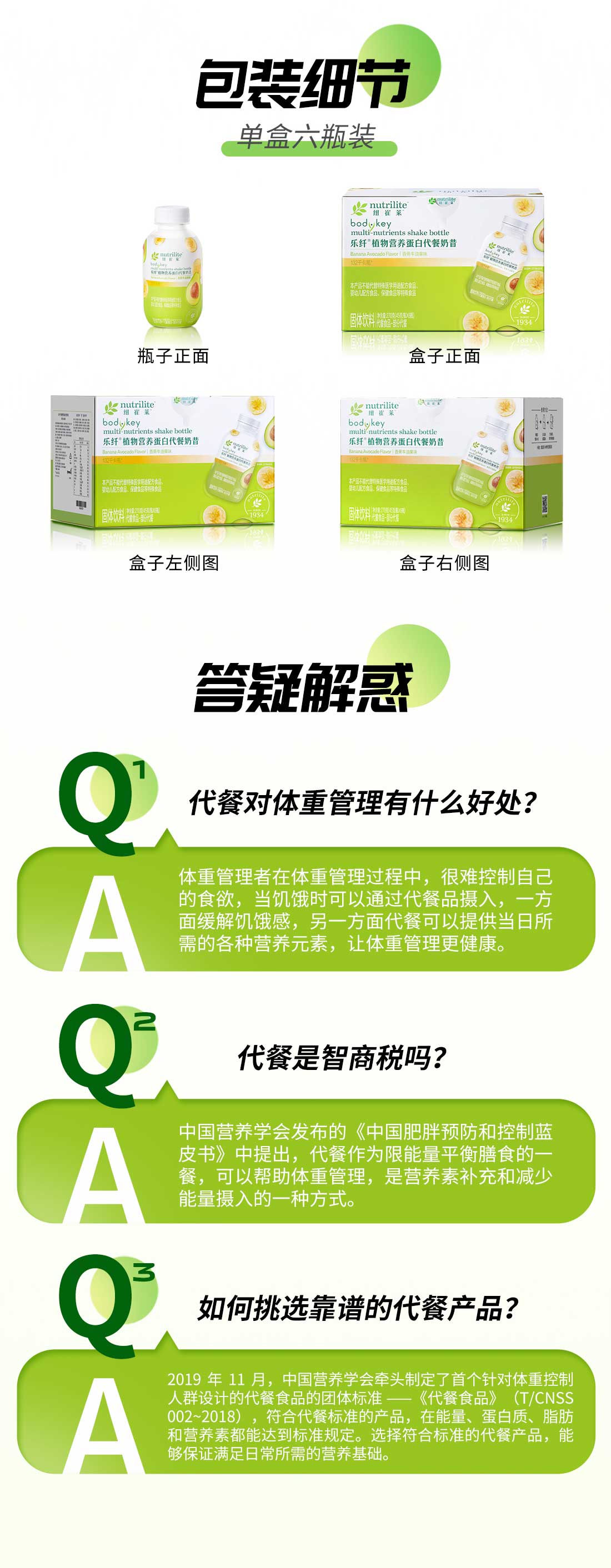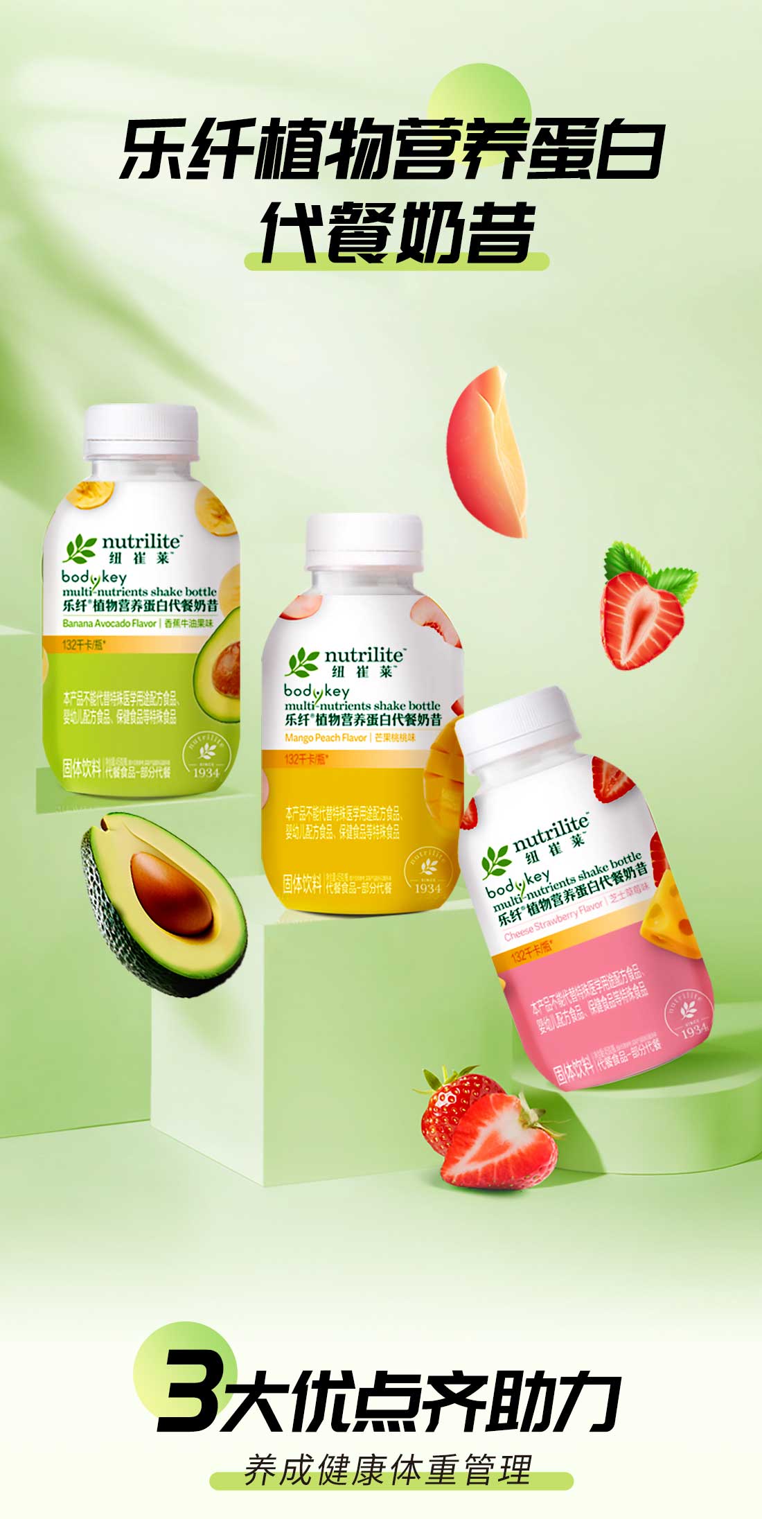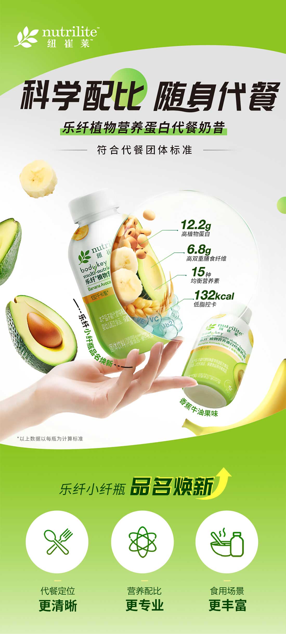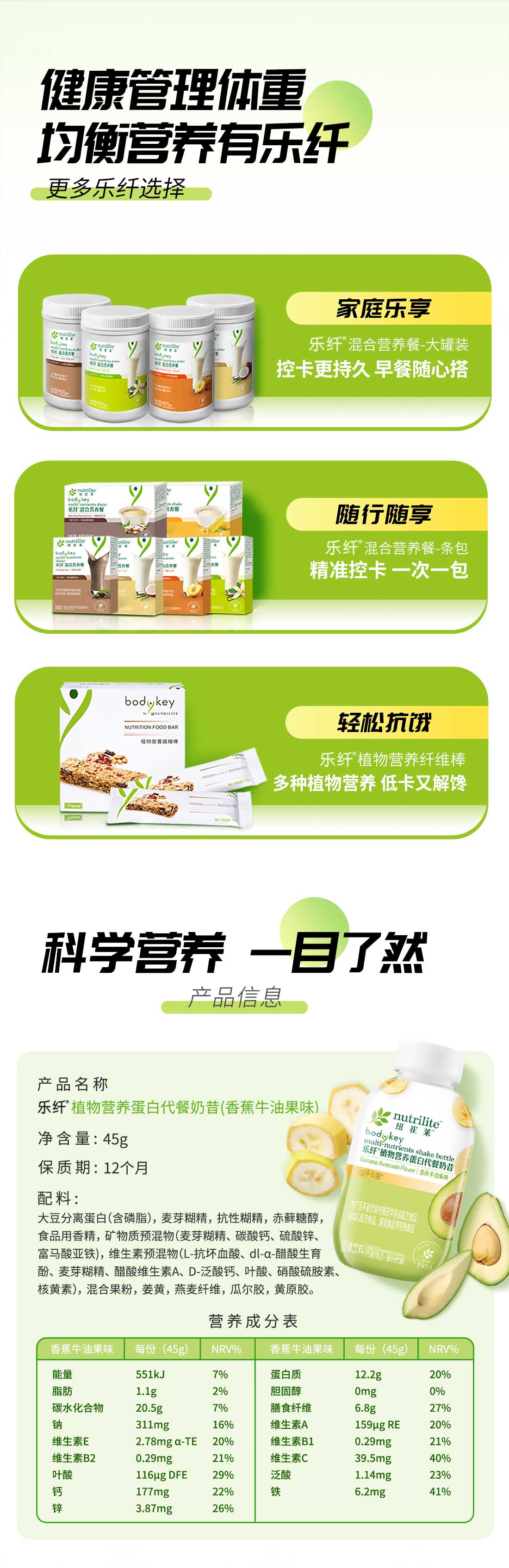 安利乐纤®植物营养蛋白代餐奶昔(香蕉牛油果味)[乐纤小纤瓶