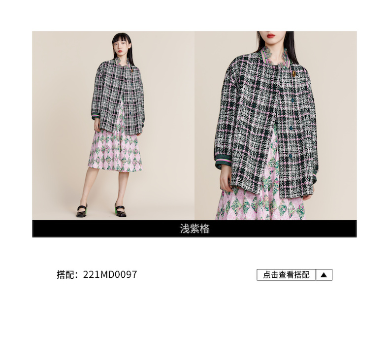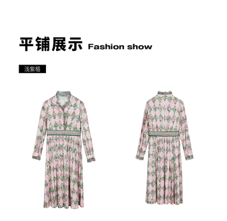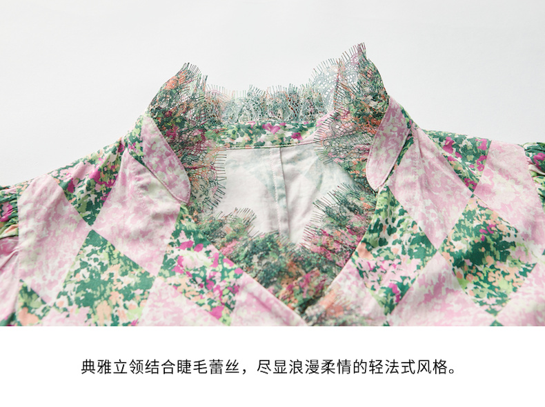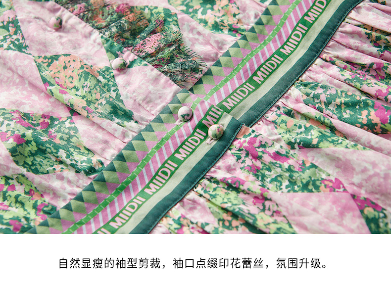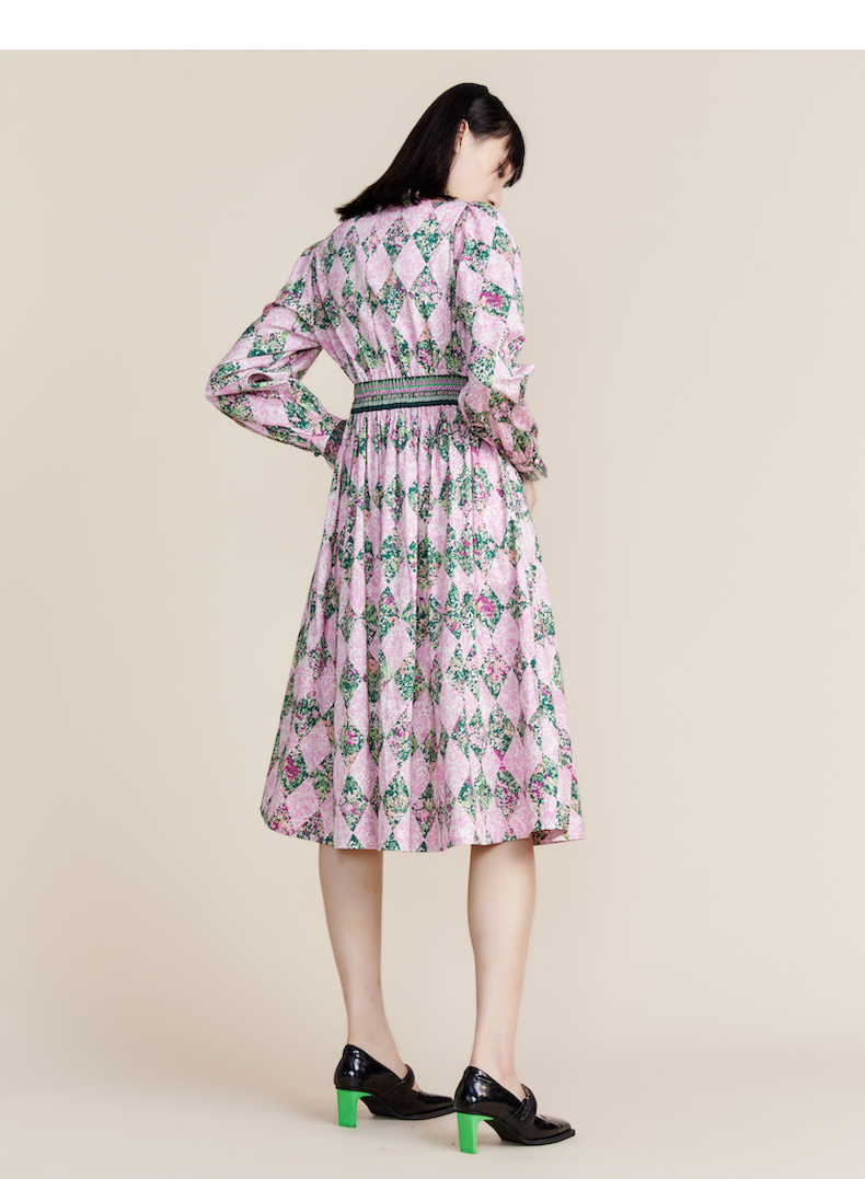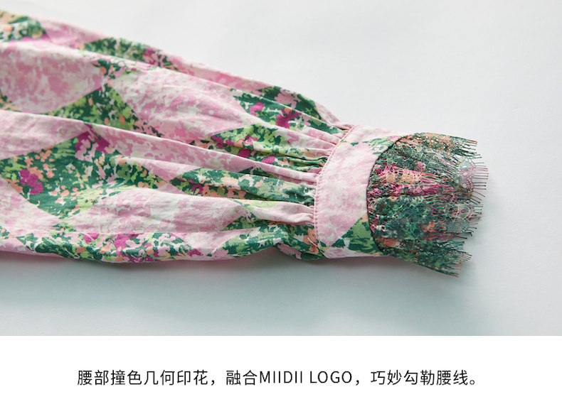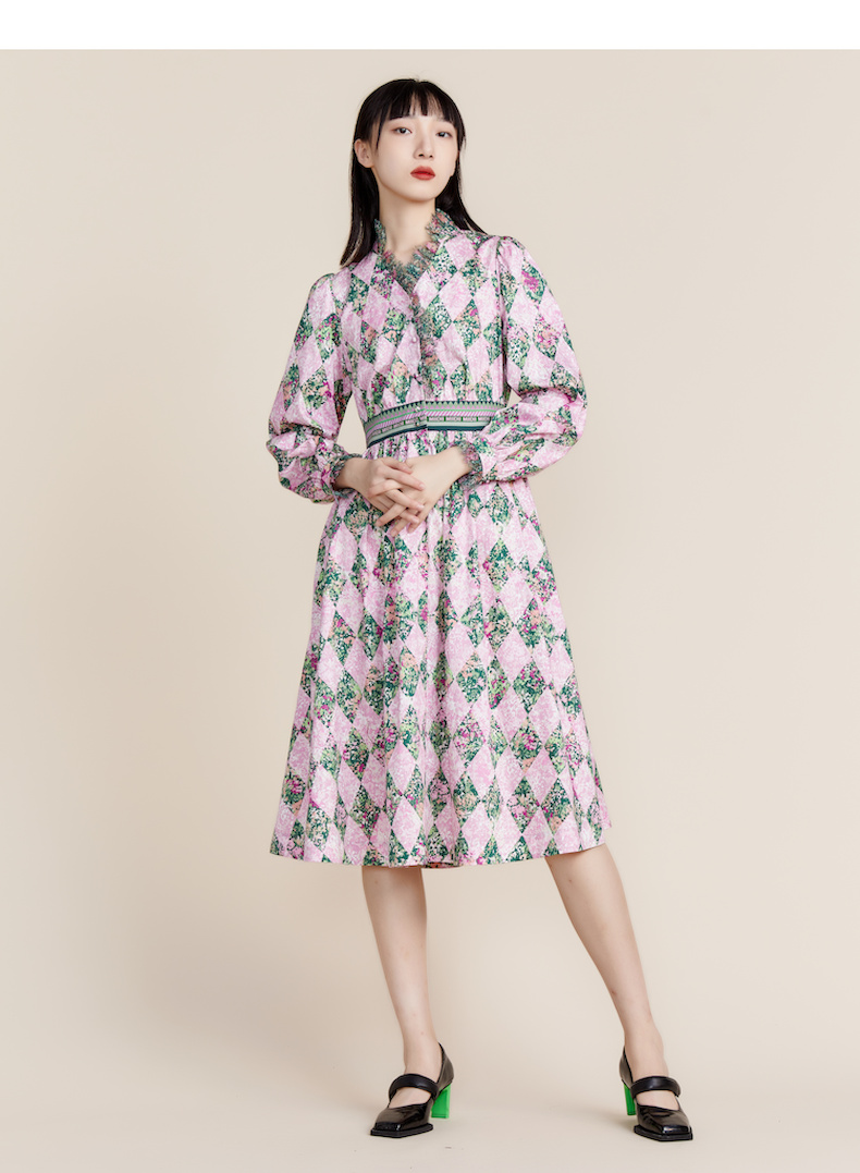 MIIDII谜底2022春新款收腰连衣裙法式田园菱形格印花221ML0088