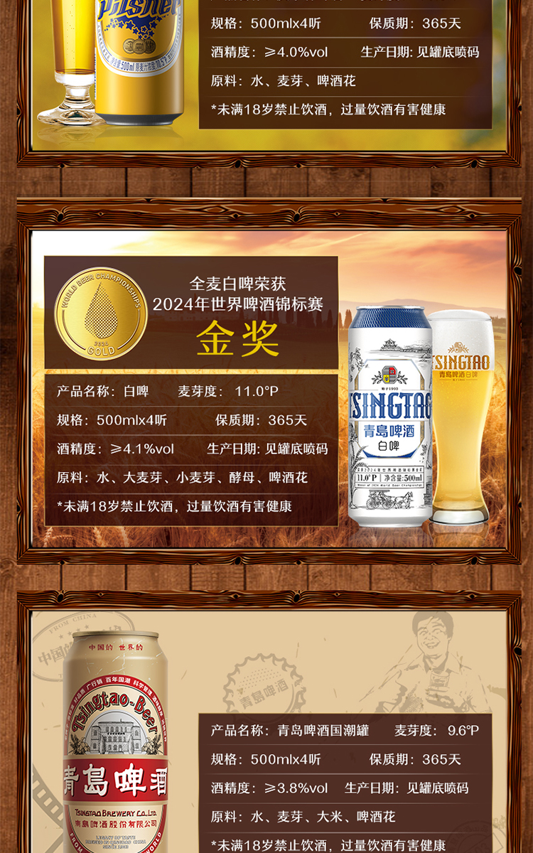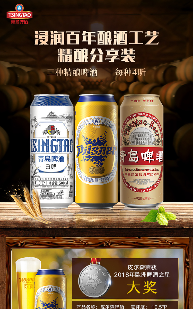 青岛啤酒 精酿组合500*12罐啤(白啤500*4+皮尔森500*4+复古500*4)