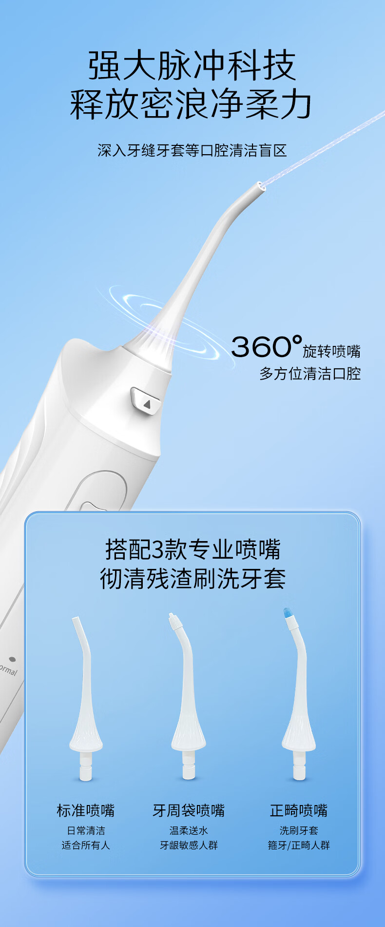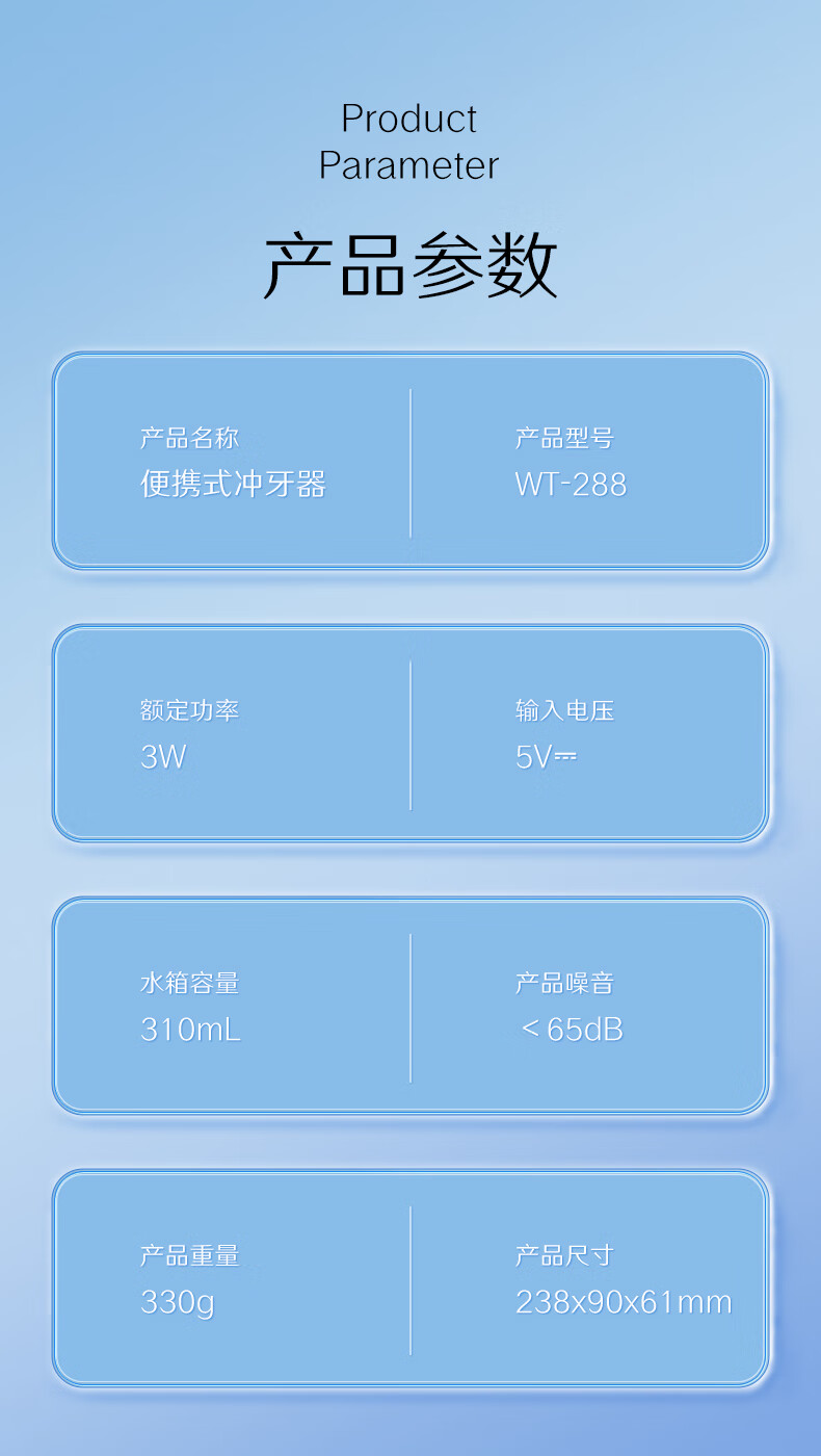 澳得迈(AODMA)手持冲牙器 WT-288 白色 3支喷头