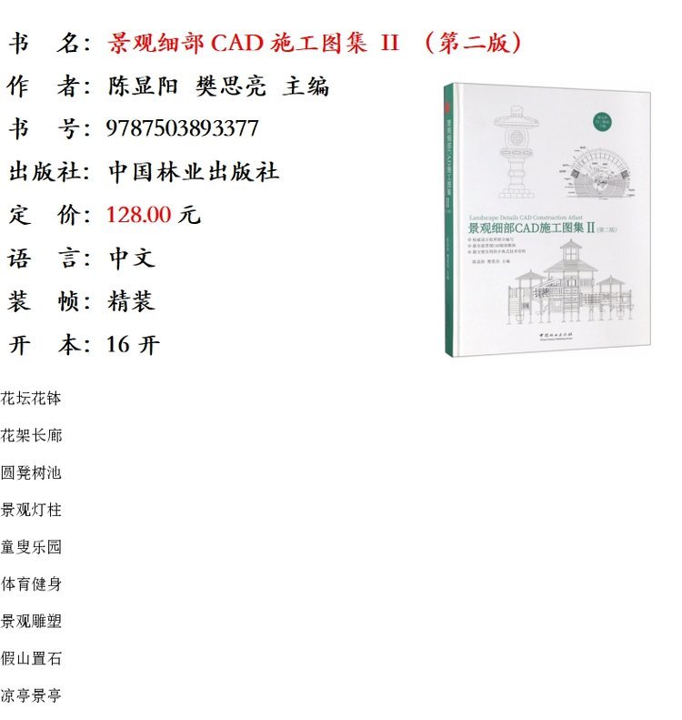 景观细部CAD施工图集II2 第二版9337花坛花钵花架长廊圆凳树池景观灯柱童叟乐园体育健身景观雕塑假山置石凉亭景亭 中国林业出版社