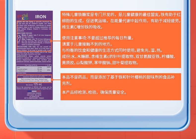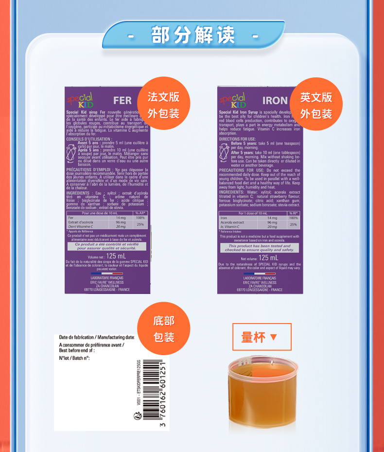 【跨境】法国ERIC FAVRE艾瑞可儿童补铁营养液125ml/瓶