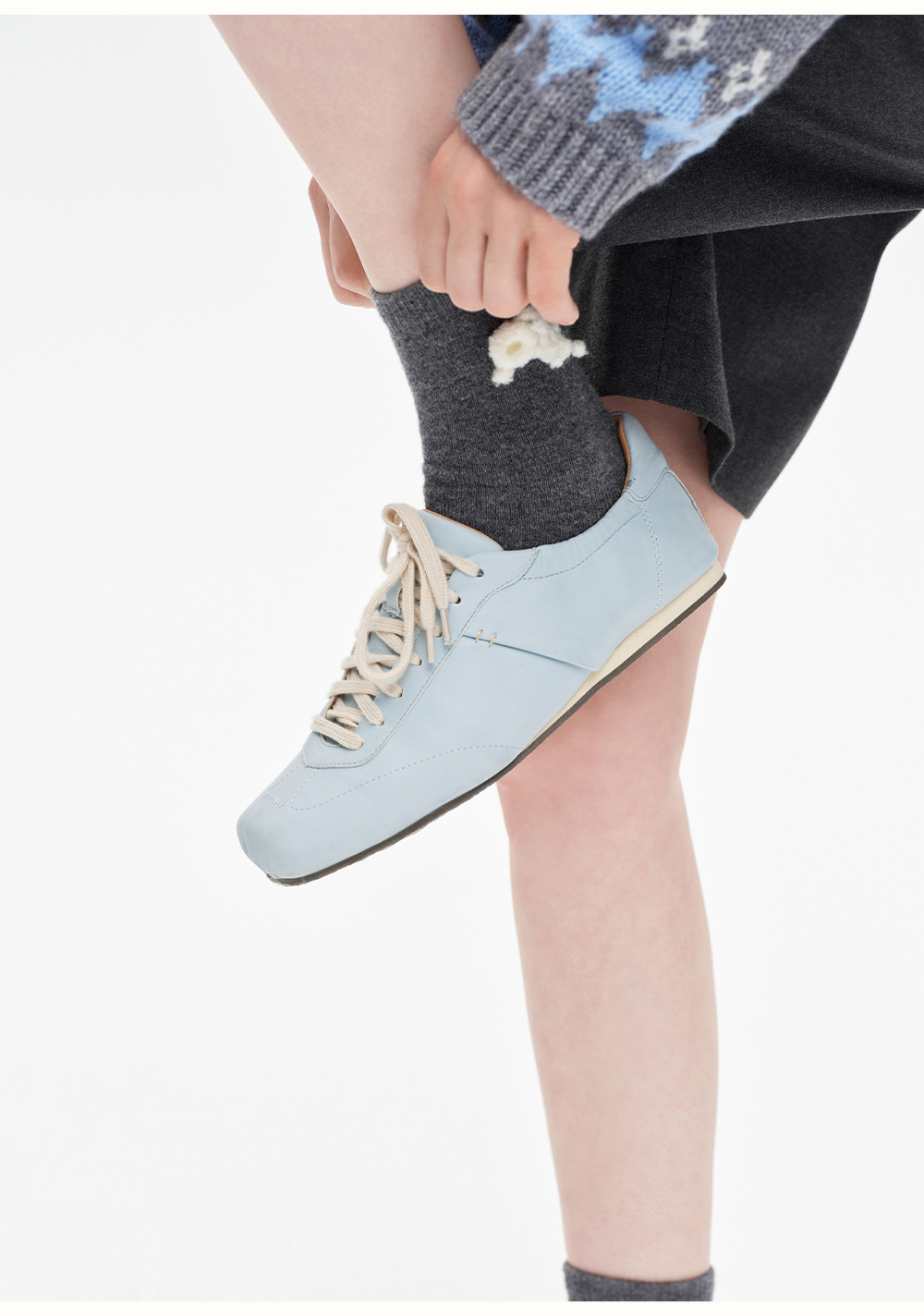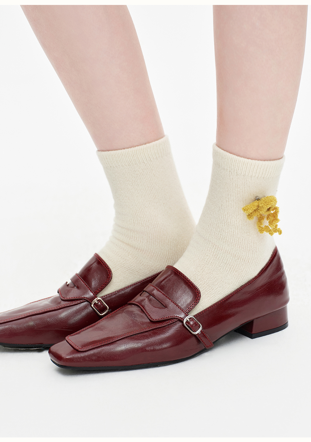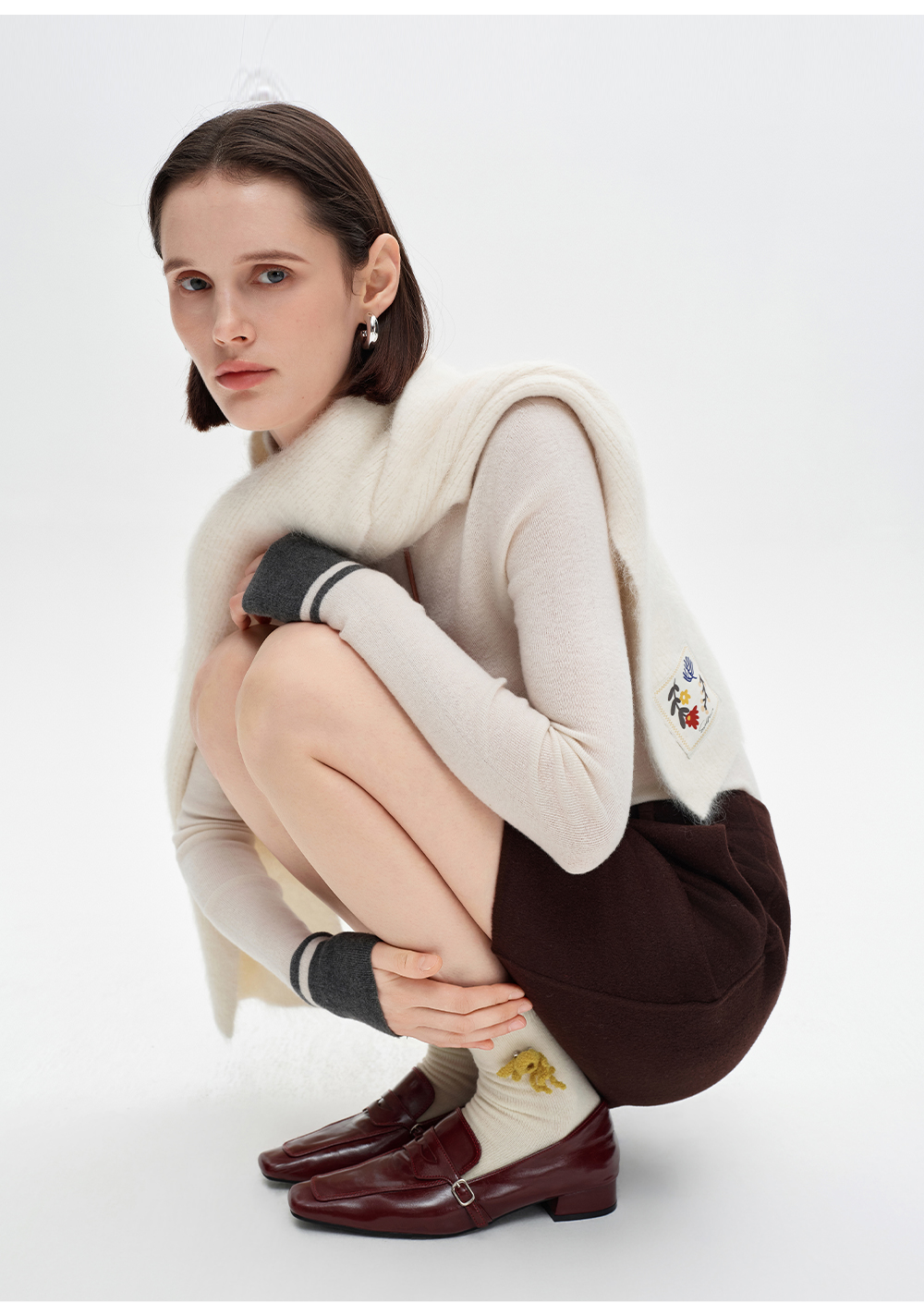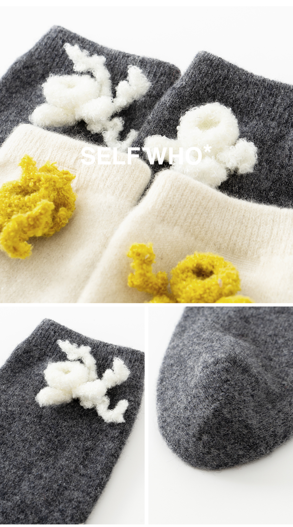 SELFWHO100%羊毛可拆卸珊瑚装饰中筒袜子女2025冬新款保暖针织袜
