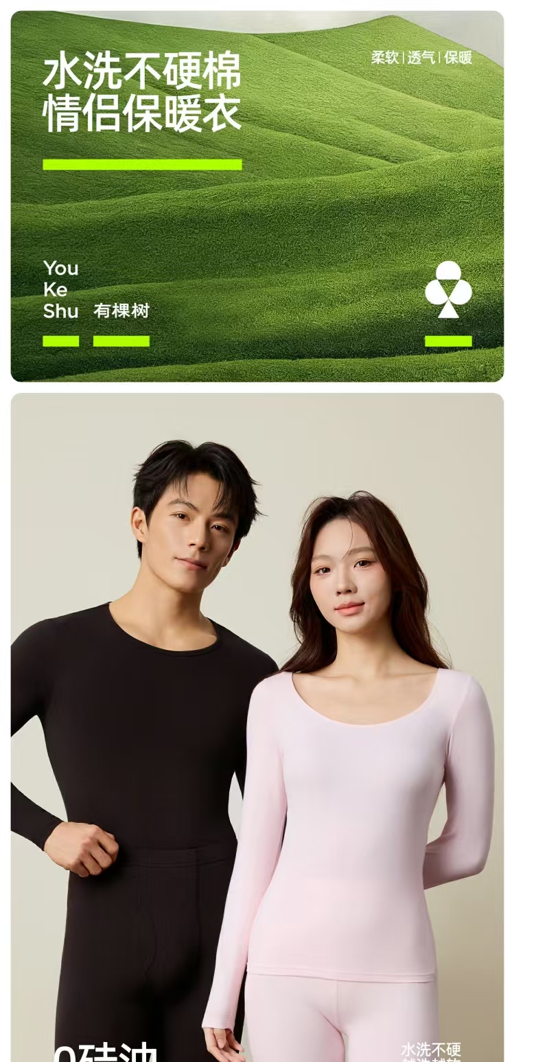 有棵树门店直发【原纱0硅油抗起球】加绒加厚保暖内衣情侣款保暖套装