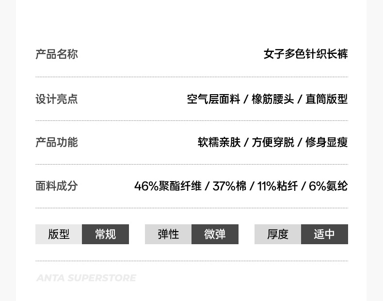 超级安踏运动裤女士秋季直筒瑜伽舞蹈针织舒适休闲长裤子女162535303U