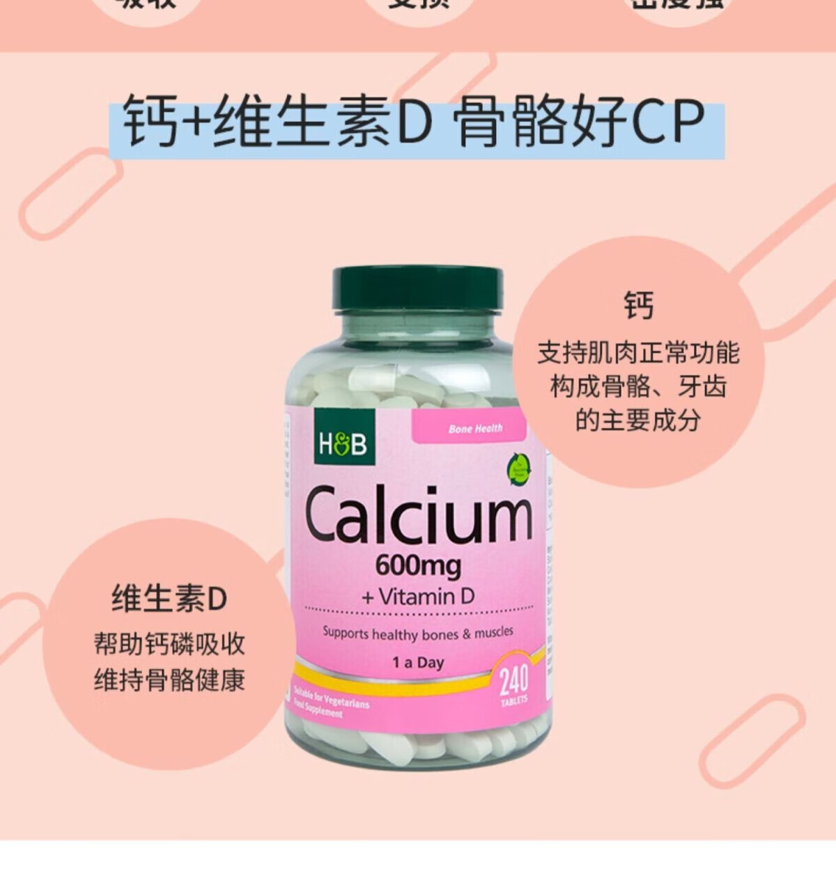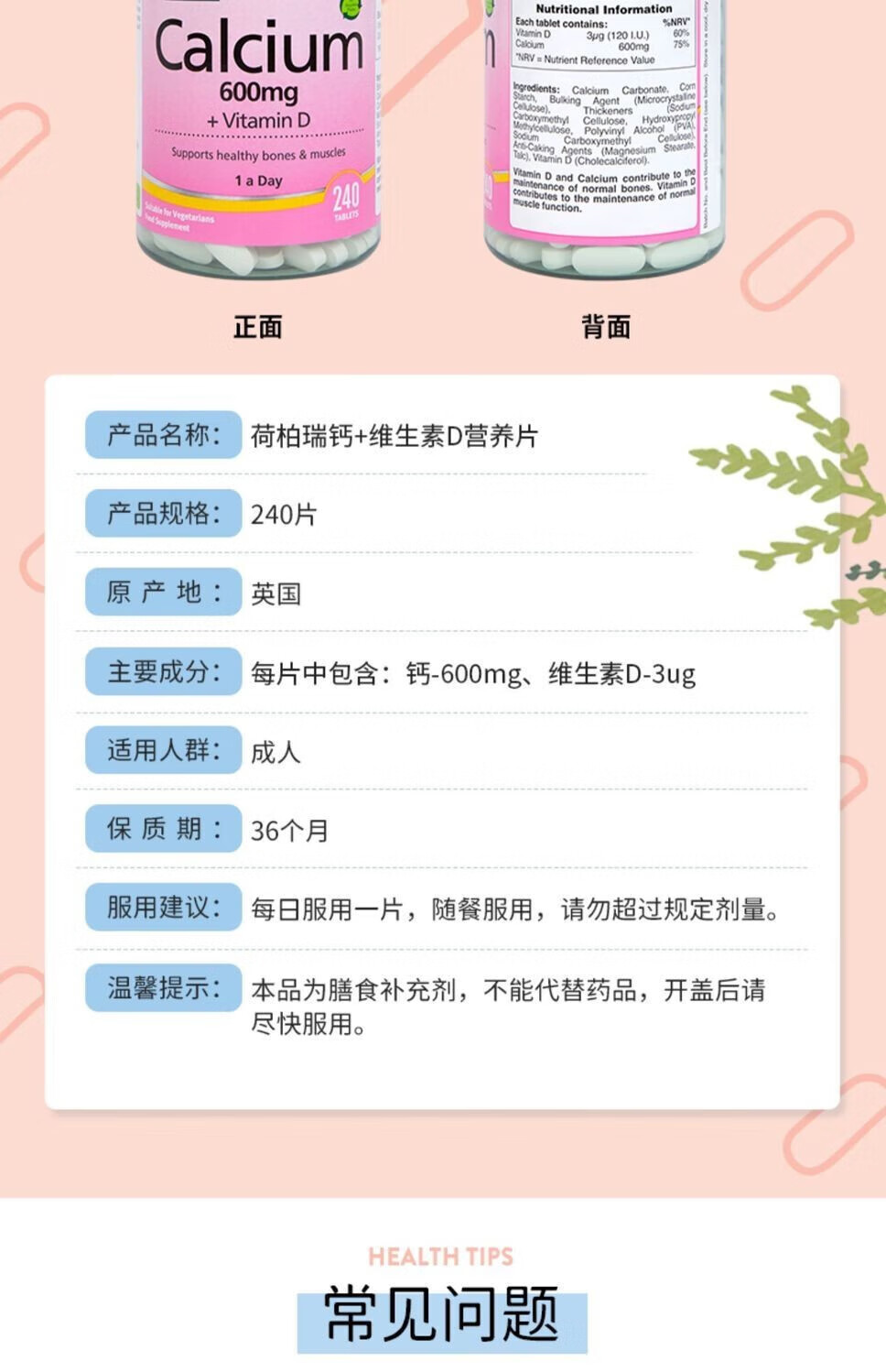 【保税仓】HollandBarrett荷柏瑞钙维生素D3片 240粒(新旧包装随机发)
