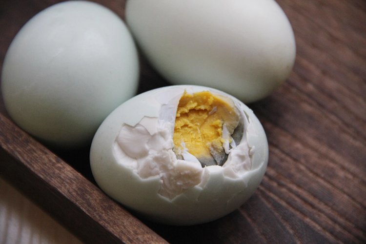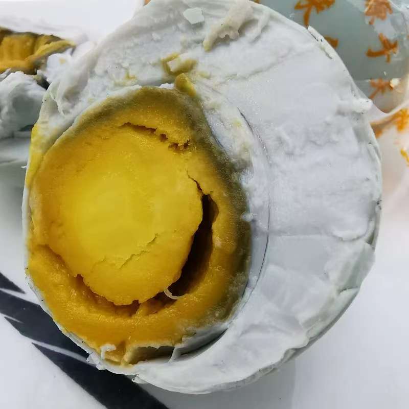 小提示:咸鸭蛋由于控盐,是淡盐的不太咸,出油的比例较少。另外由于工艺,咸鸭蛋在杀菌煮熟时,经过高温加热,蛋黄中的铁和蛋清的硫,产生化学反应,就会有蛋黄外圈发黑的现象,属于正常现象