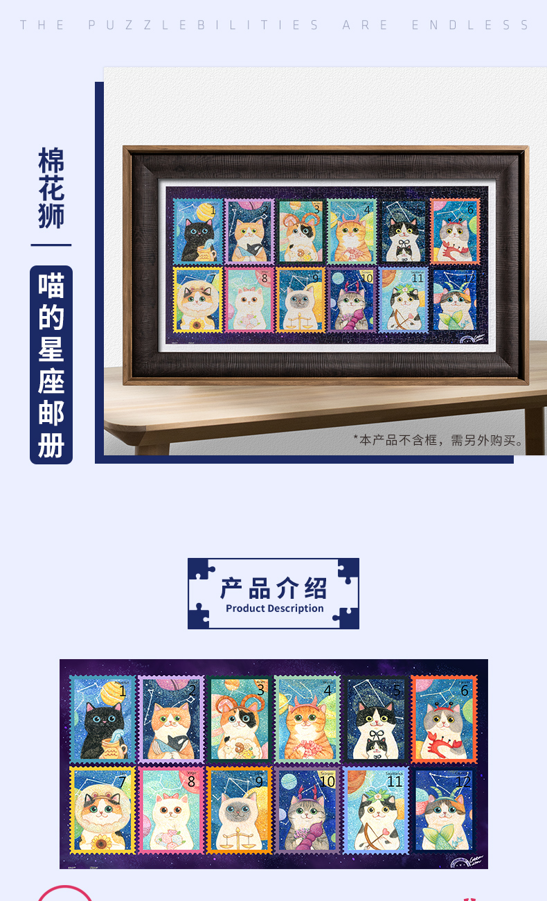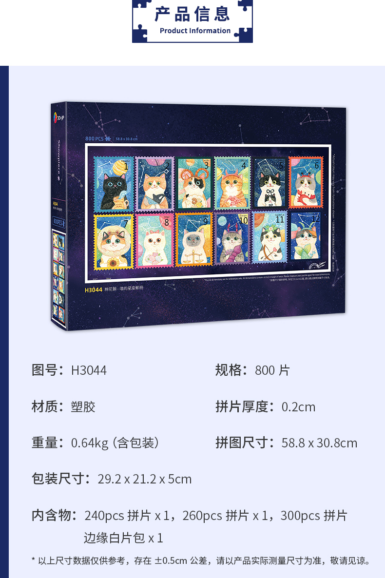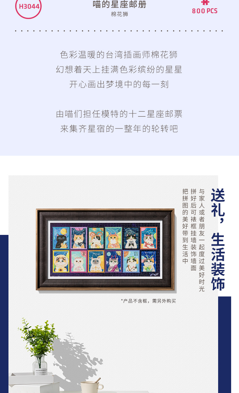 800片平面拼图塑料拼图 H3044 棉花獅-喵的星座邮册