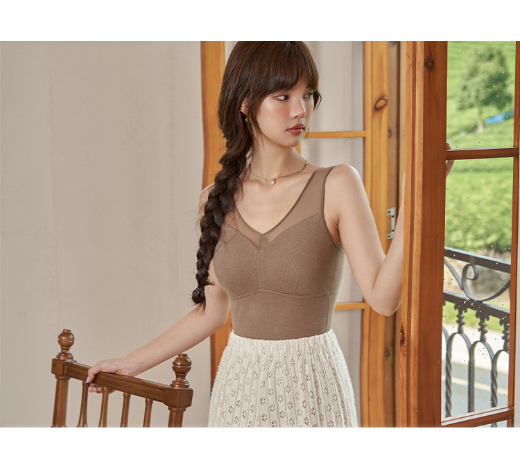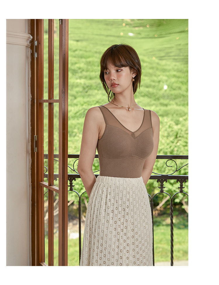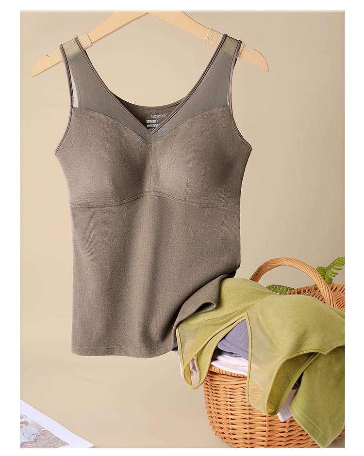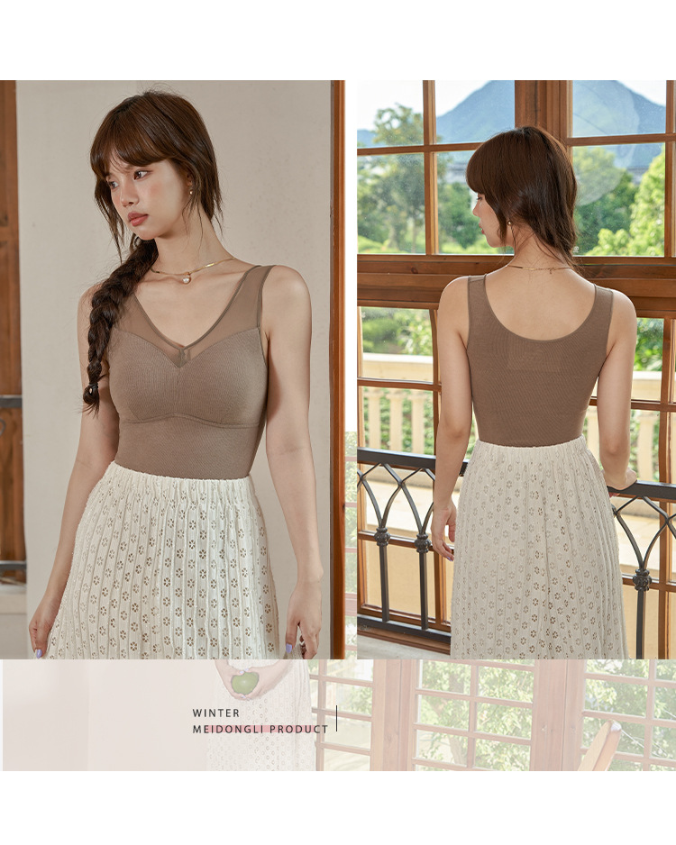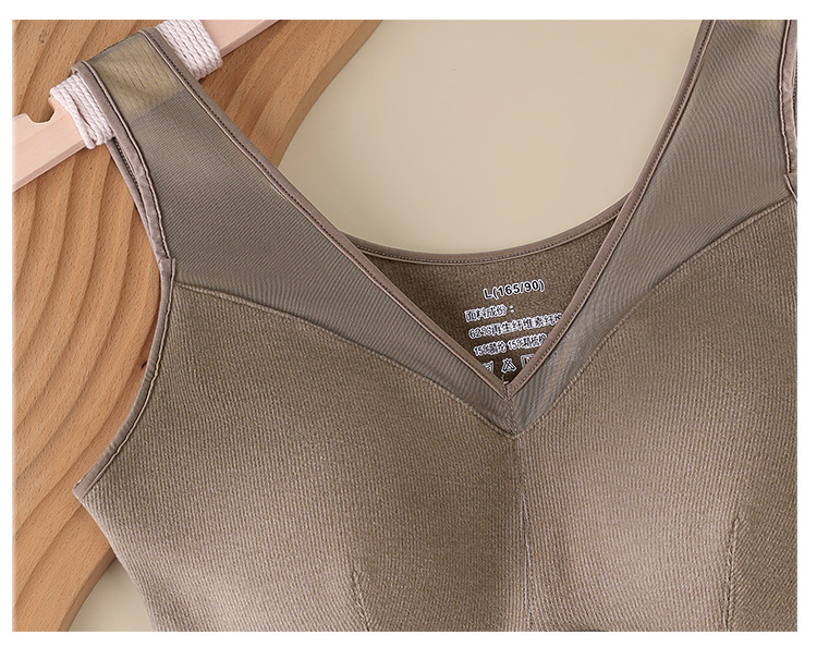 【孤品捡漏】【现货】【金猪甄选】新款蕾丝德绒自发热恒温蜂巢透气固定杯双面磨毛保暖背心H234050458