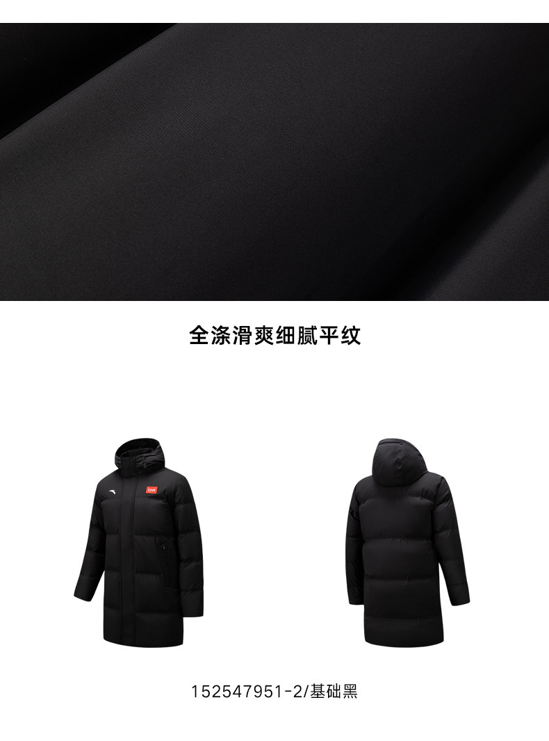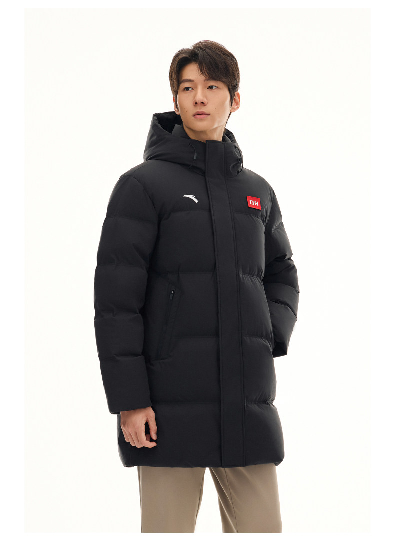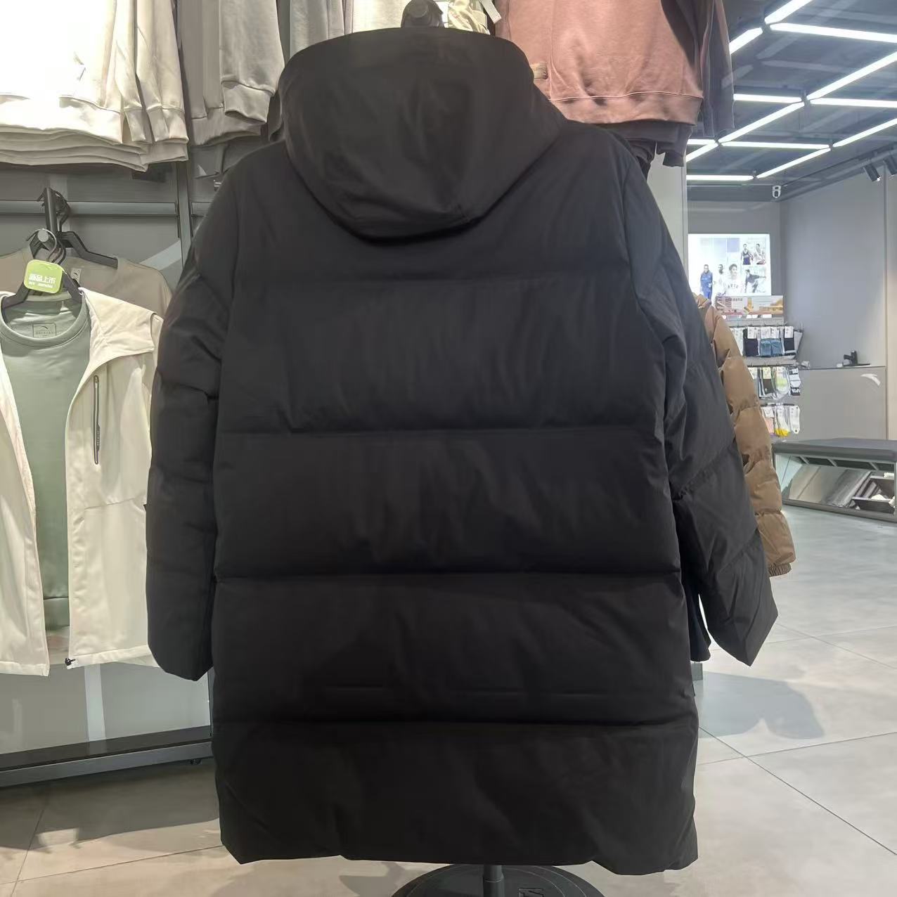 安踏正品综训男中长羽绒服2025冬新款防泼水连帽羽绒服152547951